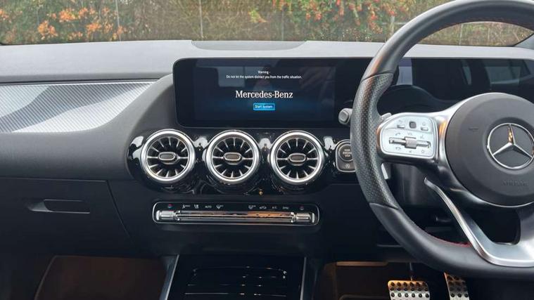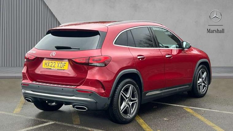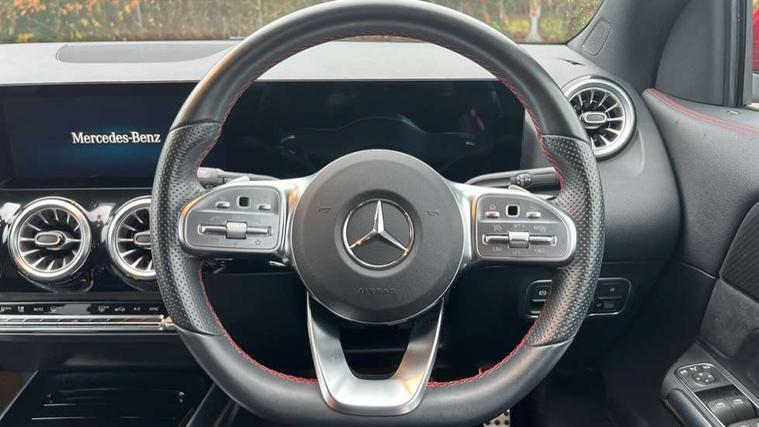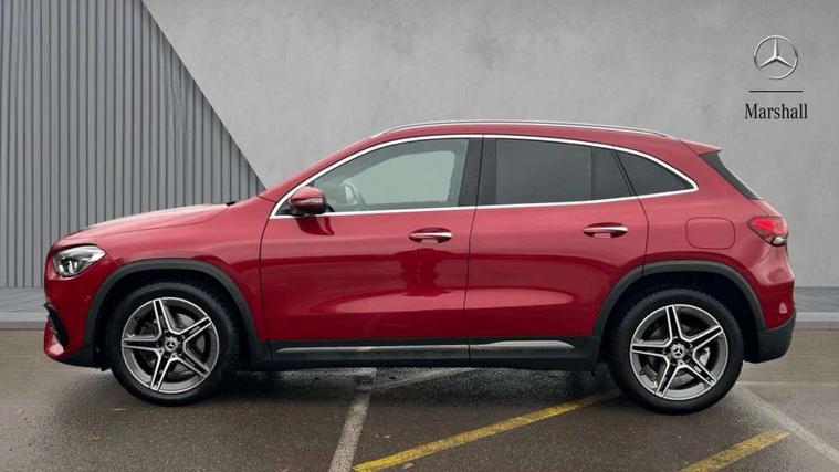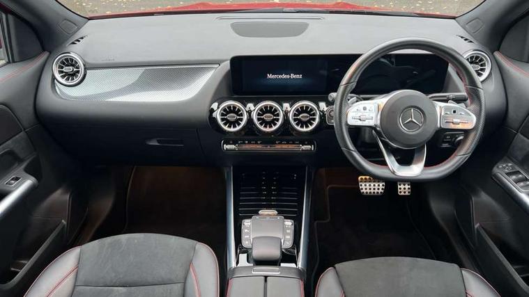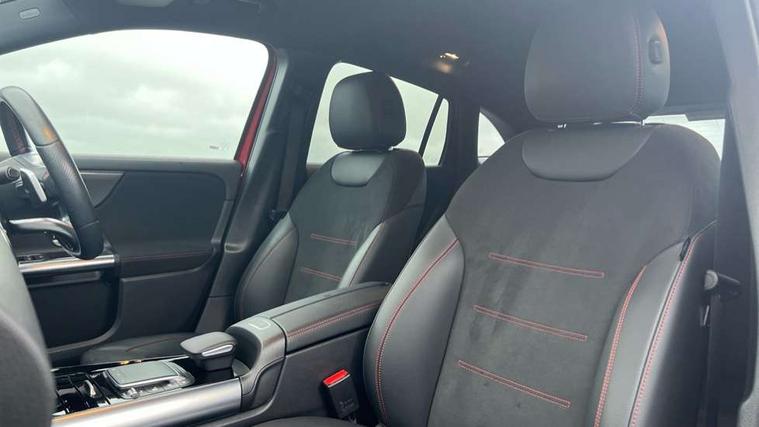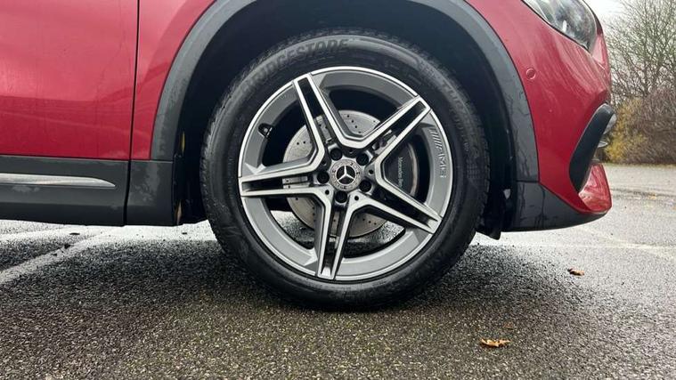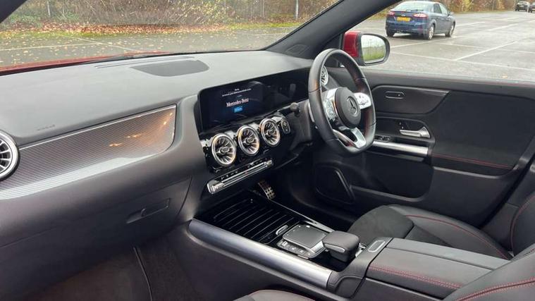 10.25 inch touchscreen central media display, 10.25" Digital instrument cluster display screen, Active lane keeping assist, Attention assist, Cruise control + speed limiter, Direct steering, DYNAMIC SELECT with a choice of driving modes (ECO, Comfort, Sport and Individual), ECO start/stop function, Fluid level warning indicator for fuel, oil, coolant and washer fluid, Hard-disk navigation, Hey Mercedes Voice activation, Lamp failure indicator, Mercedes me connect including emergency call system, accident recovery, breakdown and maintenance management, Mercedes me remote services, Multi function trip computer, Outside temperature gauge, Owners manual and service booklet in English, Pre-installation of private car share, Radio aerial integrated into front and rear windshields, Service indicator (ASSYST), Smartphone integration with Apple CarPlay and Android auto, Speed limit assist, Status display for rear seat belts in instrument cluster, Lowered comfort suspension, Rear axle multi-link, 2 USB ports (type C) in rear stowage compartment and one in front of center console, Bluetooth connectivity including audio streaming, DAB Digital radio, MBUX multimedia system, Media interface, Mercedes-Benz (225w) sound system with 10 speakers, Adaptive brake lights, Aerial for GPS, Aluminium roof rails, AMG front and rear apron, AMG specific/dual flow exhaust pipes in chrome (non-functional), Automatic headlamp activation, Beltline strips and weather strip in chrome, Black grained claddings with chrome parts, Body colour bumpers, Body colour door mirrors, Body coloured door handles with chrome insert for keyless entry, Car wash function, Dark privacy glass from B-pillar backwards, Electric front windows, Electric rear windows, Electrically adjustable and heated door mirrors with integrated LED indicators, Heated glass rear windscreen + timer control, Heated windscreen wash system, Interior mirror with black reading lamps and frameless, LED high performance headlamps with integrated LED daytime running lights, LED tail lights in two piece design, LED third brake light, Matt titanium grey front and rear apron trim, Pre-installation for trailer coupling, Rain sensor windscreen wipers, Rear fog lights, Rear side wing doors, Roof spoiler, Single lamella raditor grille with chrome dotted diamond grille and inlay, 12V power socket in centre console, 3 seat bench in 2nd row, 3 spoke multifunction sports steering wheel in nappa leather with flattened bottom and perforated grip area, 40:20:40 split folding rear seat backrests, Adjustable head restraints, Air conditioning - Two zone thermotronic luxury automatic climate control with display, Ambient lighting in front headrests, AMG floor mats with AMG lettering in front, Artico man-made leather/Microfibre Dinamica upholstery with red contrast stitching, Auto Mercedes-Benz child seat recognition sensor, Black roof lining, Brushed door pulls in silver chrome, Courtesy light in boot, Front centre armrest with stowage, Galvanished gear shift paddles on steering wheel, Heated front seats, illuminated door sills with changeable cover, Illuminated glovebox, Interior lighting - 64 colour Ambient lighting, Leather trimmed gearknob, Luggage net on driver/front passenger seat backrest, Manually height and reach adjustable steering column, Multi-gesture touchpad control on center console, Single front passenger seat, Sports pedals in brushed stainless steel with black rubber studs, Sports seats, Stowage compartment in centre console, Stowage compartment with retractable cover, Sunvisors with illuminated vanity mirrors, Twin front cup holders, Two outer rear seat isofix and top tether child seat fixing points, AMG body styling pack - GLA, Comfort seat pack - GLA Class, Interior lighting with light and sight pack - GLA, Load compartment pack - GLA, Mirror pack - GLA Class, Parking pack - GLA, 3 rear 3 point seatbelts, ABS with Brake Assist, Active bonnet pedestrain safety measure which detects an impact and raises bonnet by 65mm, Active brake assist includes forward collision warning system with autonomous braking, Adaptive brake assist with hold function and hill start assist, Bonnet with power domes, Brake pad wear warning indicator, Childproof locks manually operated for rear doors and electrically operated for rear power windows, Crash responsive emergency lighting, Driver and passenger head and side airbags, Drivers knee airbag, Dual stage driver/passenger airbags, Electronic parking brake, ESP curve dynamic assist, ESP with ASR, Front and rear seatbelt reminder, Front brake callipers with Mercedes Benz logo lettering on front, Front brake discs internally ventilated and perforated, Front passenger seat occupancy sensor, Tyre pressure monitoring system, Warning triangle and first aid kit, Window airbags, Alarm system with immobiliser and interior protection -Thatcham category 1, Keyless Go starting function, Remote central locking and crash sensor with emergency opening function, Urban guard vehicle protection, Vehicle key with decorative surround in chrome, Carbon structure trim, Chrome air vent surrounds, 19" AMG 5 twin spoke light alloy wheels aerodynamically optimised painted in tantalite grey with a high sheen finish, Summer tyres, Tirefit tyre sealant kit,