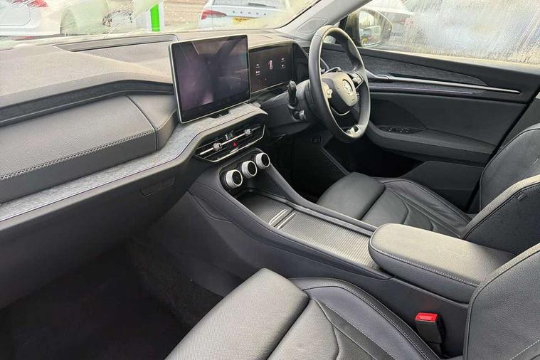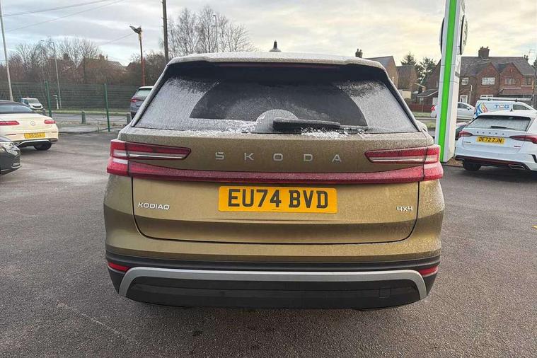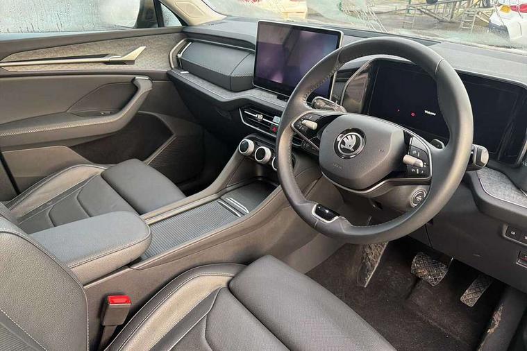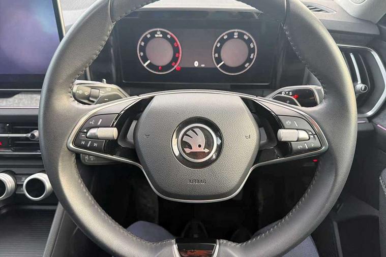 13" satellite navigation touchscreen display, Blind spot detection with door exit warning, Bluetooth system, ChatGPT functionality, Drive mode selector, Driver alert with fatigue sensor, Driver drowsiness alert system, Dry display cleaner, e call+, Front cross traffic assist, Lane assist, PAS, Rear traffic assist, Tailgate unlocking from outside, Traffic sign recognition, USB C Port x 2 in front centre console, Virtual Cockpit - 10.25" digital display, Voice control system, Wireless charging for two smartphones (15W) with cooling function, Wireless SmartLink for Apple CarPlay and Android Auto, Stop/start function, 2x USB-C in the rear, DAB Digital radio, Aero front windscreen wipers with intermittent function, Auto dimming rear view mirror, AWL (all weather lighting) and all weather light with cornering function, Black wheel arch surrounds, Body colour bumpers, Body colour door mirrors and handles, Cornering light and poor weather light, Electric folding /adjustable/separted heated/folding door mirrors, auto dimming with boarding sports and memory function, Electric front and rear windows, Exterior black decorative trims, Heat insulating glass in windshield, Heated rear window, Ice scraper in fuel tank cap, Invisible tailpipe, LED daytime running lights, LED rear fog light, LED third brake light in rear spoiler, Light assistant with automatic headlight control and coming home feature, Logo projection in door mirrors, Privacy glass, Rear side wing doors, Rear spoiler, Rear window wiper, Red decorative strip between rear LED lights, Safety reflectors on front and rear doors, Window control switches with black trim, Windscreen wipers with rain sensor, Without engine designation, 1.5l bottle holder points in all door, 12V socket in boot, 1x centre rear reading light, 2 seat bench in 3rd row, 3 configurable smart dials with 32mm coloured display, 3 seat bench in 2nd row, 4 foldable roof handles with rear coat hooks, Ambient interior lighting - Dashboard, front-door stowage compartments, front and rear door panels and footwell lighting, Automatic gear selector on steering wheel, Chrome interior door handles, Driver/front passenger reading lights, Fabric headlining, Fixed bench 40:60:40 split folding backrests, Front and rear floor mats, Front centre armrest with jumbo box storage compartment, cup holder and 12V socket, Front courtesy lights, Height adjustable front headrests, Isofix child seat fittings in outer middle row rear seats and front passenger with top tether, Manually adjustable steering column, Pollen filter, Rear centre armrest with cupholders, Rear seat boot backrest release, Retractable luggage compartment cover, Single front passenger seat, Sliding trunk cover, Small Bags on the inner sides of the front backrests, Storage pocket including mobile phone pockets on the backs of the front seats, Sunvisors with illuminated vanity mirrors, Three rear height adjustable headrests, Ticket holder on A Pillar, Tri zone climate control, Umbrella in door panel x1 made from sustainable materials, Upper and lower glovebox with card holder and coin compartment, USB C port by rear view mirror for charging only (15W), Exterior styling pack - Kodiaq, Auto door release and activation of warning lights in the event of an accident, Driver and front passenger airbag with knee airbag and front passenger airbag deactivation, Electric child locks, Electronic parking brake, ESC (incl. ABS+EMD+MSR+ASR+EDL+HBA+DSR+RBS+ESBS+MCB+TSA+XDS), Front assist with braking reaction to vehicles, pedestrians and cyclists, Front disc brakes, Fuel cut off safety device, Height adjustable front 3 point seatbelts + pretensioners, Hill hold control, Junction assist with automatic emergency braking, Rear disc brakes, Safety vest holder in door, Seat belt reminder for all seats, Three point rear seat belts, Two tone horn, Tyre pressure monitor, Anti-theft wheel bolts, Immobiliser, Remote central locking with 2 keys, Breakdown kit,