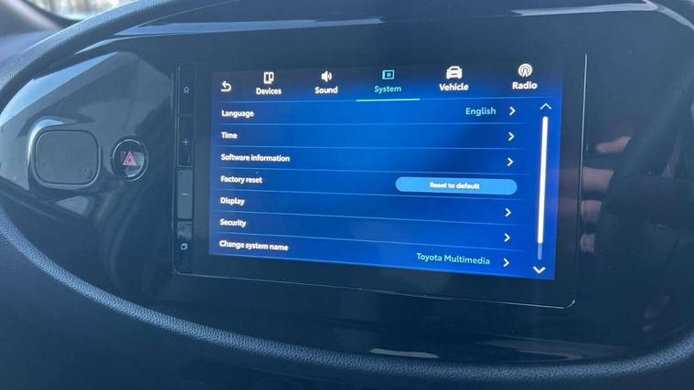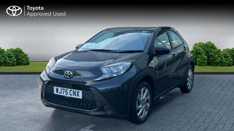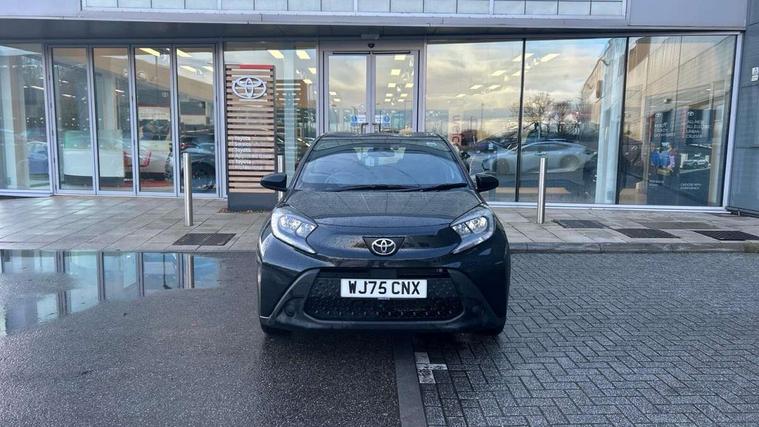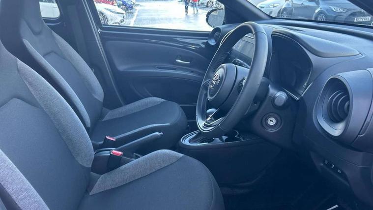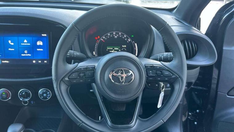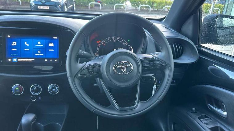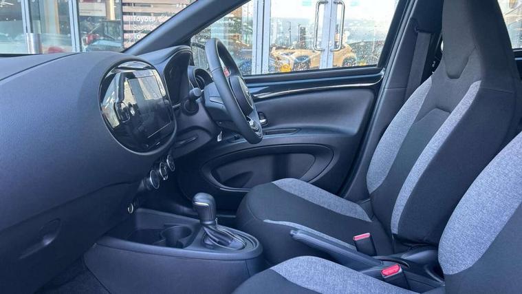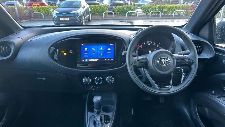 4.2" TFT colour screen, Adjustable speed limiter, Analogue speedometer, Bluetooth connectivity, Digital tachograph, Driver attention alert system, eCall emergency call system, ECO-driving indicator, Electric power steering, Intersection turn assist, Key reminder warning, Noise reduction kit, Pre collision system with emergency steering assist, Reversing camera with static guide lines, Smart phone integration with Apple car play/Android Auto, Speed limit display, Start and stop, Vehicle Stability Control (VSC), 4 speakers, 9" HD multimedia display touch screen with Toyota smart connect, DAB digital audio broadcast, USB connector, Auto headlights, Automatic headlights cut-off, Bicycle towing hook, Black lower front grille, Black rear bumper, Black side protection mouldings, Black upper front grille, Black wheel arch mouldings, Body colour door handles, Body coloured front bumper, Boot door scuff plate, Electric heated door mirrors, Follow me home headlights, Front power windows, Gloss black door mirrors, Headlight cut-off reminder, LED daytime running lights, LED front light guide, LED High mounted stop lamp, Manual day/night rear view mirror, Manual headlight levelling, Pagoda roof, Power adjustable door mirrors, Power back door, Projector halogen headlights, Rain sensor, Rear combination lights LED bulb type, Rear side wing doors, Rear windscreen defogger, Rear windscreen wiper, Short antenna, Variable intermittent windscreen wipers, 12v power outlet - front, 2 seat bench in 2nd row, 3 spoke leather steering wheel, 50/50 split folding rear seat, Adhesive roof headlining, Adjustable speed limiter switch on steering wheel, Audio and telephone switches on steering wheel, Black insert on steering wheel, Boot light, Centre room light, Chrome interior door handles, Chrome surround on air conditioning buttons, Clean air filter, Fabric upholstery, Floor mats, Front and rear cup holders, Front head rest deco art, Front head restraints, Gear shift indicator, Height adjustable driver seat, Intelligent adaptive cruise control switch on steering wheel, ISOFIX child restraint system on rear seats, Lane departure alert switch on steering wheel, Leather gearshift knob, Light grey roof lining, Manual air conditioning, Manual tilt steering wheel, Manually reclining and sliding driver seat, Manually reclining and sliding front passenger seat, Multimedia switches on steering wheel, Pollen filter, Rear door pockets, Rear head restraints, Resin console box storage, Satin silver insert on gear shift knob, Silver stitching on gear shift knob, Single compartment glovebox with lights, Single front passenger seat, Soft tonneau cover, Sun visors with mirror on driver and passenger side, Voice recognition switch on steering wheel, Toyota safety sense pack - Aygo X, Anti lock braking system + Electronic brake force distribution, Child safety door lock, Emergency brake light signal (EBS), Hill start assist control (HAC), Passenger airbag on/off switch, Seat belt reminder for front and rear seats, Supplement restraints system (SRS) - 6 airbags, Traction control, Tyre pressure warning system, Immobiliser, Remote power door locks, Black air vent surround, Black wheel centre caps, Tyre repair kit,