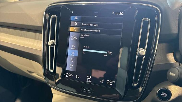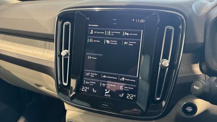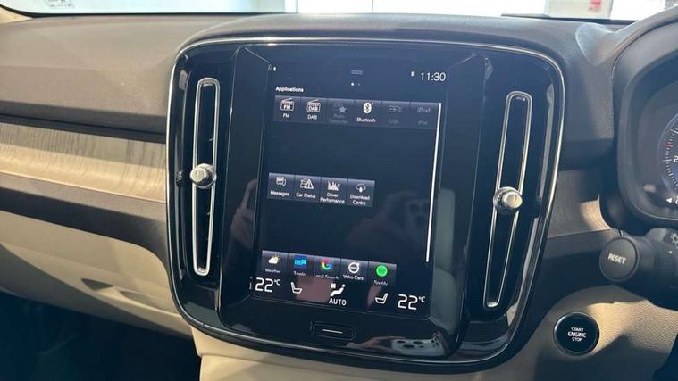 12.3" Active TFT crystal driver's instrument display, 9" centre console portrait touch screen, Adjustable steering wheel force, Bluetooth hands free telephone kit, Drive mode selector, Lane keep assist with driver alert control, Oncoming Lane Mitigation, Sensus navigation with European mapping and traffic information, Speed limiter, Speed sensitive steering, Voice activated control for key functions, Volvo on call, Dynamic chassis, DAB Digital radio, Steering wheel mounted remote controls, Active bending headlights, Adaptive brake lights with high level LED brake lights, Auto dimming interior mirror, Automatic headlamp levelling, Chrome window surround, Colour coordinated auto folding and heated power door mirrors, Dual exhaust pipes, Front aluminium tread plates, Front and rear electric windows, High gloss black front grille with chrome inserts, High gloss black sensus surround deco, High Gloss silver front and rear skid plate, Home safe and approach lighting, LED front fog lights with static cornering light function, LED Headlights + Active high beam incorporating daytime running lights, Rain sensor with automatic windscreen wiper activation, Rear side wing doors, Rear wiper, Roof antenna, Roof spoiler, Silver roof rails, Visible VIN plate, 12V socket in front tunnel console and cargo compartment, 2 zone electronic climate control and rear air vent, 3 seat bench in 2nd row, 3 spoke leather steering wheel with chrome trim, 60/40 split folding rear seat, Ambient front door and instrumental panel lighting, Bright metal luggage threshold, Centre console cupholders and storage, Driver's side lower dashboard credit card storage compartment, Front door pocket and front cupholder illumination, Front footwell illumination, Front headrests, Front reading light and theatre lighting, Front tunnel net pocket and integrated waste bin, Glovebox bag hook, Height/reach adjustable steering column, High gloss centre tunnel deco, Illuminated glovebox, Illuminated luggage compartment, Illuminated tailgate, Illuminated vanity mirrors, Isofix attachments on rear seats, Key integrated remote, Leather faced upholstery, Load protection net, Luxury floor mats, Multi directional lumbar support, Multicolour theatre lights, Orrefors Crystal gear lever knob, Rear armrest / integral cup holders / storage tray, Rear coat hook, Rear reading and courtesy lights, Single front passenger seat, Underfloor cargo storage, Power seat pack - XC40, 3x3 point rear seatbelts, City safety includes pedestrian, cyclist and large animal detection and front collision warning with full auto brake, Drivers knee airbag, Dual stage driver/passenger airbags, Electronic parking brake with auto hold, First aid kit, Front and outer rear seatbelt reminder and pretensioners, Front seats SIPS airbags, Hill descent control, Hill start assist, Inflatable curtain, Passenger airbag cut-off device, Road sign information display, Run off Road Mitigation, Run off Road Protection, SIPS (Side Impact Protection System), Slippery road and hazard light alert, Stability and Traction Control with Spin control, Engine Drag Control and Corner Traction Control, Tyre pressure monitoring system, Vehicle deceleration control with Anti-lock Brake System, Electronic Brake Distribution and Emergency Brake Assist, Warning triangle, WHIPS whiplash protection system - front, Anti-theft alarm including immobiliser/volume sensor + level sensor, Care key with user defined top speed, Key integrated remote control central locking + fuel flap with deadlocking system and auto open/close power windows, Locking wheel nuts, Private locking for tailgate, Driftwood inlays,