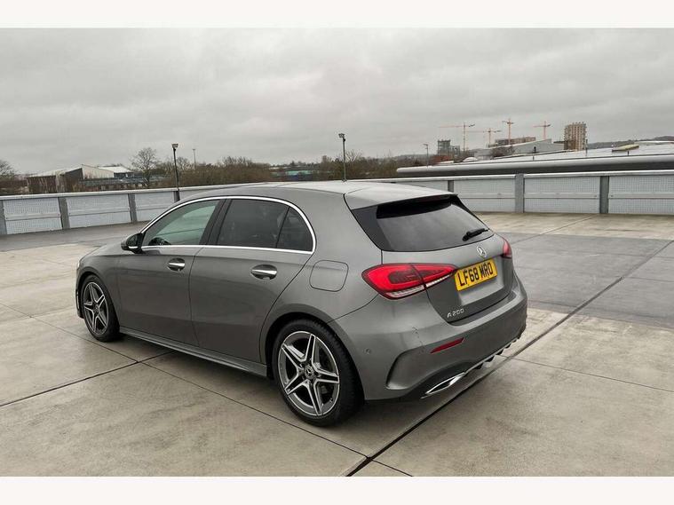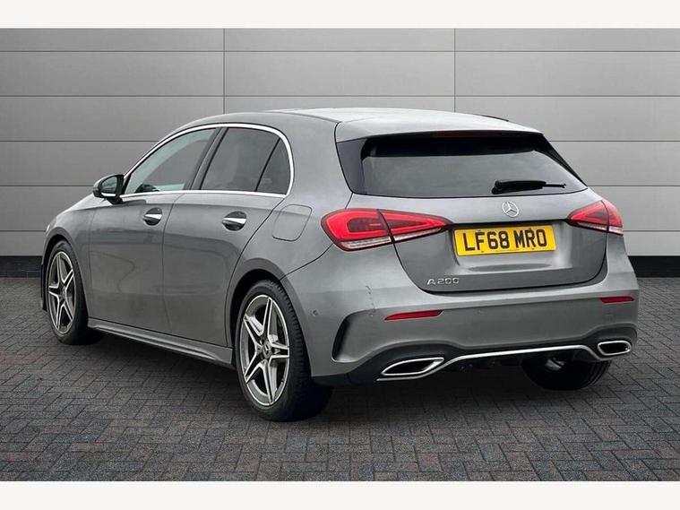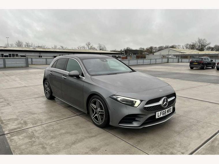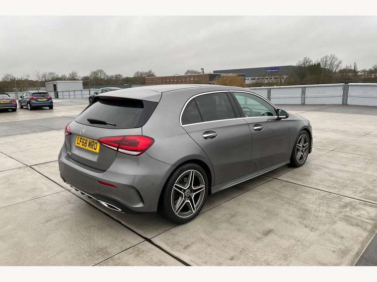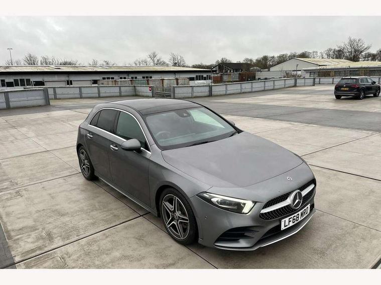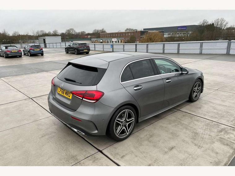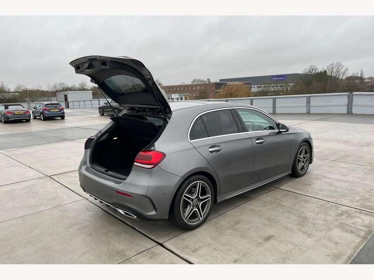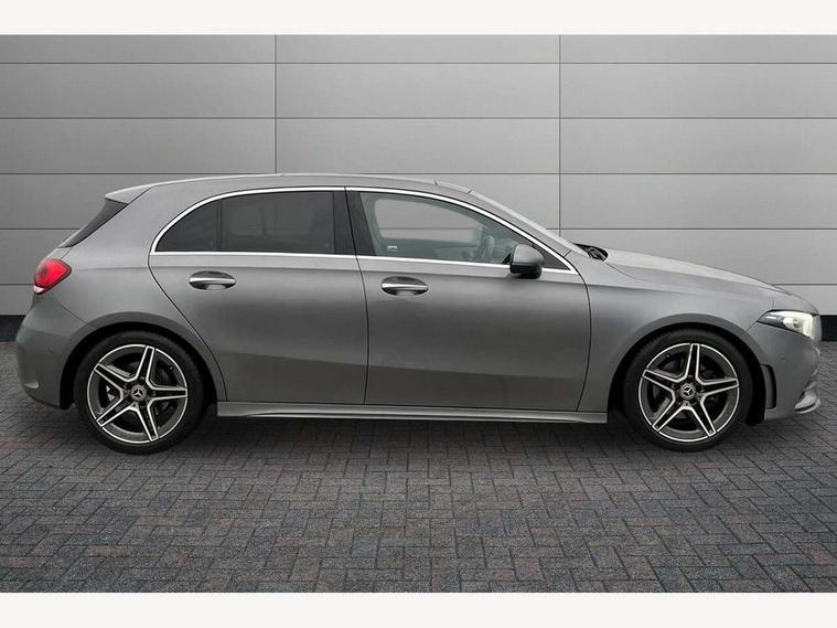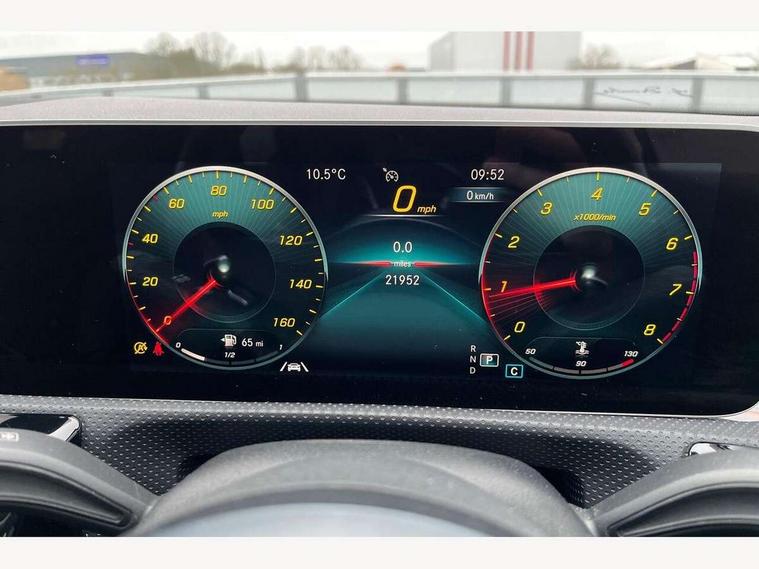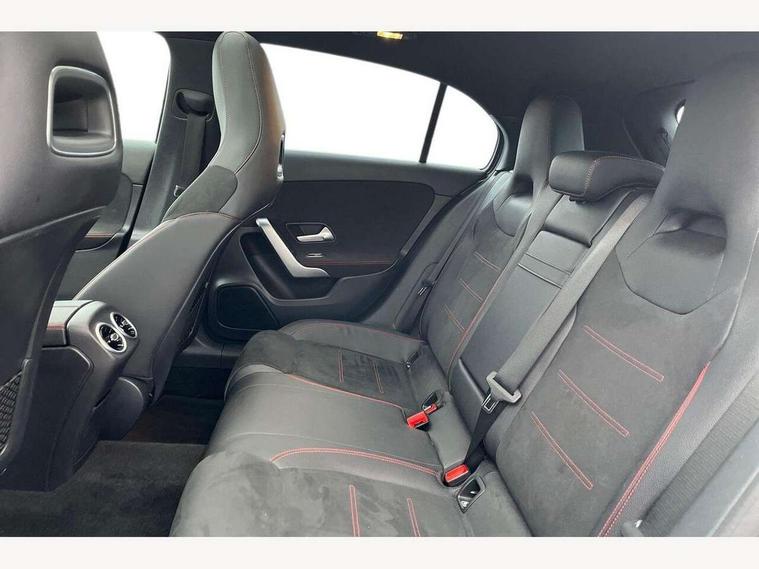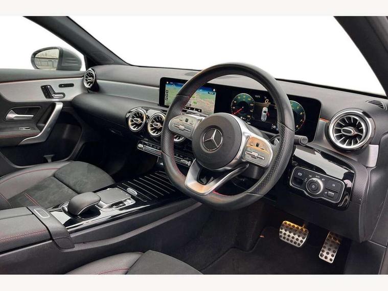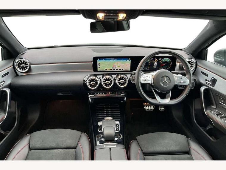 10.25" Digital instrument cluster display screen, 10.25" media display, Active lane keep assist, Active park assist with parktronic system, Attention assist, Bulb failure indicator, Cruise control + speed limiter, Direct steering, DYNAMIC SELECT with a choice of driving modes (ECO, Comfort, Sport, Sport+ and Individual), External temperature gauge, Low fluid warning light, Mercedes connect me with remote online services, Radio aerial integrated into roof spoiler, Reversing camera, Service indicator (ASSYST PLUS), Speed sensitive power steering, Stop/start system, Trip computer, Voice control system, Warning lamp for direction indicators, Lowered comfort suspension, 2 USB ports in centre console, DAB Digital radio, MBUX Multimedia system including digital instrument cluster and phone mirroring, Mid-range sound system, Adaptive brake lights, Adaptive high beam assist plus, AMG body styling, Auto dimming driver's door mirror, Auto dimming rear view mirror, Body colour bumpers, Body colour door handles, Body colour side skirt, Body coloured door mirrors, Chrome beltline trim, Diamond radiator grille with chrome pins and silver louvre + chrome insert, Electric adjustable heated door mirrors, Electric folding door mirrors, Electric front windows, Electric rear windows, Headlamp assist, Heated rear window with timer, High level third brake light, LED daytime running lights, LED Headlights, LED rear lights, Panoramic sliding sunroof, Rain sensor windscreen wipers, Rear fog lights, Rear wiper, Twin Trapezoidal tailpipes, 1/3 to 2/3 split folding rear seats, 12V socket, 3 spoke flat bottomed nappa leather sport steering wheel, AMG floor mats with red stitching, Artico man-made leather/Dinamica upholstery, Auto Mercedes-Benz child seat recognition sensor, Black headlining, Brushed stainless steel sports pedals with rubber studs, Controller on centre console with chrome surround, Dual zone automatic climate control, Electric front seats with memory function, Exit lights, Footwell lights, Front and rear reading lights, Front centre armrest with storage compartment, Front door sills with Mercedes benz lettering, Front head restraints, Front seat backs luggage nets, Front sport seats, Gearshift paddles on steering wheel, Heated front seats, Height adjustable front seats, Height/reach adjustable steering column, Illuminated cup holders, Illuminated door sills, Illuminated glovebox, Illuminated storage compartment, Integrated head restraints, Interior door handle illumination, Interior lighting - 64 colour Ambient lighting, Isofix rear child seat preparation, Load securing rings in luggage compartment, Luggage compartment cover, Multifunction steering wheel, Oddments tray lighting, Reading lights, Rear armrest, Rear head restraints, Storage compartment under load area floor, Sunvisors with illuminated vanity mirrors, Touchpad, Twin front cupholders, Seat comfort pack - A Class, 3 rear 3 point seatbelts, ABS with Brake Assist, Active bonnet, Brake calipers with Mercedes-Benz lettering + perforated brake discs, Child proof door locks, Crash responsive emergency lighting, Drivers knee airbag, Dual stage driver/passenger airbags, Electronic parking brake, ESP with ASR, Front and rear seatbelt reminder, Front head airbags, Front passenger seat occupancy sensor, Front side airbags, Hill start assist, Tyre pressure monitoring system, Warning triangle and first aid kit, Window airbags, Alarm system/interior protection/immobiliser, Keyless Go access/ignition system, Remote central locking, Chrome air vent surrounds, 18" AMG 5 twin spoke light alloy wheels in titanium grey with highsheen finish, Tirefit sealant with electric air pump,