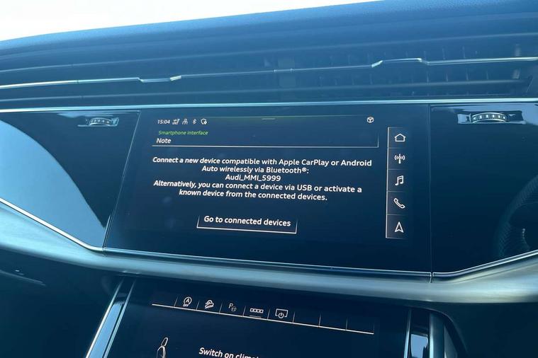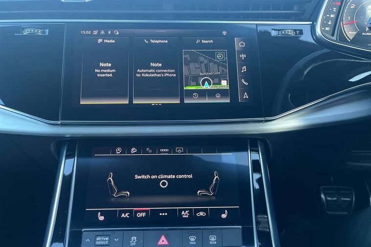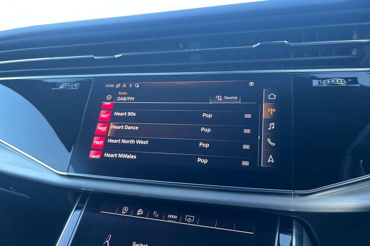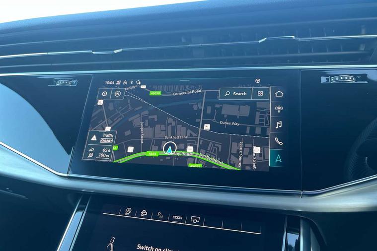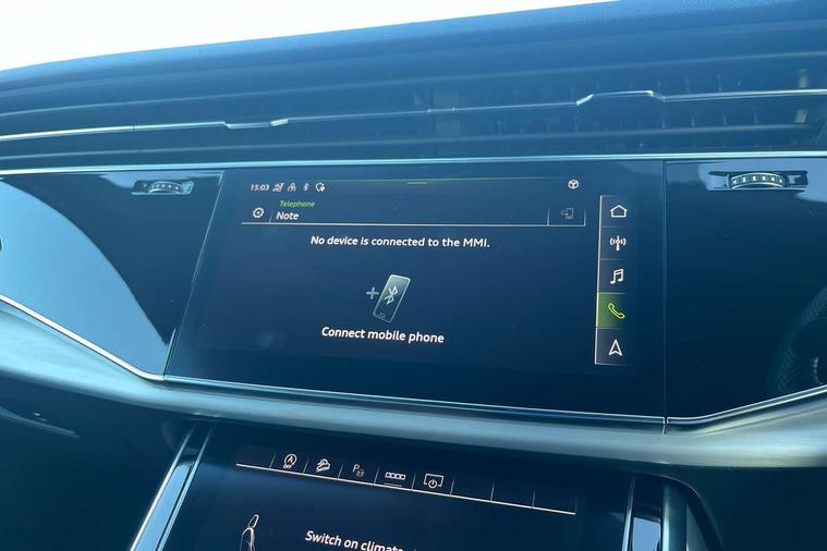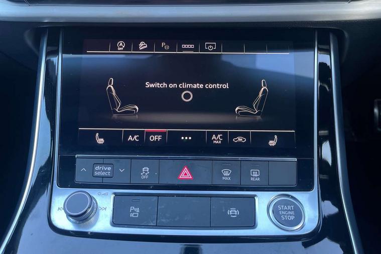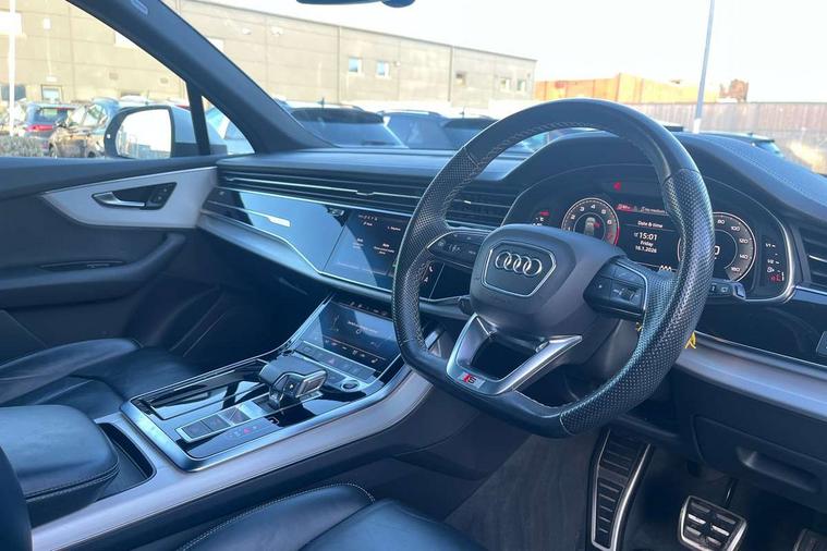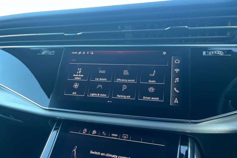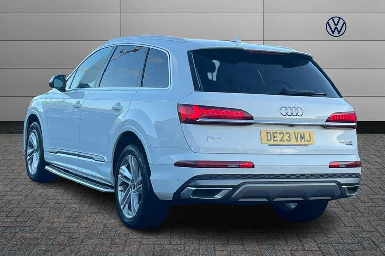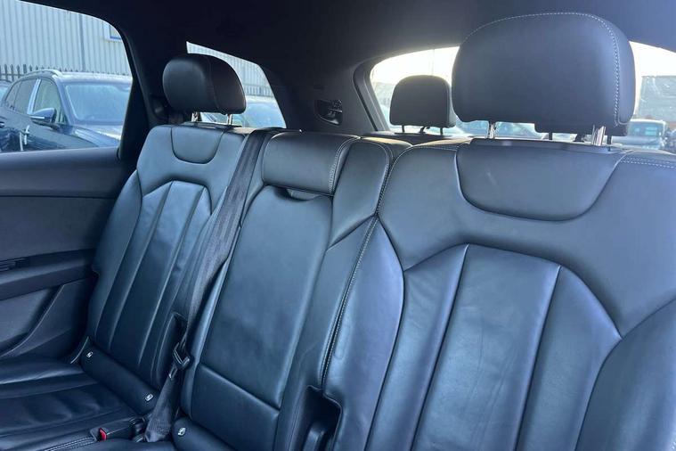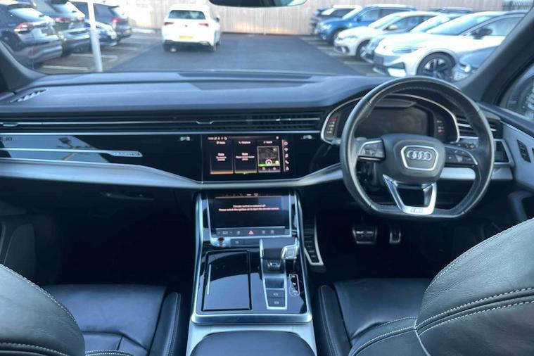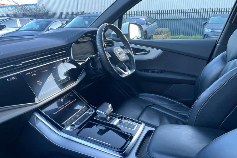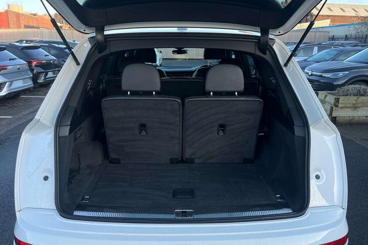 Audi connect safety and service (e-call), Audi connect with Amazon Alexa Integration, Audi drive select (Auto, Comfort, Dynamic, Efficiency, Individual, Off-road and All road), Audi smartphone interface includes wireless Apple carplay/Android Auto, Audi virtual cockpit - 12.3" high-resolution LCD display with fully customisable instrument cluster, Bluetooth interface, Camera based traffic sign recognition, Electromechanical steering, MMI navigation plus with MMI touch screens includes 10.1" and 8.6" screens with haptic feedback, Natural voice recognition, Parking system plus with 360 degree display (front, rear and side sensors) - acoustic and visual park assist system, Power operated tailgate, Rear view camera, Start/stop system, 48V Mild hybrid technology, 85 litre fuel tank, Adaptive air suspension, Quattro all wheel drive with self locking centre differential, Audi music interface - front 2 USB-C ports with charger and data functions, Audi sound system with 6 channel amplifier, 180 watt amplifying capacity and 10 loudspeakers including subwoofer, DAB digital radio module, 3rd brake light, Aluminium roof rails, Aluminium window trim, Auto dimming frameless rear view mirror, Body coloured door mirrors, Dark tinted Matrix LED headlights with dynamic front and rear indicators, Electrically adj heated/folding + automatically dimming exterior mirrors with memory + automatic kerb side function for passenger side exterior mirror, Heat insulating glass in windshield, Integrated LED indications in door mirrors, LED daytime running lights, LED rear tail lights, Privacy glass - dark tinted rear and rear side windows from B-pillar backwards, Rear side wing doors, Rear wiper, S Line badge on wings, S line bumpers in full body colour paint finish, S line roof spoiler, S line styling side ventilation grilles and side skirts, 2 seat bench in 3rd row, 2 zone automatic climate control, 3 seat bench in 2nd row, 7 seat layout with ISOFIX points for the front passenger seat and rear passenger seat, Black cloth headlining, Comfort front centre armrest, Electric adjustable front seat with 4 way lumbar support, driver memory functionality, Folding rear seats, Front head restraints, Front/rear floor mats, Heated front seats, Illuminated door sill trims with S logo, LED interior ambient lighting, Luggage compartment cover, Luggage compartment sill protection in stainless steel, Rear head restraints, Single front passenger seat, Stainless steel pedals, Sunvisors with illuminated vanity mirrors, Tool kit, 3 point seatbelts on all rear seats, Audi pre sense front, Child locks on rear doors, Driver and front passenger, front side and curtain airbags, Electromechanical parking brake, Electronic Stabilisation Control (ESC) including ABS, ASR and EDL, Extended pedestrian protection measures, Hill hold assist, Seatbelt monitoring, Tyre pressure loss indicator, Warning triangle and first aid kit, Anti theft alarm, Anti-theft wheel bolts and wheel loosening detection, Keyless Go, Remote central locking, Darkened matt brushed aluminium inlays, Tyre repair kit,