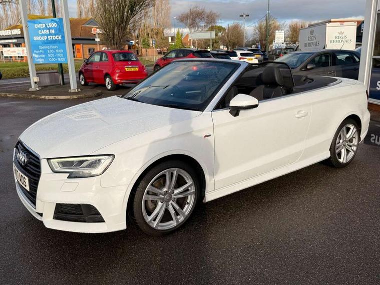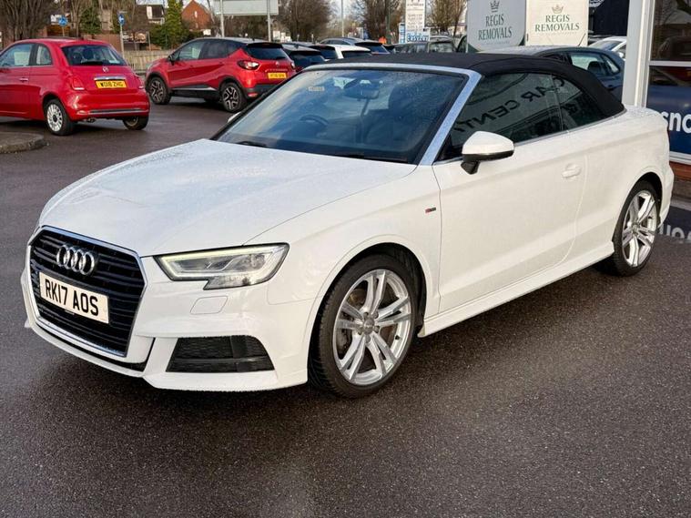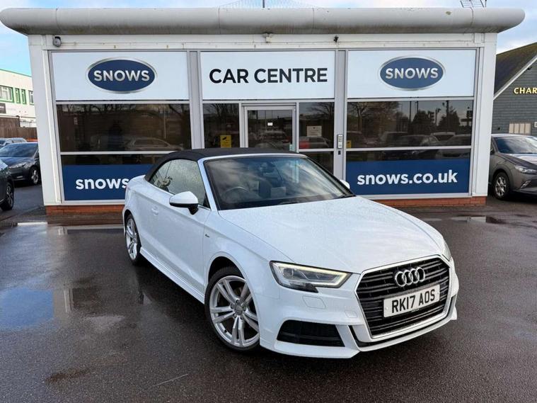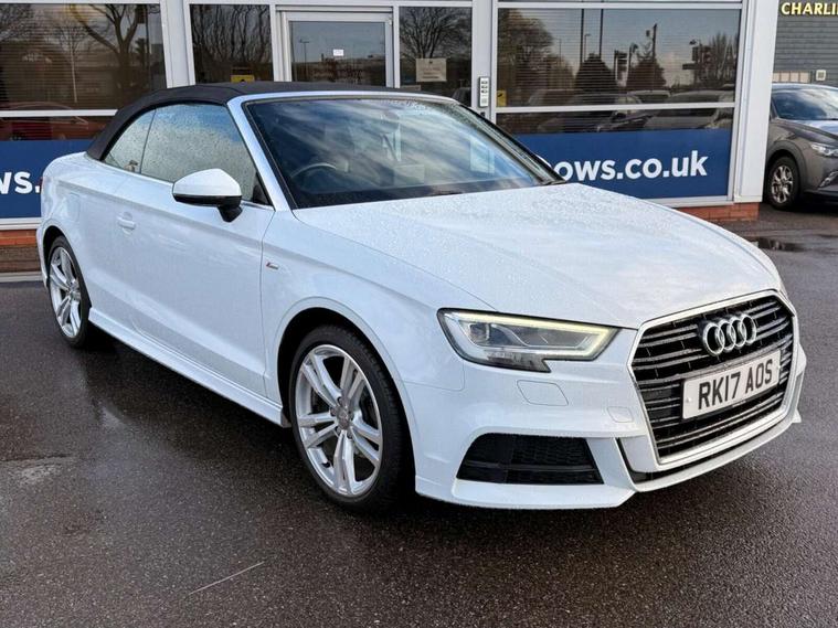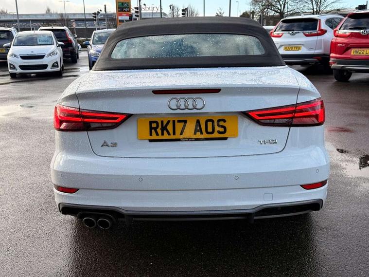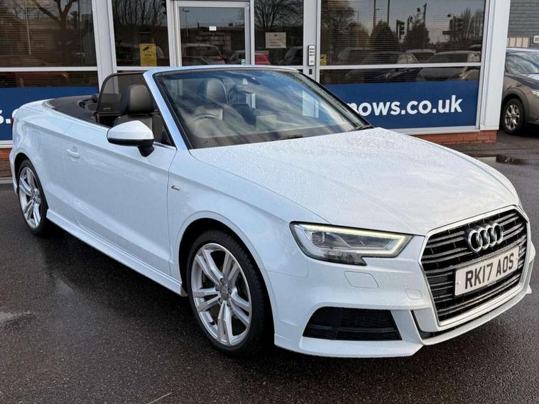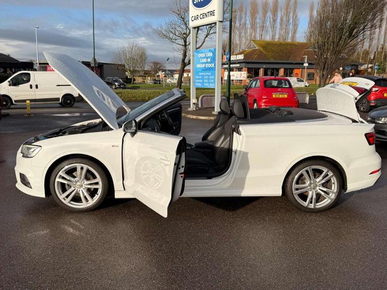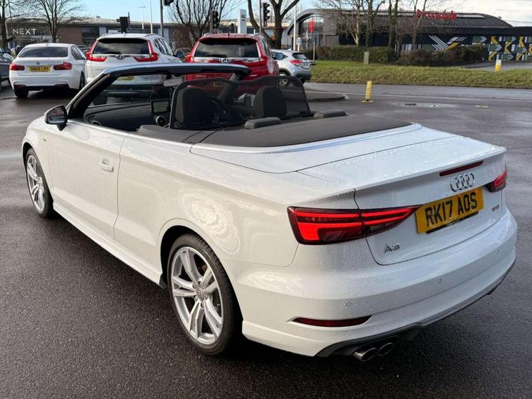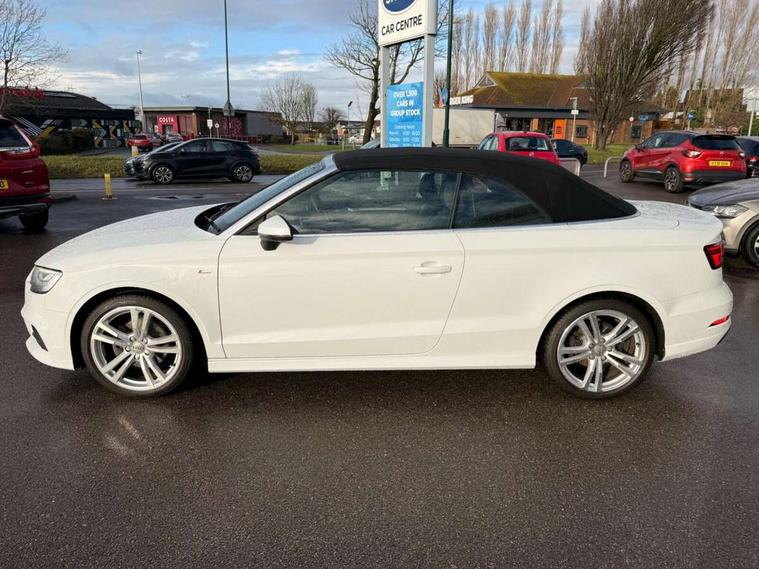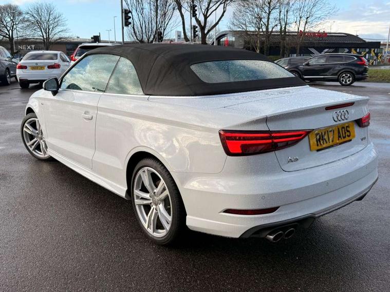 Audi connect, Audi drive select, Audi smartphone interface, Bluetooth interface, Colour driver's information system display, Service interval indicator, 2 USB ports, Audi music interface, DAB Digital radio, Aluminium side window trim, Automatic lights and wipers, Body colour bumpers, Body colour door mirrors with integral indicators, Chrome exhaust tailpipes, Electric operated/heated door mirrors, Front and rear electric windows, Fully automatic acoustic hood, Heated front windscreen, Heated rear window, Heated windscreen washer jets, LED daytime running lights, S Line body styling, 2 height adjustable rear headrests, 3 spoke flat bottomed multi-function leather steering wheel, 4 lashing points to secure luggage, 50/50 split folding rear seat, Adjustable front armrest, Driver/passenger sunvisors, Dual zone electronic climate control, Front/rear floor mats, Height adjustable front seats, Height/reach adjustable steering column, Illuminated door sills, Illuminated glovebox, ISOFIX child seat preparation+airbag deactivation, Jack and tool kit, Perforated leather gearknob, Stainless steel pedals, Storage compartment in centre console, Storage compartments in doors, LED interior light pack - A3/RS3, Light and rain sensor pack - A3 Cabriolet, Storage pack - A3 Cabriolet/Saloon, 3 point seatbelts on all seats, ABS/EBD, Active bonnet, Active front headrests, ASR, Automatic roll over protection, Driver and passenger side airbags, Driver/Front Passenger airbags, Drivers knee airbag, EDL, Electromechanical parking brake, ESC - Electronic Stability Control + traction control, Front passenger airbag deactivation, Seatbelt warning, Tyre pressure monitor, Warning triangle and first aid kit, Anti theft alarm, Anti-theft wheel bolts, Immobiliser, Remote control central locking, Aluminium air vent surrounds, Aluminium trim elements, Space saver spare wheel,