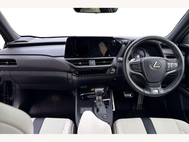 4 driving modes EV/Eco/Normal/Sport, 7" Lexus media display, 8" LFA inspired TFT meters with movable meter ring, Analogue clock with GPS function, Apple car play/Android Auto, Compatible mobile phone bluetooth with audio streaming, E-call, Electric power steering (EPS) with speed sensitive features, Front and rear parking sensor with intelligent clearance sonar, Lane change flasher function, Lexus link connected services, Lexus navigation system, Lexus safety systems + includes dynamic radar cruise control, pre collision system day and night, lane tracing assist, road sign assist, Push button start, Remote touch interface, Reversing camera with back guide lines, Trip computer, F Sport suspension tuning and rear performance dampers, Vehicle Dynamics Integrated Management (VDIM), Vehicle Stability Control (VSC), 2 front USB and 2 rear USB charging points, 6 speakers, AM/FM and DAB radio, AUX socket with VTR compatibility, CD player, Acoustic windscreen, Aero stabilising arch mouldings, Aero stabilising rear lights, Aero ventilated wheels, Aluminium roof rails, Auto dimming interior rear view mirror, Bi-LED (low and high beam) headlights with Auto High Beam (AHB), Black roof drip mouldings, Body adhesive, laser screw welding and laser brazed roof structure, Body coloured bumpers, Colour coded wheel arches, Electric adjustable/heated door mirrors, F SPORT exterior styling consists of black Mesh front grille, enhanced side rockers, metallic coated front bumper and F SPORT badging, Front and rear one touch power windows, with anti-jam protection, Headlight cleaners, LED cornering headlights, LED daytime running lights, LED front and rear fog lights, LED tail lights, LED third brake light, Privacy glass, rear doors and tailgate, Rain sensor windscreen wipers, Rear side wing doors, Rear wiper, Shark fin roof aerial, Single hidden exhaust pipe, Towing preparation, Variable front intermittent wipers, 12V accessory port centre console and luggage compartment, 2 cup holders in the front and rear centre console, 2 way electrical lumbar adjustment for driver, 2 x folding shopping bag hooks in boot, 2 x sun visors with vanity mirror and lamp, 3 seat bench in 2nd row, 4 x tie down hooks in the boot, 5 headrests, 60/40 split folding rear seat, 8 way driver/passenger electrically adjustable front seats, Active sound control, Card holder installed in driver and passengers sun visors, Centre armrest with storage, Driver and passenger door pocket, Dual zone electronic climate control + Nano-E humidity sensor, F Sport aluminium sports pedals, F SPORT dimpled leather gear lever, F SPORT front seat headrest adjustable forwards and backwards, F Sport interior styling, F Sport leather steering wheel with paddle shifts, Fabric/Tahara leather upholstery, Glovebox, Heated steering wheel, Illuminated entry system, LED interior illumination, Map pockets in the rear of passenger's front seat, Rear air vents with 2 USB chargers, Rear armrest with 2 cupholders, Single front passenger seat, Storage tray under audio panel, Textile carpet mats, Tilt/reach adjustable steering column, Under deck storage, Under desk side storage, 2 x Isofix child rear seat restraints, 3x3 point rear seatbelts, Anti-lock braking system (ABS), BAS (Brake Assist System), Driver and front passenger 2 stage airbag, Driver and front passenger knee airbag, Driver/front passenger side airbags, EBD - Electronic brakeforce distribution, ECB (Electronically Controlled Brake System), Electric child locks, Electric parking brake, Front adjustable seatbelt anchor points, Front and rear curtain shield airbags, Front outer seatbelt+pre-tensioners, force limiter+tension reduction: 3-point with active safety link to PCS, Hill start assist control (HAC), Passenger airbag cut-off device, Rear outer seatbelt+pre-tensioners, force limiter+tension reduction: 3-point with active safety link to PCS, Centre belt w/o pre tensioner+force limiter, Secondary Collision Brake (SCB), TRC (Traction Control), Tyre pressure warning, 2 x remote key fobs, Anti theft system : Alarm instruction sensor, glass breakage sensor and engine immobiliser, Locking wheel nuts, Remote central door locking, Speed sensitive auto door locking, Two motion door lock with double lock, VIN Window etching, 18" F Sport alloy wheels with run flat tyres,