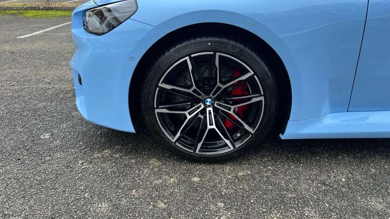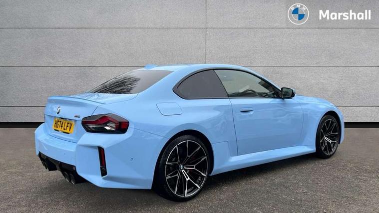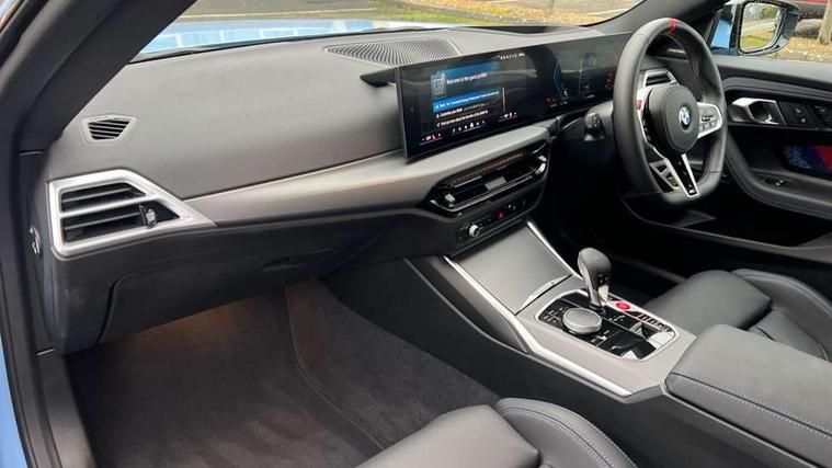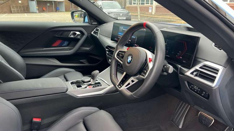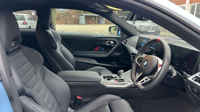 Active Guard, BMW ConnectedDrive online services, BMW legal emergency call, BMW Live Cockpit Professional including Full colour Head up display with configurable HUD contents, BMW Teleservices, Check control system, Configurable dashboard display, Control Infotainment, Digital owner's manual, Drive off assistant, Driver attention warning, Engine start button, Exterior temperature display, Flat tyre monitor, Language version English, Oil sensor for level and grade, On board diagnostics, On board documentation English, PAS, Service interval indicator, Shifting point display, Start/stop system, Storage for wireless charging, Travel data recorder, Trip computer, Voice control for audio, climate, telephone, navigation, Widescreen display, M Adaptive suspension, M Drive Professional including track mode, laptimer, traction control & Drift analyser, M Sport differential, M steptronic sport transmission with drivelogic, DAB tuner, Harman/Kardon surround sound audio system with 464W power digital amplifier, 9 channels and 14 speakers, Harman/Kardon surround sound system, Personal eSim, Adaptive LED Headlights, Automatic headlamp activation, Automatic headlamp levelling, Door mirror integrated indicators, Dynamic brake lights, Electric adjustable heated door mirrors, Electrochromic interior rear view mirror, Exterior mirrors with memory function and automatic parking function, Fading support, Follow me home headlights, Front and rear bumper system, Front electric windows, Headlight beam throw control, Heat protection, sun protection glazing, High beam assistant, LED 3rd brake light, LED daytime running lights, LED indicator lights, LED number plate light, LED rear lights, M high gloss shadowline extended, M high gloss shadowline exterior trim in mirror triangle cover, mirror cover panel, mirror bezel and window border, M lights shadowline, Rain sensor, Rear boot, Sun protection glass, Trailer stabilisation logic, Variable front intermittent wipers, 12V power socket in front centre console with blanking plug, 2 cupholders, 2 rear head restraints, 2 rear seats, 3 spoke leather M multi-function steering wheel, Ambient lighting, Black velour front and rear floor mats, Compartment in front of cupholder, Driver and front passenger heated seats, Driver/passenger electric lumbar adjustment, Electrically adjustable front seats - driver seat with memory, English handbook, Folding rear seat head rests, Front and rear door exit lights, Front and rear footwell lights, Front centre armrest, Front door pockets with bottle holders, Front door sill strips with aluminium inlays and M2 labelling, Front interior light, Front M Sport seats, Front reading lights, Glove compartment, Glovebox light, Heated steering wheel, Height adjustable front headrests, Illuminated armrest storage compartment, Isofix child seat for two outer rear seats, Luggage compartment lighting, M Accent Surfaces Illuminated: Highlighters in the door trim inlay panels and light module in the instrument cluster with M stripes, M Anthracite headlining, Manually adjustable steering column, Rear armrest, Single front passenger seat, Storage compartment in rear doors, Storage tray and compartment with cover in centre console, Through loading system with 40/20/40 split folding rear seat, Two zone automatic air conditioning, Vanity mirror lights, BMW Live cockpit plus pack - M2, Comfort access pack - M2, Connected package professional - M2, Driving Assistant package - M2, Interior and exterior mirror package - M2, Parking assistant package - M2, Storage compartment package - M2, 4 x 3 point seatbelts, ABS/EBD, Automatic Stability Control (ASC), Cornering brake control (CBC), Crash sensor, Curtain airbags, Dry braking, DSC - Dynamic Stability Control, Dynamic brake control, Electromechanical parking brake, Emergency door unlock, First aid kit, Front airbags for driver and front passenger, Front passenger airbag deactivation, Head airbags for all 4 outer seats, Height adjustable front seatbelts, M seat belts, PC iBrake (Post crash approach control warning with light braking function), Seatbelt pretensioners with load limiters, Seatbelt reminder, Side airbags for driver and front passenger, Tyre pressure monitoring system, Warning triangle, Alarm system, Drive away door locking, Immobiliser, Locking wheel bolts, Remote central locking, Tyre repair kit,