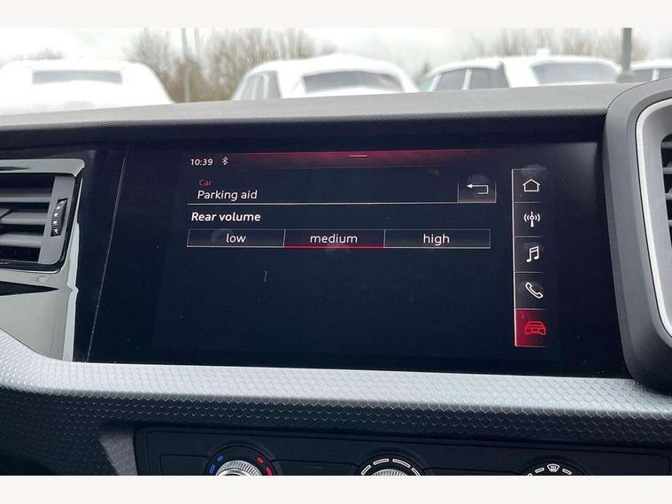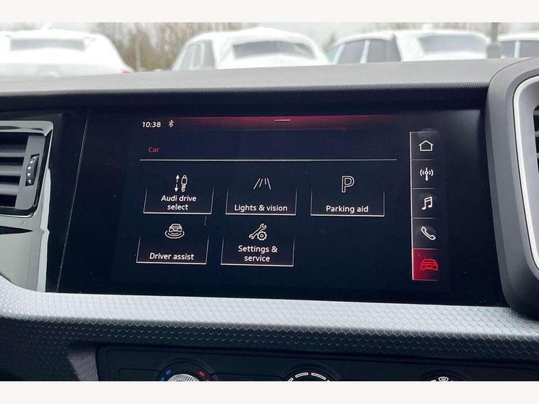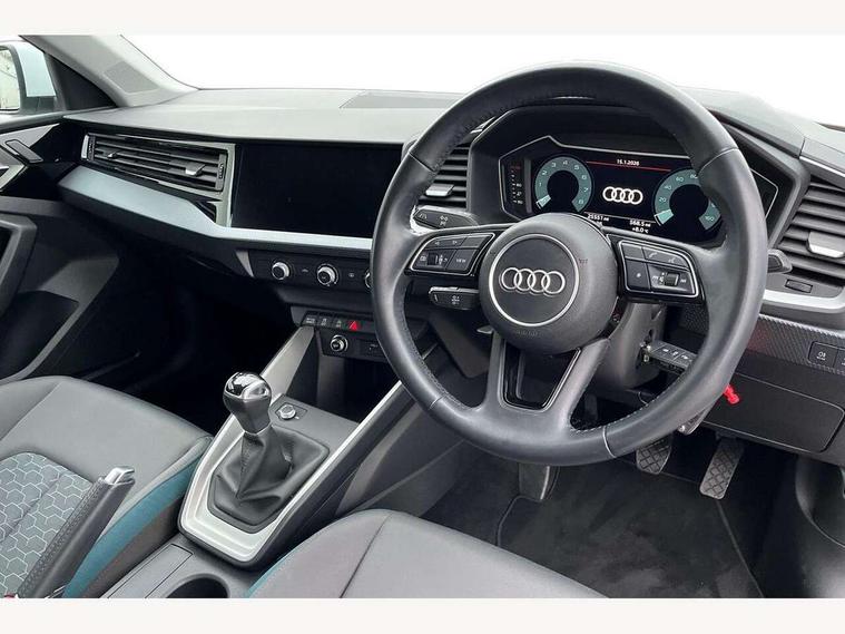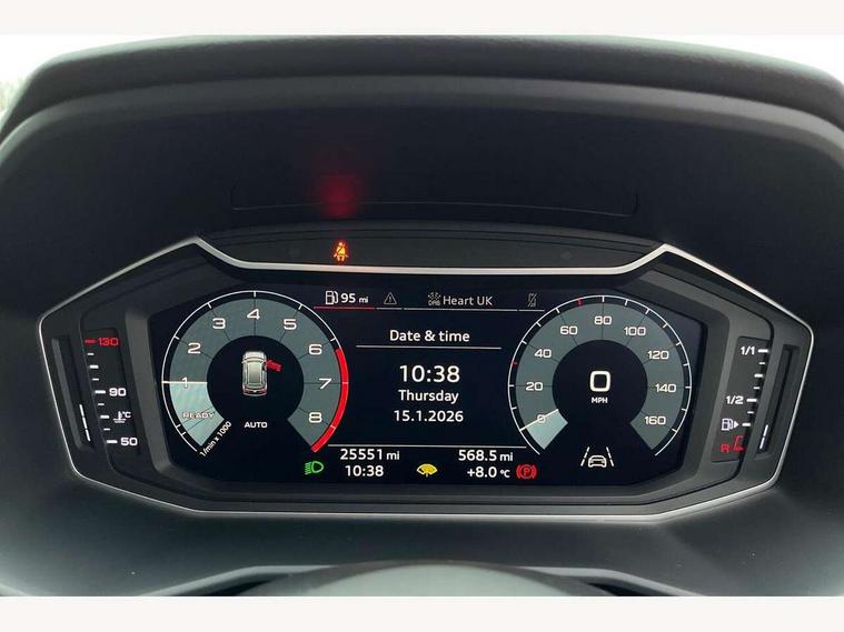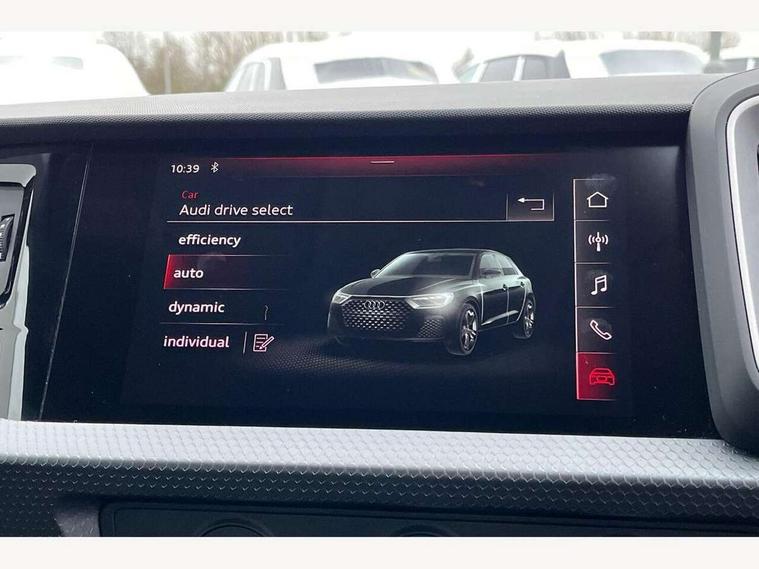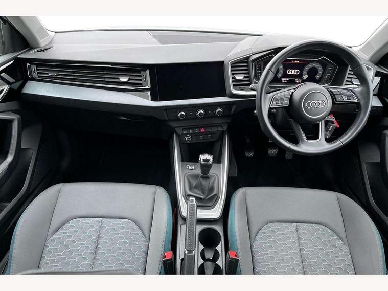 10.25" Digital instrument cluster display screen, Audi connect safety emergency and service including E-call, Audi drive select, Audi smartphone interface, Automatic start/stop system, Bluetooth interface, Driver's information system, Electromechanical power steering, Lane departure warning system, Service interval indicator, Speed limiter, Voice control system, Washer fluid level indicator, Dynamic suspension, 1 x SDXC card reader, 1 x USB type C and 1 USB type A charging points, Audi music interface, Bluetooth audio streaming, DAB Digital radio, MMI radio plus with 8.8" colour MMI display screen and MMI touch, Adaptive brake lights, Auto dimming rear view mirror, Body coloured bumpers, Body coloured door mirrors, Electric front and rear windows, Front side air inlets in grained matt black and C frame in titanium black, Heat insulating glass windscreen and side windows, Heated rear windscreen, LED headlights with LED rear lights + dynamic rear indicators, Radiator grille in matt titanium black, Radiator protective grille frame in matt aluminium silver, Rain and light sensors, Rear fog lights, Rear wiper, Side front spoiler lips in grained matt black, Titanium black matt diffuser, 12V socket in centre console with two cup holders, 3 rear seats, Door sills trims with aluminium inlays, Driver and passenger seat with manual height adjust with forward and backwards adjustment, Front head restraints, Front/rear floor mats, Height and reach adjustable steering wheel, Illuminated glovebox, ISOFIX child seat mounting in front passenger and rear outer seats, Leather gear knob with aluminium trim, Leatherette handbrake grip, Luggage compartment light with front and rear reading lights, Lumbar adjustment for front seats, Novum cloth upholstery with front sport seats, Rear head restraints, Split folding rear seats, Titanium grey cloth headlining, 3x3 point rear seatbelts, Audi pre-sense front with pedestrain and cyclist recognition, Brake assist function, Driver and front passenger airbag with front side and head airbags, Electronic Stability Control including ABS, EBD, ASR and EDL, Front and rear seatbelt reminder, Front passenger airbag deactivation switch, Hill hold assist, Seatbelt height adjustment for front seats, Seatbelt monitoring, Tyre pressure warning light, Warning triangle and first aid kit, Anti theft alarm, Anti theft wheel bolts and loose wheel warning, Immobiliser, Remote central locking with 2 remote folding keys, Aluminium trim for control switches, air vents and digital instrument cluster, Silver grey accent areas including air vents, door handle recesses and centre console in diamond paint finish, Slate grey inlays polygon structure in fine paint finish,