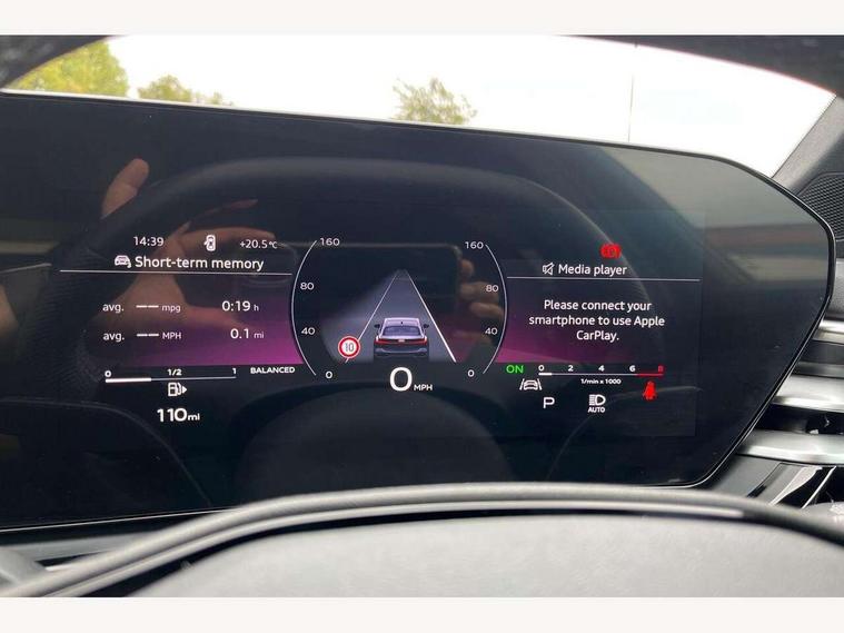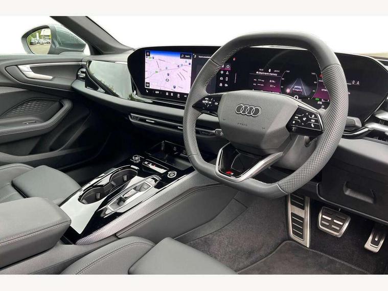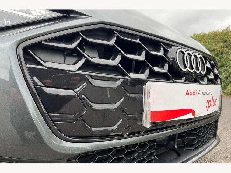 Adaptive cruise control, Advanced driver attention and fatigue montior, Audi application store, Audi assistant, Audi connect emergency call and service, Audi drive select, Audi smartphone interface, Audi virtual cockpit plus with 11.9" OLED colour display, Automatic start/stop system with coasting functionality, Camera based traffic sign recognition, Intersection assist, Lane departure warning, MMI navigation plus with high resolution 14.5" OLED touchscreen colour display, Park assist plus, Parking system plus with 360 display, Progressive steering with servotronic, Rear view camera, Swerve assist and turn assist, Traffic sign based speed limiter, Sports suspension lowered by 20mm, 2 USB-C ports in both the front and rear, Audi sound system impressive sound with 10 loudspeakers including centre speaker and subwoofer, 6-channel amplifier with a total output of 180 watts, DAB digital radio reception, Smartphone compartment with wireless charging, Aluminium window trims, Auto dimming rear view mirror, Body colour door mirrors, Door mirrors - electrically adjustable, heated, folding and auto dimming on both sides, Front and rear electric windows, Front door sill trims with aluminium inlays, illuminated with 'S' logo, High beam assist, LED headlights Plus incl. digital daytime running lights, turning light, all-weather light, motorway light, manouevring light and intersection light, LED rear lights pro incl. dynamic rear indicators and illuminated light strip with animated coming and leaving home function, LED third brake light, Privacy glass, Rear and side windows with heat insulating glass, Rear boot, Rear side wing doors, S Line badges on the front wings, S line bumpers, radiator grille and diffuser in phantom black and diffuser insert in matt anthracite, White rhombus logo projection light in exterior mirrors, Windscreen with acoustic glazing, 3 rear headrests, 3 seat rear bench, 3 spoke leather steering wheel with multi-function buttons with touch control, flattened on top and bottom, with S badging and contrast stitching, 3-zone automatic climate control, 40:20:40 split folding rear seat bench with centre armrest and cup holders, Comfort front centre armrest, Front and rear floor mats, Front seats with manual adjustment for position and 4-way electric lumbar support, Front sport seats with integrated headrest and S embossed logo, Headlining in black cloth, Heated front seats, i-Size child seat mounting on the front passenger side and outer rear seats, i-Size and top tether on the outer rear seats, Luggage compartment lid, electrically opening and closing, Manual steering column height and depth adjustment, Single front passenger seat, Stainless steel pedals and footrest, Steering wheel grips in perforated leather and shift paddles, Ambient lighting package plus - A5, 3x3 point rear seat belts, Driver airbag, Electric child safety locks, First aid kit with warning triangle and vests, Front emergency brake assist, Front passenger airbag, Front passenger airbag deactivation, Front side airbags with head airbag system and front interaction airbag, Hill hold assist, Seat belt monitoring with rear seat occupant reminder, Tyre pressure loss indicator, Anti theft alarm, Anti-theft wheel bolts, Keyless Go, Accent surfaces and control buttons in gloss black, Black dashboard with contrast stitching, Inlays in matt brushed aluminium with linear embossing, anthracite, Softwrap in leatherette with contrast stitching, Upper and lower interior elements in leatherette, Tyre repair kit,