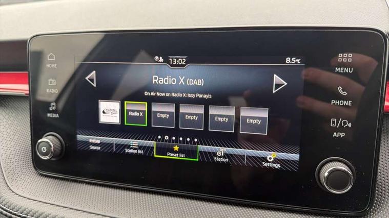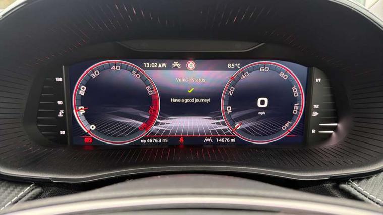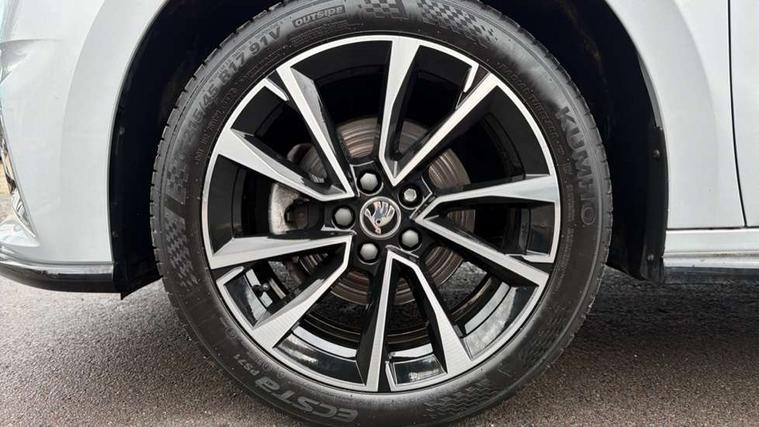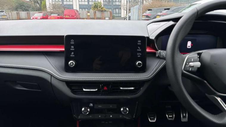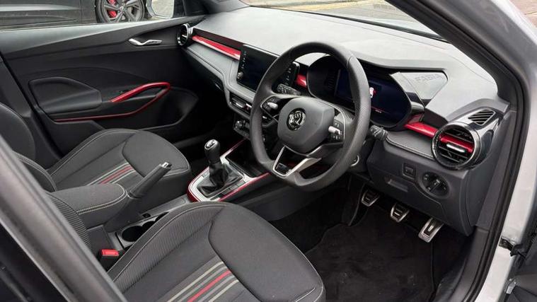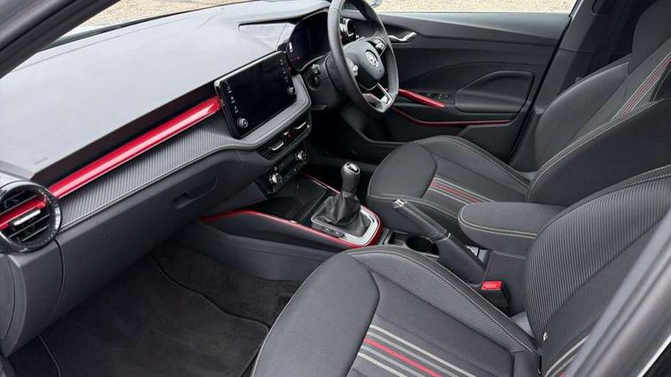 Advanced driver attention and drowsiness monitor, Bluetooth connection, Electromechanical power steering, Exterior temperature gauge, Service interval indicator, Traffic sign recognition, Virtual cockpit with 10.25" colour display, Wireless SmartLink for Apple CarPlay and Android Auto, 6 Speakers (4 in front and 2 in rear), Auxiliary socket for external MP3 player, DAB digital radio reception, Auto dimming rear view mirror, Black radiator grille, Body coloured bumpers, Door mirror integrated indicators, Front and rear electric windows, Front window wiper intermittent control, Headlight range control - Automatic, Ice scraper in fuel cap, LED daytime running lights with coming and leaving home feature, LED rear lights, Monte Carlo badging, Privacy glass, Rear LED fog light, Rear side wing doors, Rear window wiper with washing nozzles, Roof mounted spoiler, SKODA tailgate lettering in black, Sports bumpers, Third brake light, 2 reading lights in front and 2 reading lights in rear, 3 rear headrests, Aluminium pedals, Backrest split and folding, Black headlining, Central console with removable cup holder and storage box, Chrome handbrake release button, Door sills with fabia badging, Dual zone air conditioning with climatronic electronic control, Fabric/artificial leather upholstery, Front centre armrest, Front sports seats, Gearshift knob/handle in leather, Hand brake lever handle in leather, Height adjustable front headrests, Height adjustable front seats, Height adjustable steering wheel, ISOFIX and TopTether anchorage points to the outer rear seats, ISOFIX and TopTether on the front passenger seat, Luggage compartment lighting, Manually adjustable lumbar support in front seats, Metallic painted red central console cover, Metallic red interior door handles, Pollen filter, Rear seat bench unsplit, Single front passenger seat, Sun visors with mirror and airbag label on passenger side, Textile floor mats, Ticket holder, Umbrella in drivers door, 3-point height adjustable front seats belts with pretensioner and force limiter, Automatic warning lights in case of crash, Driver and passengers airbag with switch off function, e-Call+, ESC including ABS, MSR, ASR, EDS, HBA and XDS, Front and rear seat belt warning, FRONT ASSIST (AEB City and AEB Inter Urban), Front side airbags, Head airbags, One tone horn, Pedestrian protection, Three rear 3-points safety seat belts with pretensioner and force limiter including stop function for outer rear seat belts, Tyre pressure monitoring system, Anti-theft alarm system including immobiliser, interior monitoring, backup horn, and towing protection, Central locking with radio remote control, interior controls, SAFE function and 2 foldable keys, Carbon effect door and side trim panels, Carbon effect lower decorative trim with white stitching, Monte carlo air vents, Red metallic upper decorative trim, Anti-theft wheel bolts protection, Super-low rolling resistance tyres,
