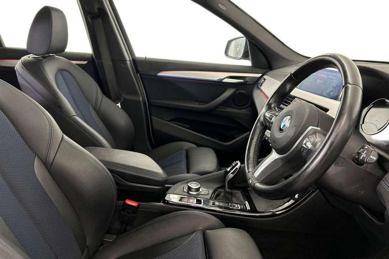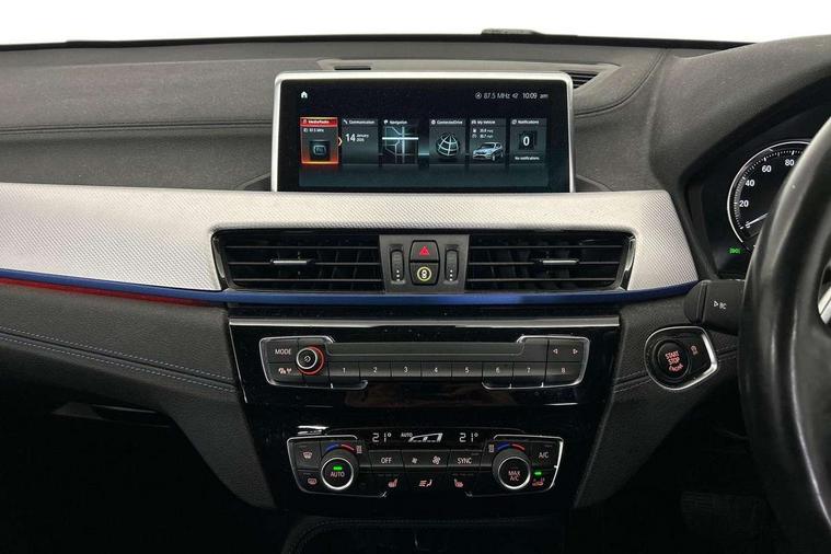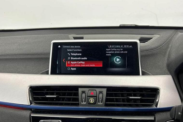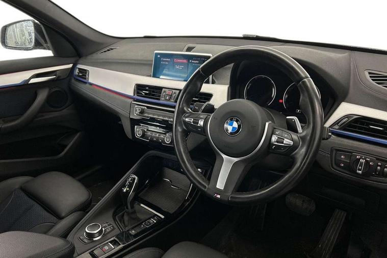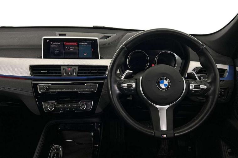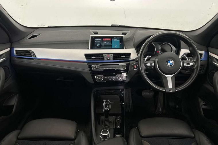Ambient temperature display, Apple CarPlay, Arrow pointers, north up, direction of travel and perspective map displays, Attentiveness assist, Automatic tailgate opening, BMW ConnectedDrive, BMW Navigation system with 8.8" monitor and 800X480 pixel resolution, BMW Online services, BMW remote services, BMW Teleservices, Brake pad wear indicator in front and rear, Characteristic map controlled oil pump system, Electro hydraulically controlled multi plate clutch in rear axle, Energy efficient operating strategy, Front/rear park distance control (PDC), Instrument cluster with Black optic display featuring superimposed dials and 5.7" colour display, Instrument cluster with speedometer with miles per hour read out, tachometer and fuel gauge, Integrated hard drive with map data updates via USB interface, Lights on warning by audio warning signal when ignition is switched off, On board computer, Operation by iDrive with direct selection buttons and 8 programmable buttons, Optimum shift indicator, Outside temperature gauge, Park assist system, Personal Profile - automatic lock when driving away selectable, Real time traffic information, Rigidly mounted rear subframe - Multi link construction with separate spring / damper configuration and excellent driving characteristics, Service interval indicator, Servotronic PAS, Tyre puncture warning system, Variable and stepless distribution of drive torque between front and rear axle, 12V compressor with integrated sealant injection bottle and hose, Aluminium lightweight construction including crankcase, Anti-roll bars, Balancer shaft, Double VANOS, Drive performance control with ECO PRO comfort + sport mode, Eight speed sport automatic transmission, High precision injection, Larger fuel tank capacity (61 litres), Performance Control, Stop/start function, Transmission of power to rear axle via front axle differential and two-part cardan shaft, Turbocharger with Valvetronic, Twin tube gas filled shock absorbers with degressive characteristic curve, DAB Digital radio, Adjustable headlights, Aero curtain, Automatically dimming rear view mirror, BMW Icon design LED daytime driving lights, Body colour bumpers, Body colour door handles, Body colour door mirrors, Body colour wheel arches and side sills, Direction indicator side lights integrated exterior mirrors, Dynamic brake lights, Electric windows - front and rear, with open/close fingertip control, anti-trap facility and comfort closing, Electrically adjustable door mirrors with aspheric on driver side, convex on passenger side with integrated indicators, Exterior mirrors - electrically folding with anti-dazzle, Follow me home headlights, Front air guide finished in black silver, Front air inlets in matt black with silver finisher matt, Front and rear bumper system, Front bumper air intakes with dark shadow finisher, Green tinted heat protection glazing glass, Headlight beam throw control, Heated door mirrors, Heated windscreen washer jets, High level third brake light, Kidney grille with 14 chrome high gloss black vertical bars, LED direction indicator lights in headlight eyebrow, LED front fog lights, Lightweight engineering, M aerodynamic body styling, M logo designation in side chrome, Model designation, Rain sensor including auto headlights activation, Rear bumper with dark shadow and underbody protection in body colour, Rear fog lights, Rear window aerial, Rear window wash/wipe, Reversing light in rear light cluster, Roof mouldings in matt black, Shark fin antenna, Sill cover matt black with matt silver insert, Twin chrome exhaust tailpipes x2, Two eye face design on light, Visible VIN plate, Welcome lighting, 12v power point in centre console, 2 cup holders in front, 3 rear headrests, 40:20:40 split folding rear bench seat, Anthracite floor mats with M specific designation, Anthracite headlining, Boot light, Centre armrest in 20 degree part rear seat backrest, Child seat ISOFIX attachment for two outer rear seats and front passenger seat with anchorage points, Conditioned based service, Driver and front passenger heated seats, Driver/front passenger seat backrest back with luggage net, Dual zone automatic air conditioning, Four grab handles integrated in roof linings, Front and rear side armrests integrated into door trim, Front centre armrest/sliding cover, Front centre interior light over interior mirror and rear centre automatic interior light when door is opened/ignition switched off or via remote key, Front door sill finishers with M designation, Front sports seats, Front/rear adjustable head restraints, Illuminated glovebox, Leather gearknob/gaiter/handbrake grip, LED ambient lighting in door trim, Luggage area underfloor compartment, Luggage compartment access via recessed handle below tailgate, Luggage compartment lighting, Luggage compartment loading edge with stainless steel insert, M Sport nappa leather 3-spoke steering wheel, Manually adjustment steering wheel column, Multifunction steering wheel, Rear coded belt buckles, Standing free front adjustable armrest and fixed in different positions, Steering wheel gearshift paddles, Sunvisors with vanity mirrors and ticket pocket, Extended lights pack - X1, Extended storage package - X1, ABS/EBD, Audio/visual collision warning system, Automatic Stability Control (ASC), Battery safety cut-off, BMW emergency call, Brake drying, Brake energy regeneration, Braking readiness, Cornering brake control (CBC), Crash Sensor - activates hazard/interior lighting + unlocks doors, Driver/Front Passenger airbags, Driver/front passenger side airbags, Dynamic brake control, Dynamic stability control + (DSC+), Dynamic Traction Control - DTC, Electronic differential lock control (EDLC), Electronic parking brake, Front and rear head airbags, Front passenger airbag deactivation, Front seatbelt force limiters, Front ventilated disc brakes, Hill start assist, Pyrotechnically pre-tensioned front seatbelts, Rear disc brakes, Rear door child safety locks, Seatbelt securit