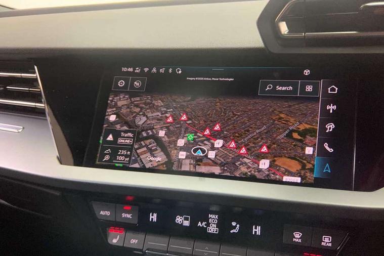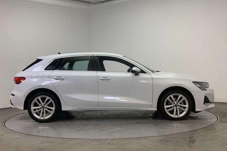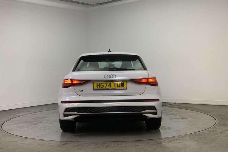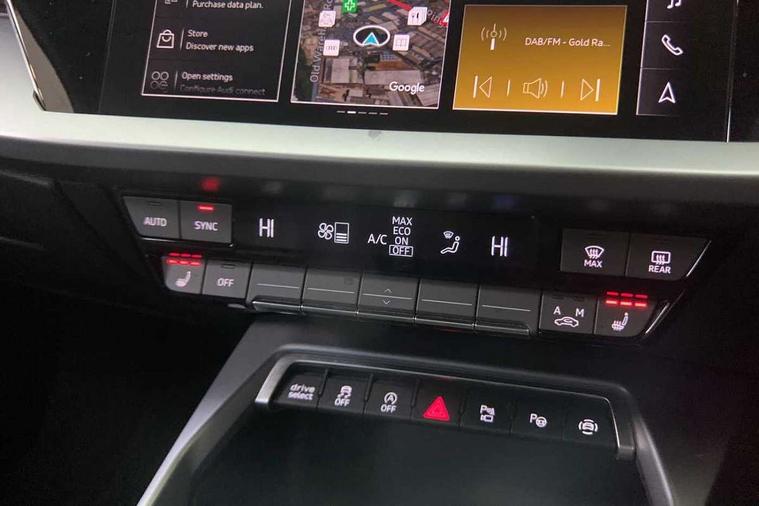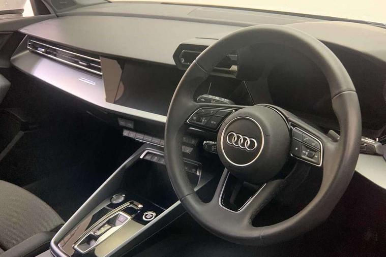 Adjustable speed limiter, Audi drive select, Audi smartphone interface with app store includes wireless Apple carplay, Android auto and Amazon alexa integration, Audi virtual cockpit plus - 12.3" full HD resolution dynamic digital instrument cluster, Automatic start/stop system with recuperation, Bluetooth interface, Camera based traffic sign recognition, Collision avoidance assistant, Cruise control, Distraction and Fatigue warning, e-Call (emergency call), Electromechanical power speed sensitive steering, Lane departure warning system, MMI Navigation Plus with high resolution 10.1" colour touch screen display, Park Assist with parking system Plus, Service indicator, Tailgate, Trip computer, Voice control system with natural language interaction, Standard suspension, Audi Phonebox light with wireless charging, Audi sound system - 10 loudspeakers including centre loudspeaker and subwoofer, DAB Digital radio, USB ports with charging function in the rear, 3rd brake light, Acoustic glass windscreen, Aluminium window trim, Auto dimming frameless rear view mirror, Body colour exterior mirrors, Body colour roof spoiler, Electrically adjustable/heated/folding/auto dimming door mirrors with integrated LED indications + kerb view function for passenger side, Exterior model badging, Front electric windows, Front radiator grill in high gloss dark chrome, Front side air inlets in grained matt black with silver frame, Heat insulating glass windscreen, LED daytime running lights, LED headlights and halogen rear lights, Light and rain sensors, Rear diffuser and grill in grained matt black with silver frame, Rear electric windows, Rear side wing doors, Rear window, rear door windows and rear side windows in clear glass, Rear wiper, 12V socket and storage compartment in front centre console, 3 seat bench in 2nd row, 3 spoke leather multifunction steering wheel with gear shift paddles, 3-zone deluxe automatic air conditioning, 4 way electrically adjustable lumbar support for driver and front passenger, 60/40 split folding rear seat bench, Front and rear headrests, Front centre armrest, Front door sill trims with aluminium inlay, Front/rear floor mats, Heated front seats, Height and reach adjustable steering wheel, Manual boot compartment lid, Manually adjustable front seats, Routine cloth upholstery with front sports seats, Seat side bolsters, Single front passenger seat, Steel grey cloth headlining, Aluminium interior elements pack - A3 Sportback, LED interior lighting pack -A3, 3x3 point rear seat belts, Driver and front passenger airbag with passenger airbag deactivation, Electronic Stabilisation Control (ESC) including ABS, ASR and EDL, First aid kit with warning triangle and 2 safety vests, Front side airbags with head airbags and interaction airbag, Hill hold assist, Pre-sense front with pedestrian and cyclist detection, Seatbelt monitoring, Tyre pressure loss indicator, Anti theft alarm, Anti-theft wheel bolts, Electronically operated child locks, Immobiliser, Remote central locking with safelock, Inlays in volcano grey fine paint finish,