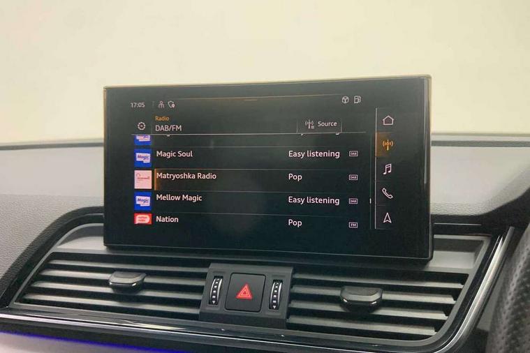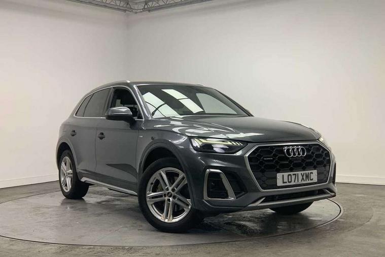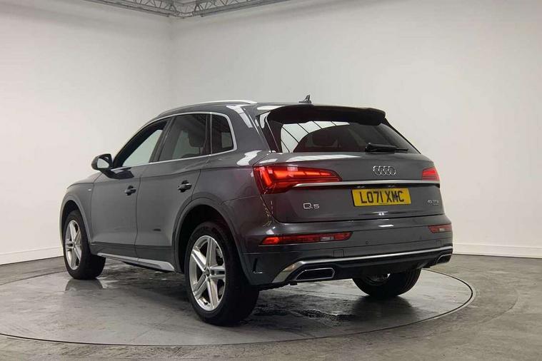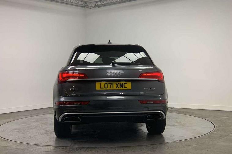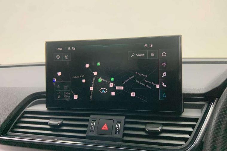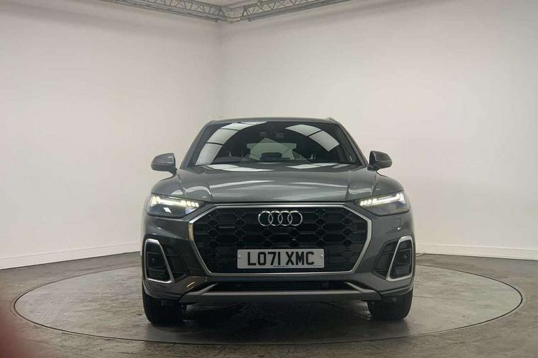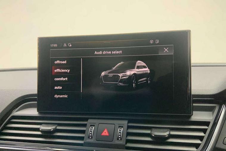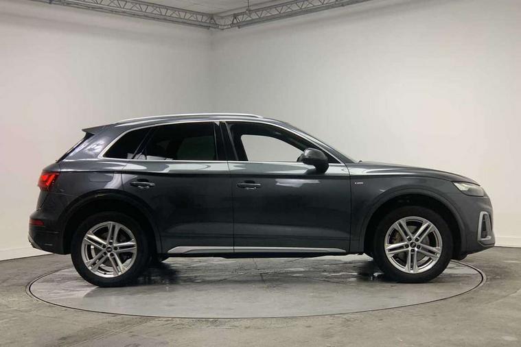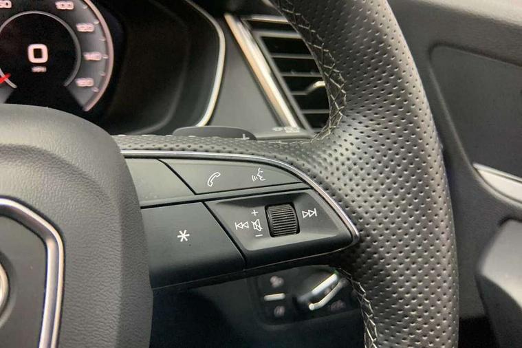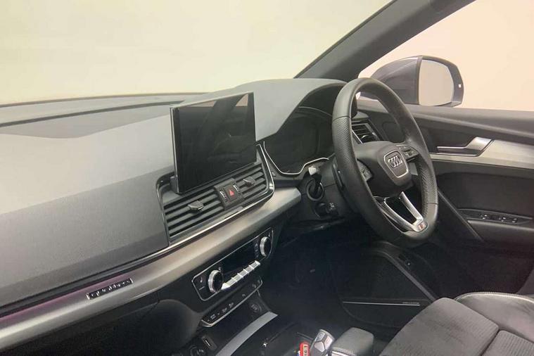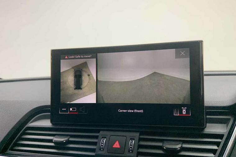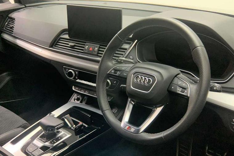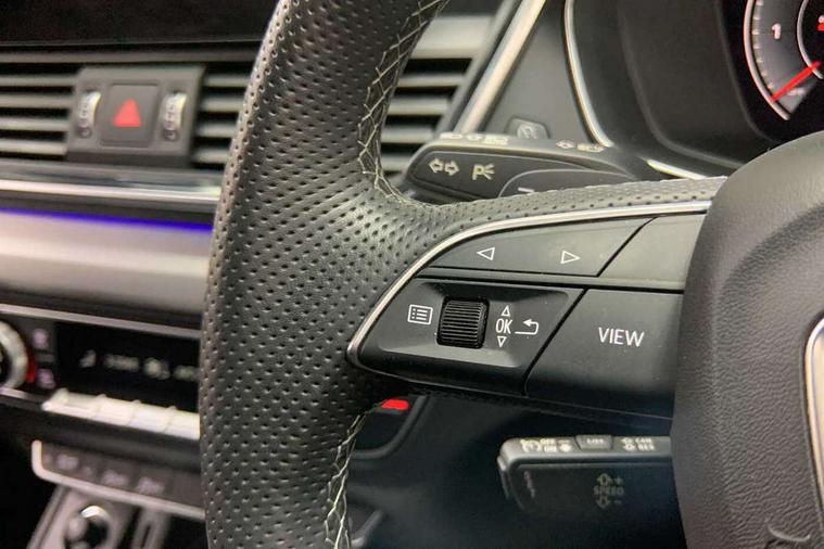 Audi connect safety and service (e-call), Audi connect with Amazon Alexa Integration, Audi drive select, Audi virtual cockpit plus with 12.3" screen and three different layout designs, Audi wireless smartphone interface, Automatic start-stop system with coasting functionality and efficiency programme, Bluetooth interface, Electro - mechanical power assisted steering, MMI navigation plus with 10.1" touch screen, Power tailgate, Reversing camera, Service interval indicator, Voice control system with Audi hotword activation "Hey Audi", Quattro on demand, S line sports suspension, 2 x USB charging port with aux input socket, DAB Digital radio, 3rd brake light, Acoustic windscreen, Aluminium roof rails, Audi matrix LED headlights with dynamic front and rear indicators, Auto dimming rear view mirror, Automatic headlights and windscreen wipers, Body colour bumpers, Body colour door mirrors, Body colour rear diffuser with matt aluminium silver surrounds, Body colour underbody protection, Chrome plated exhaust trims, Daytime running lights, Door sills in Selenite silver, Electric adjustable/heated/folding door mirrors, Front air inlet surrounds in aluminium, Front and rear electric windows, Front radiator grille in honeycomb design, Headlight washers, Lower bumpers painted in contrast Manhattan grey, Rear chrome trim strip below lights, Rear privacy glass and rear side windows, Rear side wing doors, Rear spoiler, Rear wiper, Roof bars, S Line badges on the front wings, S Line front and rear bumpers, S Line side skirts, 3 rear headrests, 40:20:40 split folding 3 rear bench seat in 2nd row with rear centre armrest, Black cloth headlining, Comfort front centre armrest, Contrast stitching on seats, steering wheel and gear lever gaiter, Deluxe 3 zone electronic climate control, Front/rear floor mats, Gear lever in black leather, Heated front seats, Height adjustable front head restraints, Height/reach adjustable steering column, Illuminated door sill trims with S logo, ISOFIX child seat mounting and top tether, Luggage compartment cover, Manual seat adjustment with 4-way electric lumbar support, Removable luggage compartment floor, Single front passenger seat, Stainless steel pedals, Sunvisors with vanity mirrors, High gloss pack - Q5, LED interior light pack - Q5, 3 point seatbelts on all seats, 6 airbags - Driver, front passenger, curtain and side airbags, Electrically operated child locks on rear doors, Electromechanical parking brake, Electronic stabilisation control including ABS, ASR and EDL, Front passenger airbag deactivation, Hill descent control, Hill hold assist, Multi collision brake assist, Pop-up bonnet for pedestrian protection, Pre sense city, Seat belt force limiter, Seatbelt monitoring, Tyre pressure warning, Warning triangle and first aid kit, Anti theft alarm, Anti-theft wheel bolts, Keyless Go access/ignition system, Matt brushed aluminium inlays,