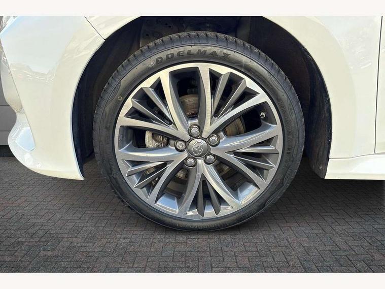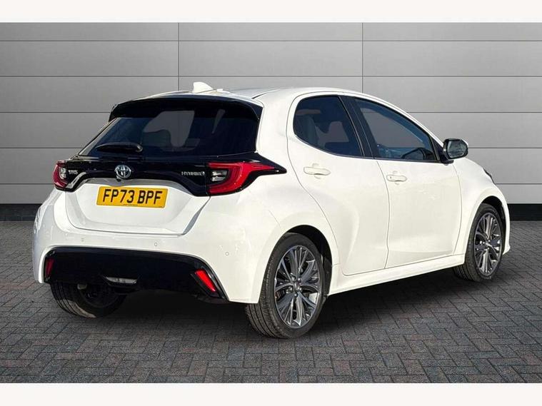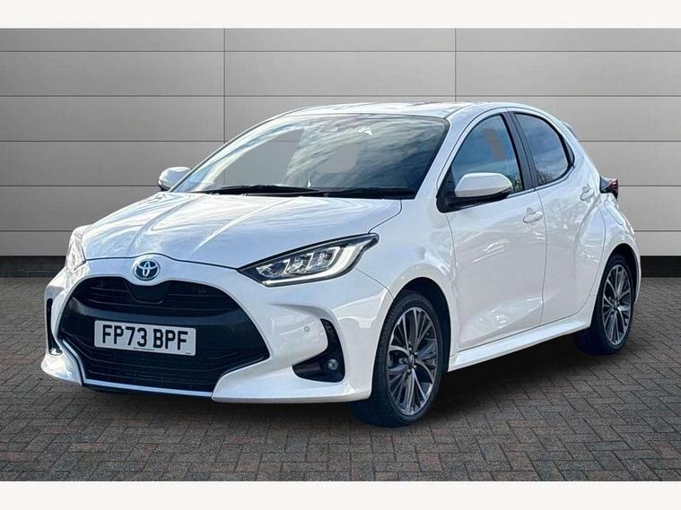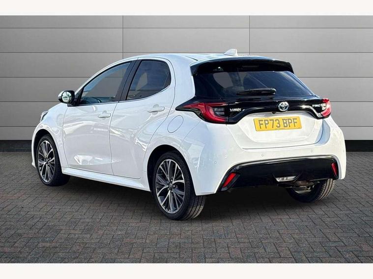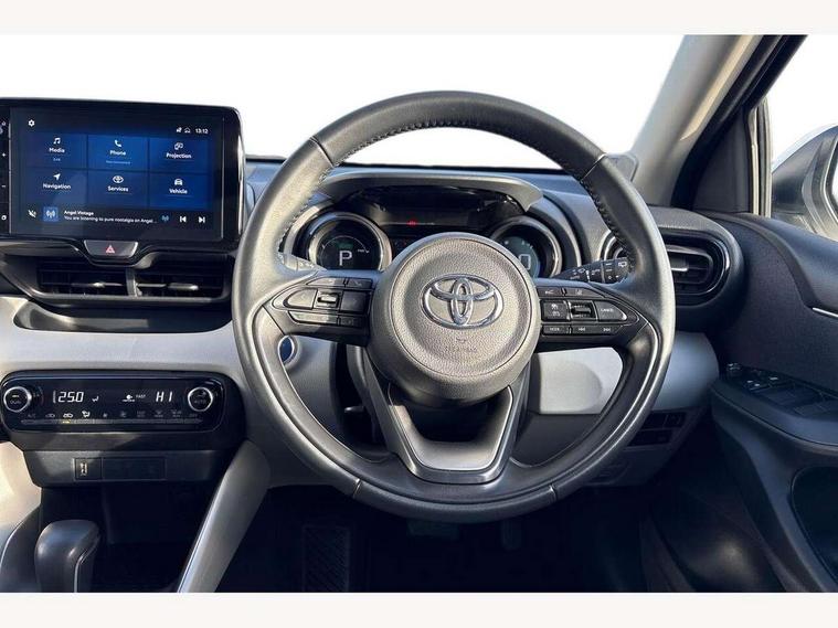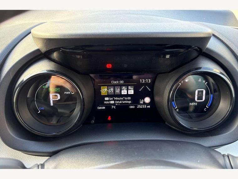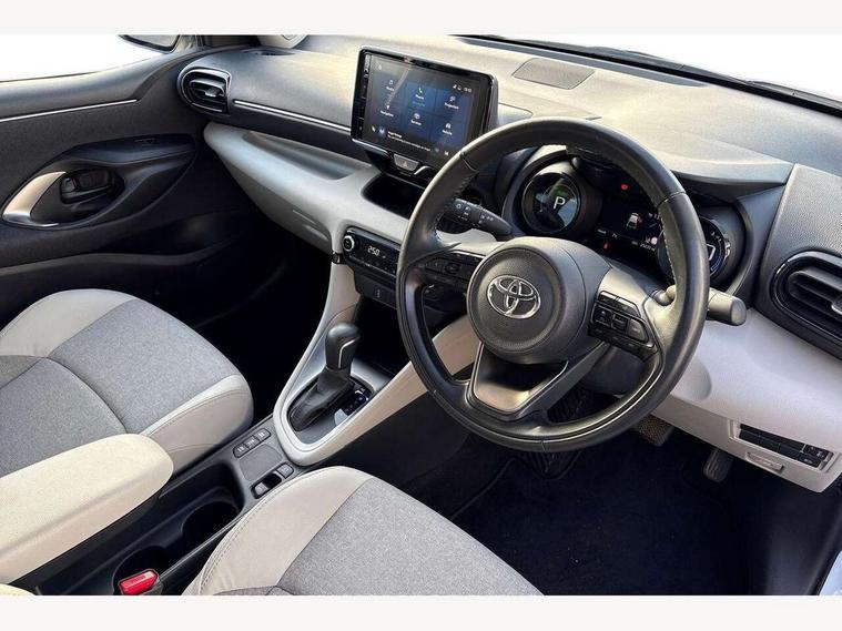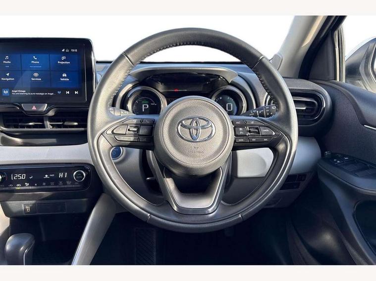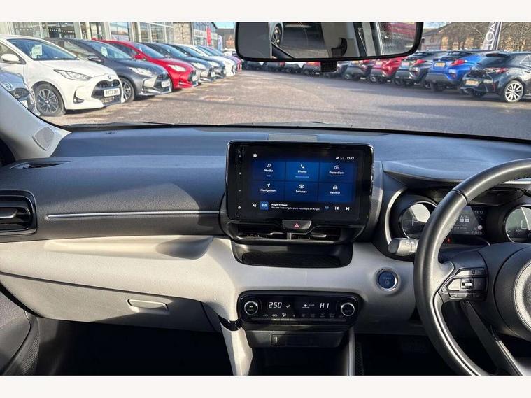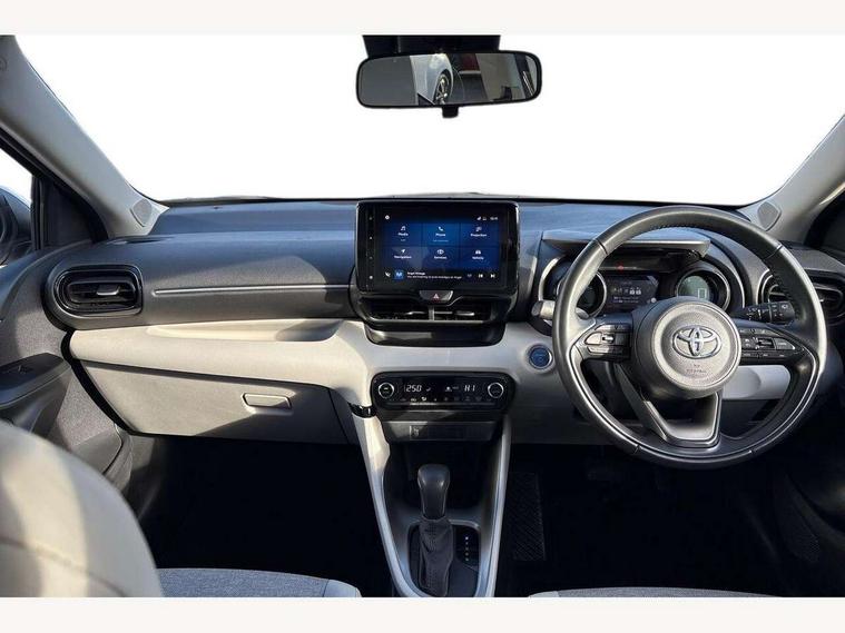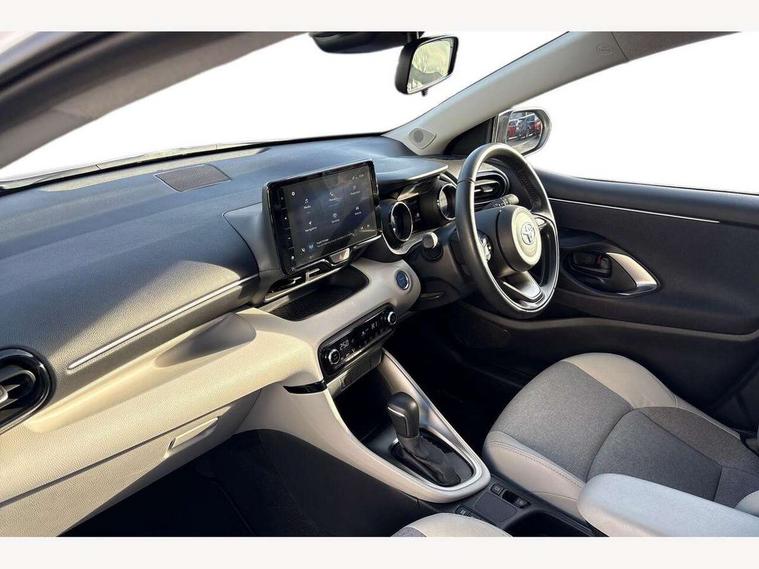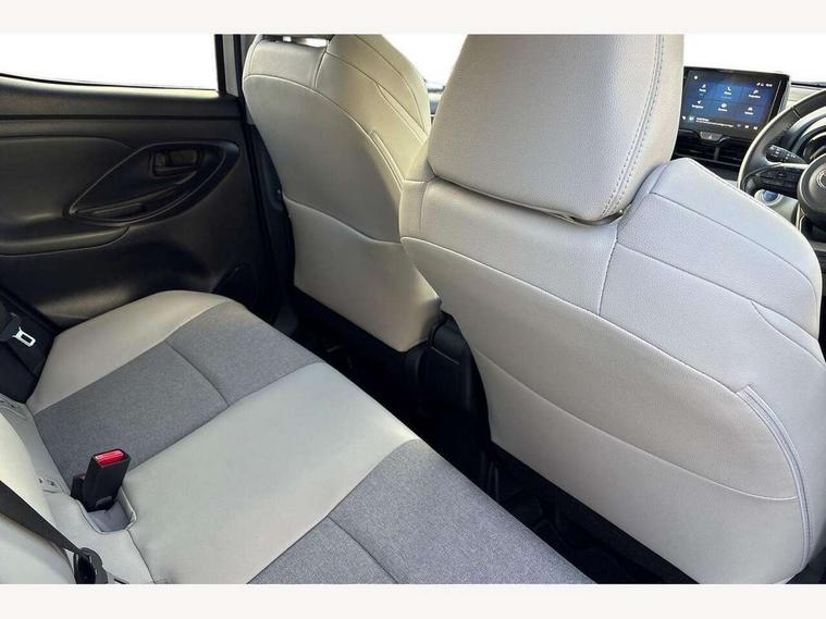 Adaptive cruise control, Adjustable speed limit with speed warning, Blind spot monitoring, Bluetooth connectivity, Colour binocular inspired displays with digital speedometer, E-call, Electric power steering, Hybrid energy display, Multi information display switches on steering wheel, Reversing camera, Smartphone integration with Apple CarPlay and Android auto, Tailgate, Touch 2 navigation system, Voice recognition, Vehicle Stability Control (VSC), 6 speakers, 9" HD multimedia display touch screen with Toyota smart connect, USB connection, Acoustic windscreen glass, Auto windscreen wipers, Automatic headlights, Automatically retractable door mirrors, Body coloured door mirrors, Electric adjustable heated door mirrors, Follow me home headlights, Front auto power windows with anti jam protection, Full LED rear lights, LED daytime running lights, LED front fog lights, LED front light guide, LED Headlights, LED High mounted stop lamp, LED Indicators, LED rear light guide, Manual headlight levelling, Painted chequered front grille, Rain sensor, Rear auto power windows with anti jam protection, Rear privacy glass, Rear side wing doors, Rear spoiler, Rear wiper, Satin lower front grille, Shark fin antenna, Turning signal integrated indicators in door mirrors, Variable front intermittent wipers, 3 adjustable rear headrests, 3 seat bench in 2nd row, 3 spoke leather steering wheel, 60/40 split folding rear seat, Active headrests, Adjustable boot height, Coat hooks in rear grab handles, Cup holders (2 front & door), Data Communication Module (DCM) connected services, Dual zone automatic air conditioning, Fabric seat with partial synthetic leather upholstery, Front armrest, Front sport seats, Glovebox, Grey roof lining, Height adjustable driver's seat, Height adjustable passenger seat, Isofix seat fixing, Leather gearshift, Map pockets on the backs of the front seats, Pollen filter, Shopping bag hooks, Single front passenger seat, Tilt/telescopic steering column, Parking pack - Yaris, 3 point seatbelts on all rear seats, ABS+EBD+Brake assist, Electronic parking brake, Emergency brake light system (EBS), Front passenger airbag on/off switch, Front seatbelt reminder, Hill start assist control (HAC), Rear child proof door locks, Rear seat belt reminder, Supplemental Restraint System (SRS) 8 airbags: Driver & passenger's airbags, dual side curtain airbags, side impact airbags, front centre airbag, Toyota Safety Sense 2, Precollison + Night time Pedestrian & Cyclist Detection, Lane Trace Assist, Auto High Beam, Intelligent ACC & Road Sign Assist, Tyre pressure warning system, 2x Master key, Alarm/immobiliser, Keyless smart entry with push button start, Remote AC via MyT, Remote locking via MyT, Remote powered central double locking doors, Satin chrome interior styling, Soft touch instrument panel, Space saver spare wheel,