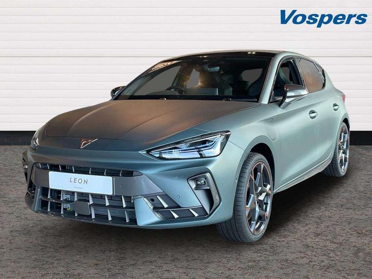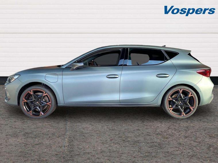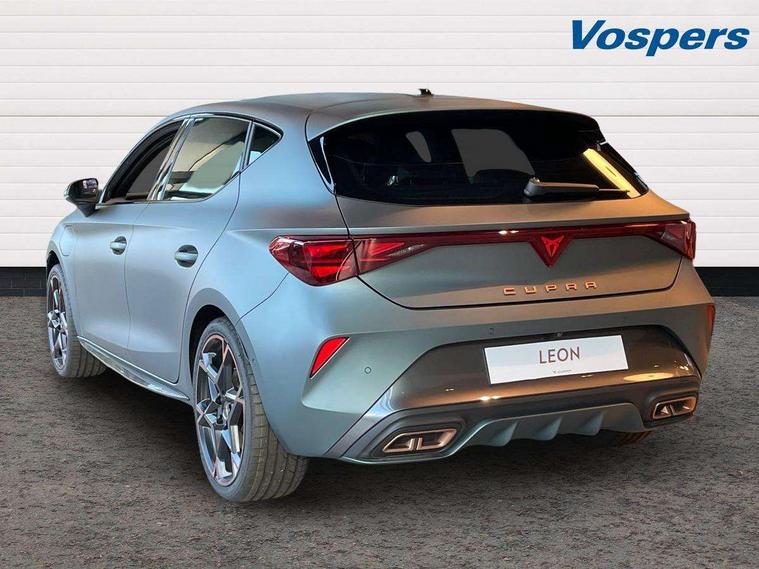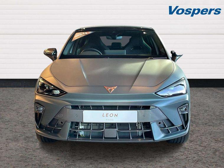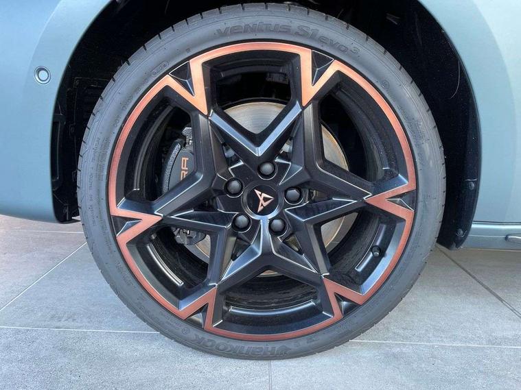Adaptive cruise control with follow-to-stop and speed limiter, CUPRA drive profile selection with (Comfort/Sport/Individual), throttle response and gearshift mode, Digital cockpit, Dynamic road sign display, E-call, Four x USB Type C ports (2 in front and 2 in rear), Front and rear parking sensors, Front assist with forward collision warning braking reaction to vehicles, pedestrians and cyclists, Full link smartphone integration with Mirror Link, wireless Apple CarPlay and wired Google Android Auto, Intelligent park assist, Lane change assist with emergency assist, Lockable tailgate, Rear view camera, RPM, trip computer, outside temp gauge, instrument light brightness, low fuel warning light, lights on reminder, gearshift indicator, Service interval indicator, Side and exit assist, Start/stop system with regenerative braking, Wireless phone charger, 10 amp mode 2 charging cable, 16 amp mode 3 charging cable, Auxiliary input socket, Immersive by Sennheiser TM - 10 speakers, 1 central speaker, 1 subwoofer, Auto dimming rear view mirror, Body colour door handles, Body coloured bumpers, CUPRA side skirts - Painted in dark aluminium, Cupra sports bumpers, Dark tinted rear windows, Electric front/rear windows, Electrically adjustable, heated and folding door mirrors, High beam assist, LED front fog lamps with cornering function, LED rear fog lamp, Matrix LED Headlights with variable light distribution, Matrix Beam and Dynamic headlight range control, Panoramic sunroof, Rain sensing wipers, Rear side wing doors, Rear wash/wipe, Separate daytime running light with automatic headlight control and coming home feature, Third brake light, Welcome light with logo projector in door mirrors, 12v power supply in centre console, 3 seat bench in 2nd row, 5 headrests, 60/40 split rear bench seat with armrest, Ambient lighting (glovebox, footwell, ambient lighting multicoloured), Black headlining, Cupra sports pedals, CUPRA Supersports, heated steering wheel with satellite buttons, Dinamica cloth upholstery, Electrically adjustable driver seat and lumbar support with memory function + manually adjustable passenger seat, Folding boot cover, Front and rear reading lights X 4, Front centre armrest, Heated front seats, Height/reach adjust steering wheel, Illuminated interior front door sills, Interior wraparound lighting, ISOFIX points in outer rear seats with top tether anchorage points, Single front passenger seat, Storage pockets on rear of front seats, Sunvisors with illuminated mirror, Three zone climate control, Dynamic and comfort pack - Leon Cupra, Media system plus with 12.9" display + navigation pack - Leon Cupra, 3 point seatbelts on all rear seats, ABS, Brake control system - ESC and brake booster, Child proof door locks, Cupra black brake calipers, Driver and front passenger airbags with front passenger airbag de-activation, front side and curtain airbags, Electronic parking brake, Hill hold control, Pre-crash front and rear seat belt tensioner, window closure and hazard lights, Rear disc brakes, Seat belt reminder for front and rear seats, Tiredness recognition system, Tyre pressure monitoring system, Anti theft alarm system with interior monitoring in cab, backup horn and towing protection, KESSY Advanced - Keyless start, keyless entry, Locking wheel bolts, Chrome and copper interior detailing, 19" Polar machined R black and copper alloy wheel with 91Y tyres, Breakdown kit, Tool kit,