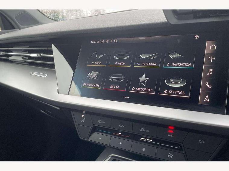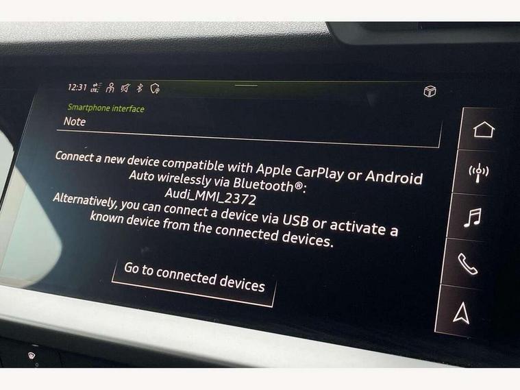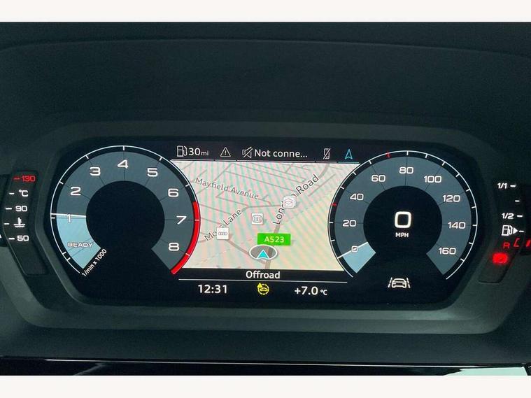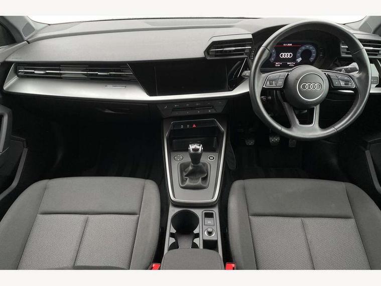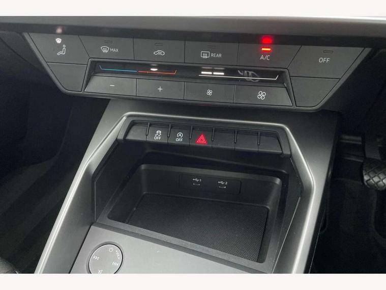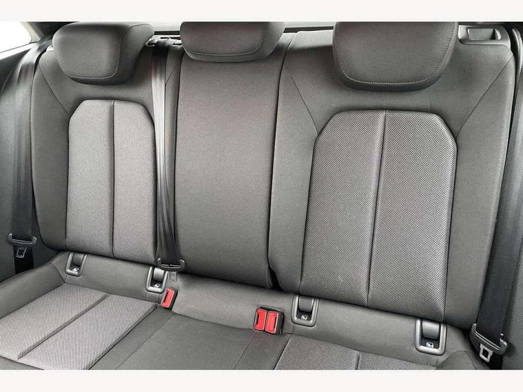 Audi smartphone interface, Audi Virtual Cockpit - 10.25" digital and colour instrument cluster, Automatic start/stop system with recuperation, Bluetooth interface, Collision avoidance assistant, Cruise control, e-Call (emergency call), Electromechanical power speed sensitive steering, Lane departure warning system, MMI Navigation Plus with high resolution 10.1" colour touch screen display, Rear parking sensors, Service indicator, Trip computer, Voice control system with natural language interaction, Standard suspension, 2xUSB-C connection with data and charging functions, 6 passive loudspeakers, DAB Digital radio, 3rd brake light, Acoustic glass windscreen, Auto dimming frameless rear view mirror, Body colour exterior mirrors, Body colour front spoiler blade, Body colour roof spoiler, Electrically adjustable/heated/folding/dimming door mirrors with kerb view includes integrated LED indications + kerb view function for passenger side, Front electric windows, LED daytime running lights, LED headlights and halogen rear lights, Light and rain sensors, Radiator grille and frame in grained matt black and honeycomb look, Rear diffuser in grained matt black, Rear electric windows, Rear side air outlets in grained matt black, Rear side wing doors, Rear window, rear door windows and rear side windows in clear glass, Rear wiper, Side air inlets in grained matt black, 12V socket and storage compartment in front centre console, 3 seat bench in 2nd row, 3 spoke leather multifunction steering wheel, 60/40 split folding rear seat, Front and rear headrests, Front centre armrest, Front/rear floor mats, Height and reach adjustable steering wheel, Interior lighting - Front and rear roof module including reading lights, glove compartment light and right hand side, Luggage compartment floor covering, Manual air conditioning, Manual boot compartment lid, Manually adjustable front seats, Seat side bolsters, Single front passenger seat, Steel grey cloth headlining, 3x3 point rear seat belts, Audi pre sense front, Driver and front passenger airbag with passenger airbag deactivation, Electronic Stabilisation Control (ESC) including ABS, ASR and EDL, First aid kit with warning triangle and 2 safety vests, Front side airbags with head airbags and interaction airbag, Hill hold assist, Pre-sense front with pedestrian and cyclist detection, Seatbelt monitoring, Tyre pressure loss indicator, Anti theft alarm, Anti-theft wheel bolts, Electronically operated child lock, Immobiliser, Remote control central locking, Black decorative window trim, Inlays with silk effect paint in platinum grey, 16" 5 double arm alloy wheels,