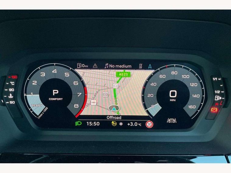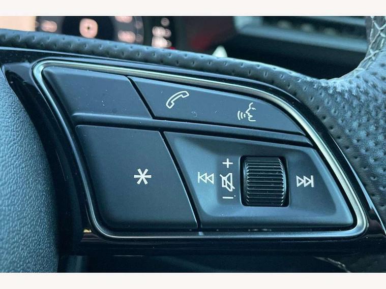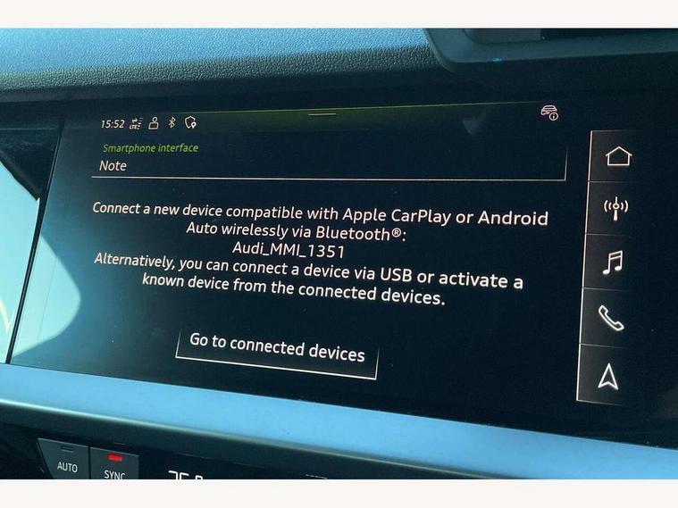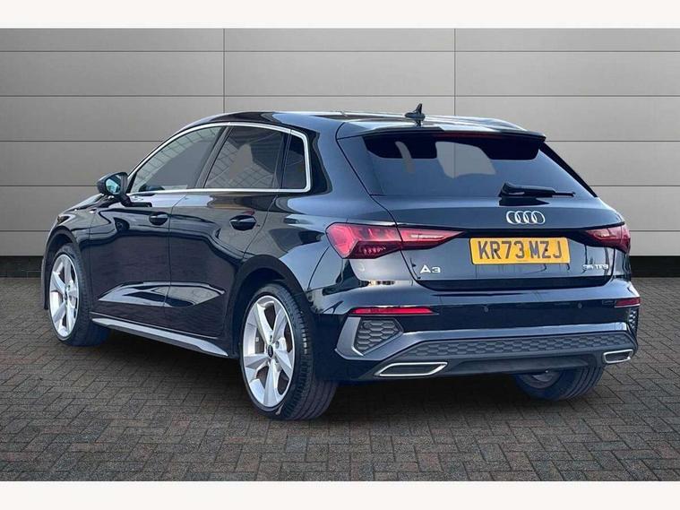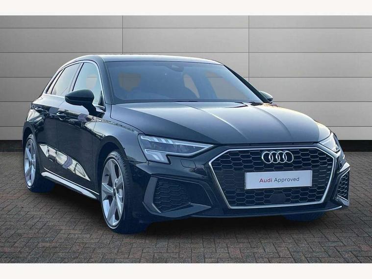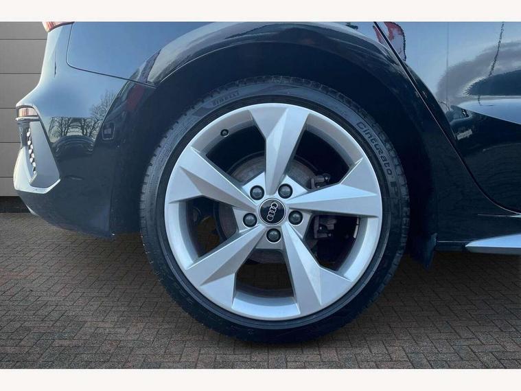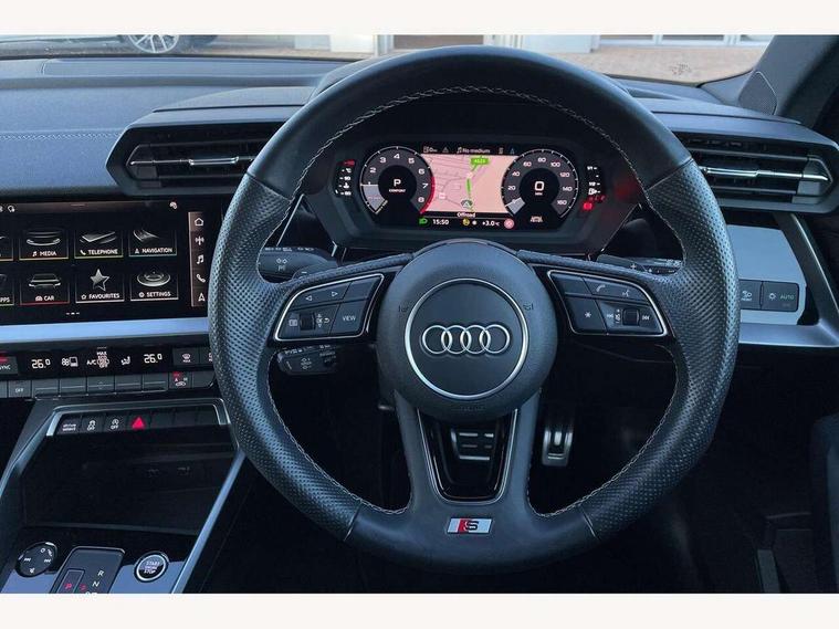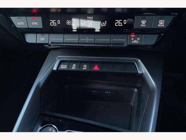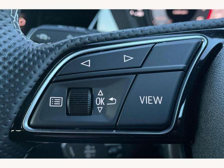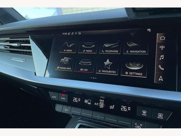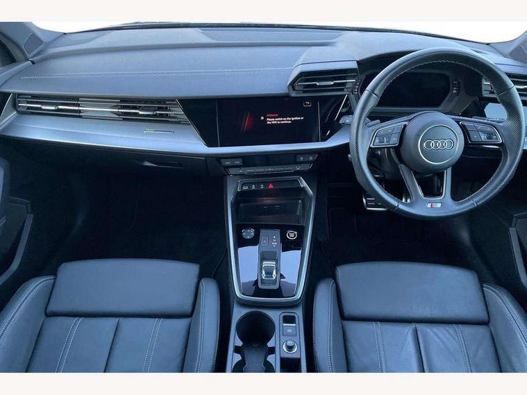 Audi drive select (Auto, Comfort, Dynamic, Efficiency and Individual), Audi smartphone interface, Audi Virtual Cockpit - 10.25" digital and colour instrument cluster, Automatic start/stop system with recuperation, Bluetooth interface, Camera based traffic sign recognition, Collision avoidance assistant, e-Call (emergency call), Electromechanical power speed sensitive steering, Lane departure warning system, MMI Navigation Plus with high resolution 10.1" colour touch screen display, Service indicator, Trip computer, Voice control system with natural language interaction, Sports suspension, 2xUSB-C connection with data and charging functions, 6 passive loudspeakers, DAB Digital radio, 3rd brake light, Acoustic glass windscreen, Aluminium window trim, Auto dimming frameless rear view mirror, Body colour exterior mirrors, Electrically adjustable/heated/folding/dimming door mirrors with kerb view includes integrated LED indications + kerb view function for passenger side, Front electric windows, Illuminated door sills with aluminium inserts at the front with S logo, LED daytime running lights, LED headlights with LED rear lights and dynamic rear indicators, Light and rain sensors, Privacy glass - dark tinted rear window, rear door and side windows, Rear electric windows, Rear side air outlets in grained matt black, Rear side wing doors, Rear wiper, S line bumpers, S roof spoiler, 12V socket and storage compartment in front centre console, 3 seat bench in 2nd row, 3 spoke leather multifunction steering wheel with paddle shift, 4 way electrically adjustable lumbar support for driver and front passenger, 60/40 split folding rear seat bench, Black cloth headlining, Dual zone electronic climate control, Front and rear centre armrest in artificial leather, Front and rear headrests, Front/rear floor mats, Height and reach adjustable steering wheel, Interior lighting - glove compartment light and right hand side, Luggage compartment floor covering, Manual boot compartment lid, Manually adjustable front seats, Seat side bolsters, Single front passenger seat, Stainless steel pedals and front footrest in black, Twin leather upholstery with front sports seats S embossed logo, Aluminium interior elements pack - A3 Sportback, LED interior lighting pack - A3 Sportback, S line styling pack - A3 Sportback, 3x3 point rear seat belts, Driver and front passenger airbag with passenger airbag deactivation, Electronic Stabilisation Control (ESC) including ABS, ASR and EDL, First aid kit with warning triangle and 2 safety vests, Front side airbags with head airbags and interaction airbag, Pre-sense front with pedestrian and cyclist detection, Seatbelt monitoring, Tyre pressure loss indicator, Anti theft alarm, Anti-theft wheel bolts, Electronically operated child locks, Immobiliser, Remote control central locking, Dark spectrum aluminium inlays, accent surfaces in the dashboard and centre console in platinum grey silk effect paint finish,