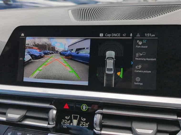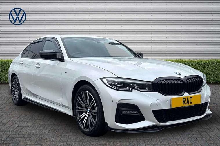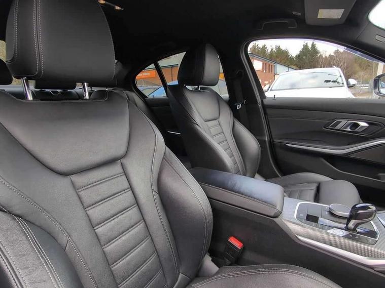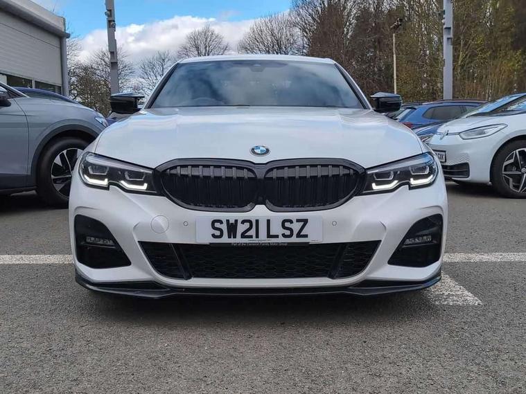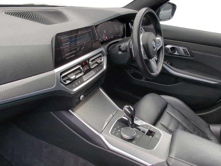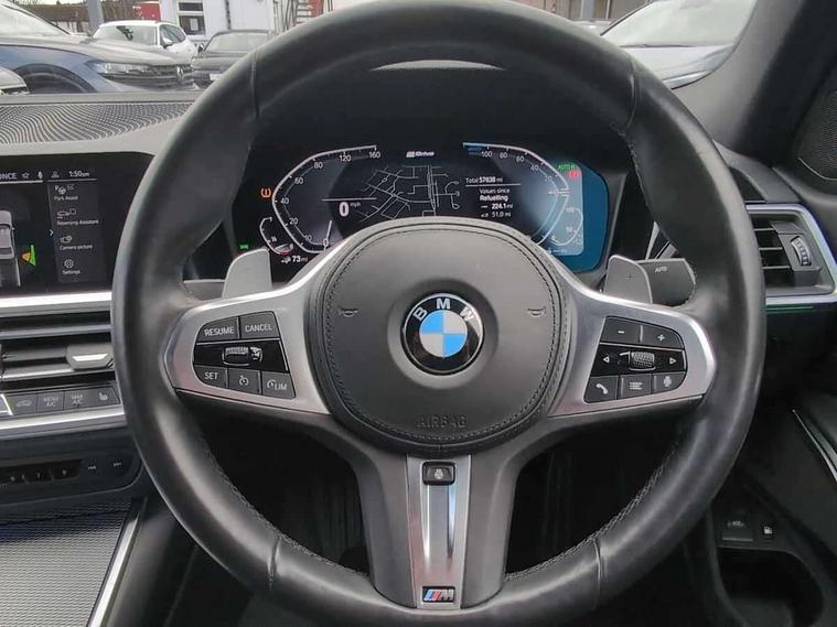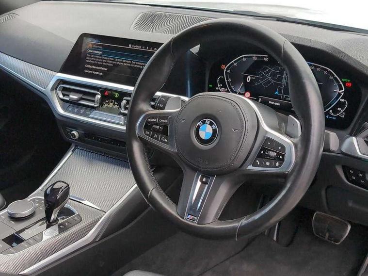 Active guard plus, Attentiveness assist, Auto start-stop, BMW Live Cockpit Professional Nav with 12.3" instrument display + 10.25" display, Intelligent Voice Assist, BMW OS 7, HDD, 2USB, 4G LTE connect, BMW service history, BMW Teleservices, Brake pad wear indicator in front and rear, Check Control warning system for monitoring of lights and door/luggage compartment open warning, Condition based service, Electric power steering with Servotronic steering optimised at all speed ranges, iDrive controller on centre console, Instrument cluster with speedometer with mph readout, tachometer, fuel gauge and oil temperature gauge, Integrated owners handbook, Oil sensor for level and grade, warning by check control system, On board computer - average speed+fuel consumption, service interval, clock/date, odometer/trip meter, outside temperature display and ice warning, Optimum shift indicator, Personal Profile - automatic lock when driving away selectable, Balanced 50/50 weight distribution, Battery cut-out switch, Drive performance control - ECO PRO, comfort and sport modes, Petrol Particulate Filter, Stroke dependent dampers, DAB tuner, Electronic service booklet, Acoustic glazing, Active airstream chrome frame kidney grille with 8 high gloss black vertical slats, Automatic headlight beam throw control with load dependent regulating reaction, dynamic compensation of braking dive and acceleration squat, Black roof mouldings, Body colour door handles, Body colour front and rear bumpers, Body colour fuel filler flap, Body colour mirror caps with bottom segment in matt black, Dynamic brake lights, Electric windows - front and rear, with open/close fingertip control, anti-trap facility and comfort closing, Exhaust tailpipe - split left and right, Exterior mirrors - electrically folding with anti-dazzle, Fading support, Front and rear bumper system with replaceable deformation elements, Front black door sill finishers with BMW designation, Green tinted heat protection glazing, High gloss shadow line exterior trim, Interior rear view electrochromatic mirror with automatic anti dazzle function, LED daytime running lights, LED front fog lights, Lightweight engineering, M designation on front side panels, left and right, Matt black exterior B pillar, Model designation on right side of tailgate, Rain sensor with automatic headlight activation, Shark fin antenna, Two part LED tailights in L-shape with components in smoked glass, brake light, LED turn indicator and rear fog light, Visible VIN plate, Welcome lights in interior and door handle area, Windscreen wipers with integrated washing jets, xDrive designation on left tailgate, 12V power socket in front storage compartment, 2 front cupholder in centre console with clamping elements and matt black inlay, 3 rear seats with non folding headrests with 3 point seat belts, 3 zone automatic air conditioning, 4 pieces lashing eyelets in luggage compartment, 40:20:40 split folding rear seat with loading system, Ambient lighting with welcome carpet light, Anthracite headlining, Armrest integrated in front and rear door trim + front centre console armrest, Centred top Luggage compartment lights, Four grab handles integrated in roof lining, Front and rear door exit lighting (left / right), Front and rear door pockets, Front and rear reading lights, Front and rear velour floor mats, Front head restraints, Front sport seats, Heated driver and front passenger seats, Height adjustable mechanically and infinitely variable steering column, Illuminated armrest storage compartment, Illuminated glove compartment with separate small compartment, Interior lighting - front centre over interior mirror with soft light, rear centre and front and rear footwell lighting, M sport leather steering wheel, Make-up mirror lights, Rear centre armrest with 2 cupholders, Rear centre console with storage compartment and ventilation grille, Sunvisors with vanity mirrors and ticket pocket, Toolkit located in luggage compartment, Connected pack professional - 3 Series Saloon/Touring, M sport exterior styling pack - 3 Series Saloon/Touring, 2 tone horn, BMW emergency call, Brake energy regeneration, Braking pre-tensioning, Child proof locking system in rear door, Child seat ISOFIX attachment rear outer seats, Coasting in idle in ECO PRO mode, Crash sensor activating of airbags, Unlocking doors, hazard warning lights, fuel cut off, interior lighting+activation of safety battery terminal clamp, Driver and front passenger side airbags, integrated in the door side seat backrest bolsters for all seat variants, Driver/Front Passenger airbags, Dry braking, Dynamic brake control, Dynamic stability control + (DSC+) - Anti-lock Braking System (ABS) with brake assist and cornering brake control + Automatic Stability Control (ASC), Dynamic Traction Control - DTC, Electromechanical parking brake including automatic hold function and automatic release of the parking brake when pulling away, Electronic differential lock control (EDLC), Front passenger manual airbag deactivation, Head airbags for all 4 outer seats, Hill start assist, Seat belt security check for driver and front passenger, Side impact protection, Three 3 point seat belts on all seats including front belt stopper, pyrotechnic belt tensioners and belt force limiters, Tyre pressure monitoring with three level warning strategy, Ventilated front and rear disc brakes, Warning triangle and first aid kit, Alarm system (Thatcham 1) with remote control and electronic engine immobiliser, Central locking switch for all doors, fuel filler cap and luggage compartment, Remote control with integrated key one button open/close vehicle and windows, sole opening of the luggage compartment lid and panic mode, Start/stop button with Comfort Go keyless engine start and auto Start/stop deactivation button, Vehicle key with M specific designation, Reduced rolling resistance tyres,