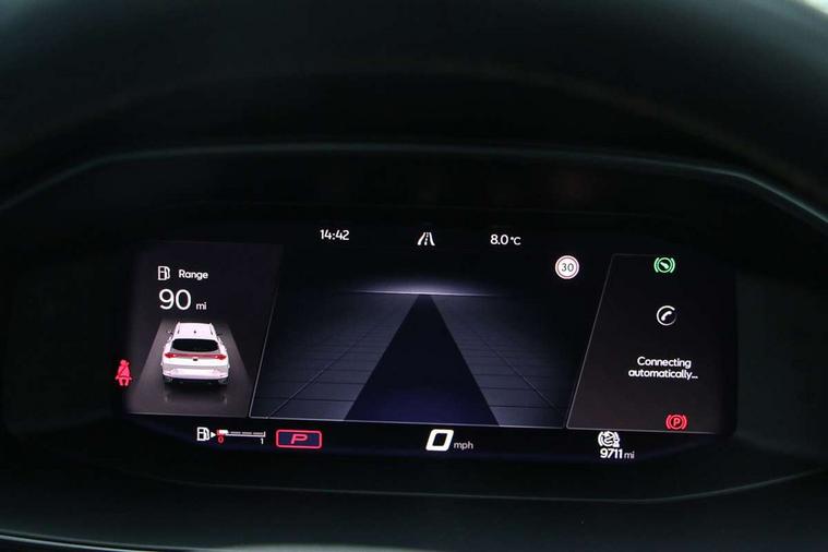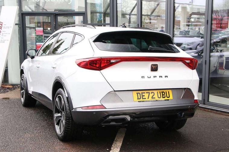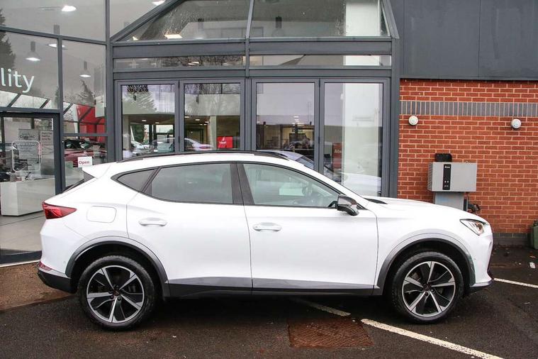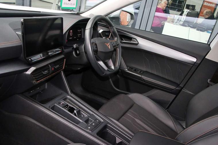Digital cockpit and configurable dashboard, Driver alert system, Driving profile selection, E-call, Forward collision warning with automatic braking, Lane assist, Navigation system with 12'' Touchscreen Display, PAS, Predictive adaptive cruise control with speed limiter, Rear parking sensors, RPM, trip computer, outside temp gauge, instrument light brightness, low fuel warning light, lights on reminder, gearshift indicator, Service interval indicator, Start/stop system with regenerative braking, Voice control system, Wireless apple carplay, Wireless phone charger, Electronic locking differential and dynamic traction support, Standard suspension, 2 front and 2 rear USB type C sockets, Auxiliary input socket, DAB radio, Auto dimming rear view mirror, Body colour door handles, Body coloured bumpers, Dark grey wing mirror, Daytime running light with automatic headlight control and coming home feature, Dynamic headlight range control, Electric front/rear windows, Electrically adjustable, heated and folding door mirrors, Front fog lamps with cornering function, Gloss black roof rails and window surrounds, LED Headlights, LED Taillights with dynamic indicator, Rain sensing wipers, Rear diffuser with black simulated exhaust pipes, Rear side wing doors, Rear wash/wipe, Third brake light, Tinted rear windows, Welcome lights, 12v power supply in centre console, 12V socket, 12v socket in loadspace, 2 front and 2 rear reading lights, 230V socket, 3 seat bench in 2nd row, 60/40 split rear bench seat with armrest and mechanical seat release, Dust/pollen filter, Front and rear head restraints, Front centre armrest, Height/reach adjust steering wheel, Illuminated interior front door sills, Illuminated sunvisor with mirror, Interior ambient lighting, Isofix, Leather multi function heated steering wheel with gear shift paddles, Luggage tie-down hooks, Manually adjustable height and lumbar support for front seats, PVC/Cloth upholstery with copper stitching + Sport seats, Single front passenger seat, Three zone climate control with control panel in rear, Variable luggage/load compartment floor, Safety and driving pack (M) - Formentor, 3 point seatbelts on all rear seats, ABS, Brake control system - ESC and brake booster, Child proof door locks, Driver and front passenger airbags with front passenger airbag de-activation, Electronic parking brake, Front and rear disc brakes, Front side curtain airbags, Hill hold control, Seat belt reminder for front and rear seats, Tyre pressure monitoring system, Anti theft alarm system, Keyless entry and start system (KESSY), Locking wheel bolts, Copper and aluminium interior detailing,
