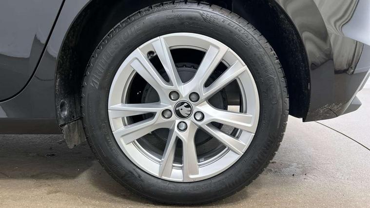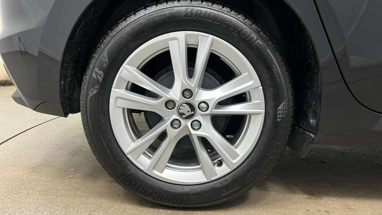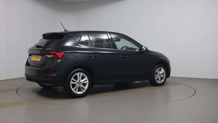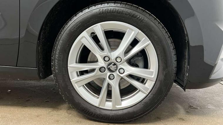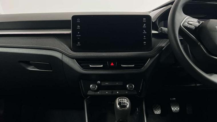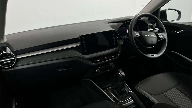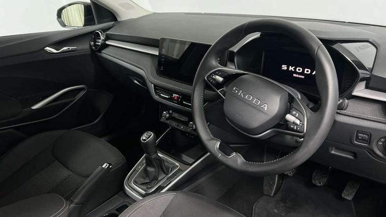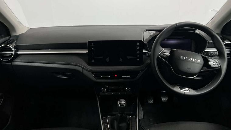 Advanced driver attention and drowsiness monitor, Bluetooth connection, Driver alert system, Electromechanical power steering, Exterior temperature gauge, Service interval indicator, Traffic sign recognition, Virtual cockpit with 10.25" colour display, Wireless SmartLink for Apple CarPlay and Android Auto, 6 Speakers (4 in front and 2 in rear), 9.2" colour display skoda navigation system with voice control and web radio, Auxiliary socket for external MP3 player, DAB digital radio reception, Auto dimming rear view mirror, Body colour door mirrors, Body coloured bumpers, Chrome window surround, Door mirror integrated indicators, Front and rear electric windows, Front window wiper intermittent control, Headlight range control - Automatic, Ice scraper in fuel cap, LED 3rd brake light, LED daytime running lights with coming and leaving home feature, LED rear lights, Privacy glass, Rear LED fog light, Rear side wing doors, Rear window wiper with washing nozzles, Roof mounted spoiler, SKODA tailgate lettering in chrome, Unique dark chrome design logo on alloy wheels, 2 LED reading lights in front and rear, 3 rear headrests, Backrest split and folding, Central console with fixed cup holder and storage box, Chrome handbrake release button, Comfort seats, Door sills with fabia badging, Dual zone air conditioning with climatronic electronic control, Fabric upholstery, Front centre armrest, Gearshift knob/handle in leather, Grain satin black interior door handles, Hand brake lever handle in leather, Height adjustable front headrests, Height adjustable front seats, Height adjustable steering wheel, ISOFIX and TopTether anchorage points to the outer rear seats, ISOFIX and TopTether on the front passenger seat, Luggage compartment lighting, Manually adjustable lumbar support in front seats, Pollen filter, Rear seat bench unsplit, Single front passenger seat, Skoda lettering on steering wheel, Storm grey headlining, Sun visors with mirror and airbag label on passenger side, Textile floor mats, Ticket holder, Umbrella in drivers door, Ambient lighting pack - Fabia Hatchback, 3-point height adjustable front seats belts with pretensioner and force limiter, Automatic warning lights in case of crash, Driver and passengers airbag with switch off function, e-Call+, ESC including ABS, MSR, ASR, EDS, HBA and XDS, Front and rear seat belt warning, FRONT ASSIST (AEB City and AEB Inter Urban), Front side airbags, Head airbags, One tone horn, Pedestrian protection, Three rear 3-points safety seat belts with pretensioner and force limiter including stop function for outer rear seat belts, Tyre pressure monitoring system, Anti-theft alarm system including immobiliser, interior monitoring, backup horn, and towing protection, Central locking with radio remote control, interior controls, SAFE function and 2 foldable keys, Chrome edged air vents, Grain satin black central console cover, Metallic grey upper decorative trim, Satin black door and side trim panel in front, Textile microsuede grey lower decorative trim with art grey stitching, Anti-theft wheel bolts protection, Super-low rolling resistance tyres,