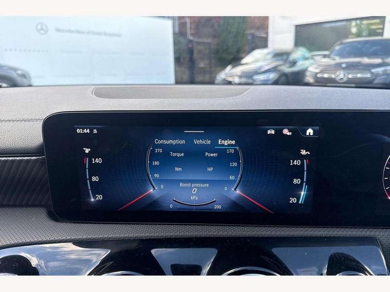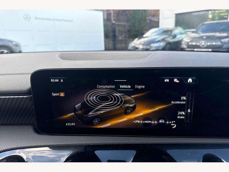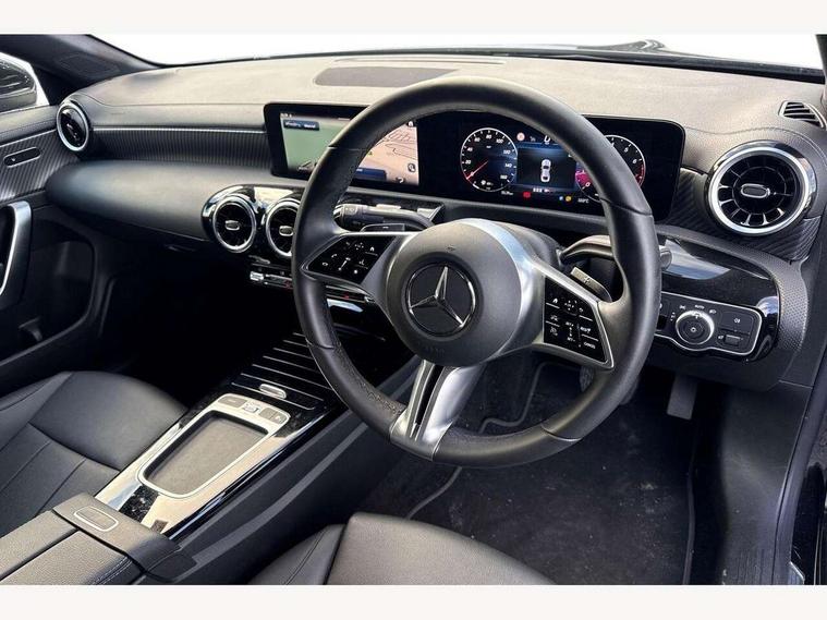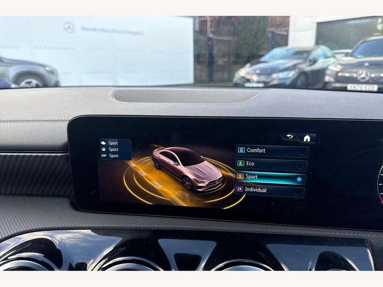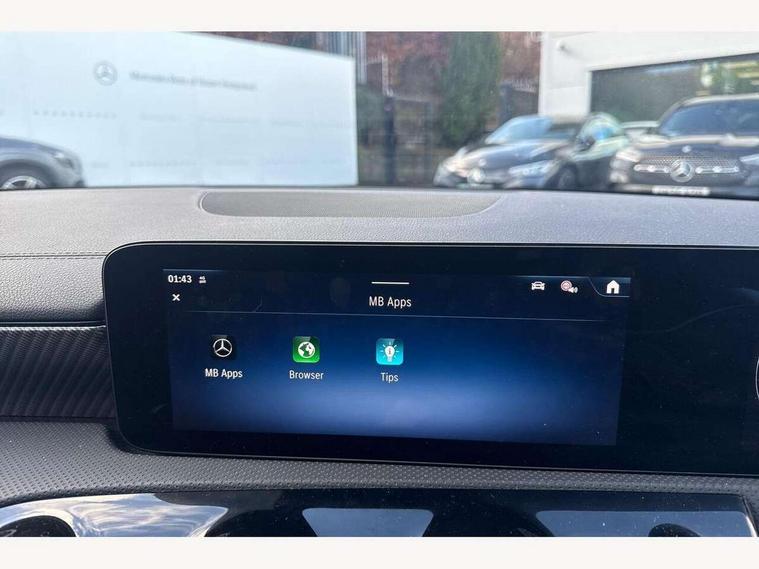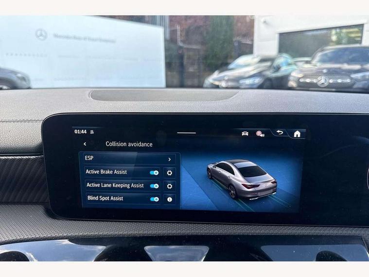 10.25 inch Instrument display with digital cockpit, 10.25 inch touchscreen central media display, Active lane keeping assist, Attention assist - Monitors steering behaviour and long journey fatigue, Blind spot assist, Bluetooth connection, Car wash mode, Cruise control with limiter, Direct steer system, DYNAMIC SELECT with a choice of driving modes (ECO, Comfort, Sport and Individual), ECO start/stop function, Fluid level warning indicator for fuel, oil, coolant and washer fluid, Hard-disk navigation, Hey Mercedes Voice activation, Lamp failure indicator, Mercedes me connect including emergency call system, accident recovery, breakdown and maintenance management, Mercedes me remote services, Outside temperature gauge, Owners manual in English, Pre-installation of private car share, Radio aerial integrated into front and rear windshields, Service indicator (ASSYST), Smartphone integration with Apple CarPlay and Android auto, Speed limit assist, Trip computer in multifunction display with current consumption indicator, Comfort suspension, Rear axle multi-link, DAB digital radio tuner, MBUX multimedia system, Mercedes Benz sound system (100 W) with 6 speakers, Pre installation for Mercedes Benz Link, Adaptive brake lights, Body colour door handles (Chrome insert with Keyless entry), Chrome beltline strips, Electric windows, Electrically adjustable and heated door mirrors with integrated LED indicators, Exhaust system with 2 Visible tailpipe trim elements and rear apron with trim in chrome, Headlamp assist automatic headlamp activation, Heated glass rear windscreen + timer control, High level LED third brake light, Interior mirror with black reading lamps and frameless, LED high performance headlamps with integrated LED daytime running lights and adaptive highbeam assist, LED tail lamp, Privacy glass with dark tinting on rear side windows and rear window, Progressive body-styling - Front apron with trim strip in chrome, visible tailpipe trim elements and rear apron with trim strip in chrome, Radiator grille with Mercedes-Benz pattern in high-gloss black and central Mercedes star, single louvre in matt grey with chrome inserts, Rain sensing windscreen wipers with two sensitivity settings, Rear boot, Rear fog lamp, Rear side wing doors, Variable front intermittent wipers, Window line trim strip in chrome, 3 seat bench in 2nd row, 3 spoke ARTICO man made leather multi function sports steering wheel with black grained gearshift paddles, oeration via touch control panels, 4 way lumbar support, 40:20:40 split folding rear seat backrests, Air conditioning - One zone THERMATIC automatic climate control with automatically controlled air distribution, Air vents with surround in silver chrome, Artico man-made leather upholstery, Automatic child seat recognition sensor, Black roof lining, Brushed stainless steel sports pedals with rubber studs, Comfort seats, Fluorescent jacket, Front centre armrest with stowage, Front head restraints, Heated front seats, Luggage net on driver/front passenger seat backrest, Manually height and reach adjustable steering column, Rear head restraints, Single front passenger seat, Stowage compartment in centre console with retractable cover, Sunvisors with illuminated vanity mirrors, Twin front cupholders, Two outer rear seat isofix and top tether child seat fixing points, Velour floor mats, Light and sight pack - CLA, Mirror pack - CLA, Parking pack with reversing camera - CLA, Seat comfort pack - CLA, USB package plus - CLA, Active bonnet pedestrain safety measure which detects an impact and raises bonnet by 65mm, Active brake assist includes forward collision warning system with autonomous braking, Adaptive brake assist with hold function and hill start assist, Anti lock braking system (ABS) with brake assist, Black seat belts, Bonnet with power domes, Brake pad wear warning indicator, Childproof locks manually operated for rear doors and electrically operated for rear power windows, Crash responsive emergency lighting, Driver and front passenger head and sidebags, Driver and front passenger windowbags, Drivers knee airbag, Dual stage driver and front passenger airbags, Electric parking brake, Electronic stability programme with acceleration skid control, ESP curve dynamic assist, Front and rear seatbelt reminder, Front passenger seat occupancy sensor, Three point rear seat belts, Tyre pressure monitoring system, Warning triangle and first aid kit, Alarm system with immobiliser and interior protection -Thatcham category 1, Guard 360 deg vehicle protection - tow away protection with visual, acoustic warning, interior monitoring, preinstallation for parking damage, Remote central locking and crash sensor with emergency opening function, Dark carbon fibre look trim, 18" multi-spoke himalayas grey painted light alloy wheels with high sheen rim finish, Summer tyres, Tirefit tyre sealant kit,