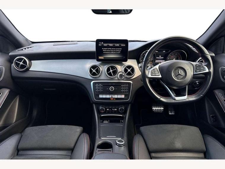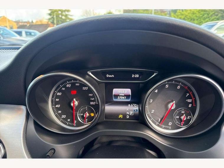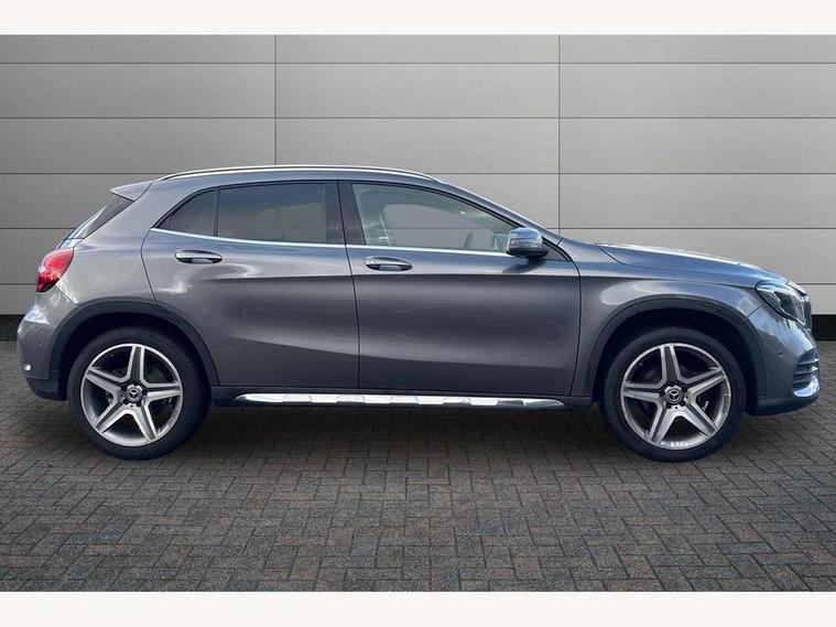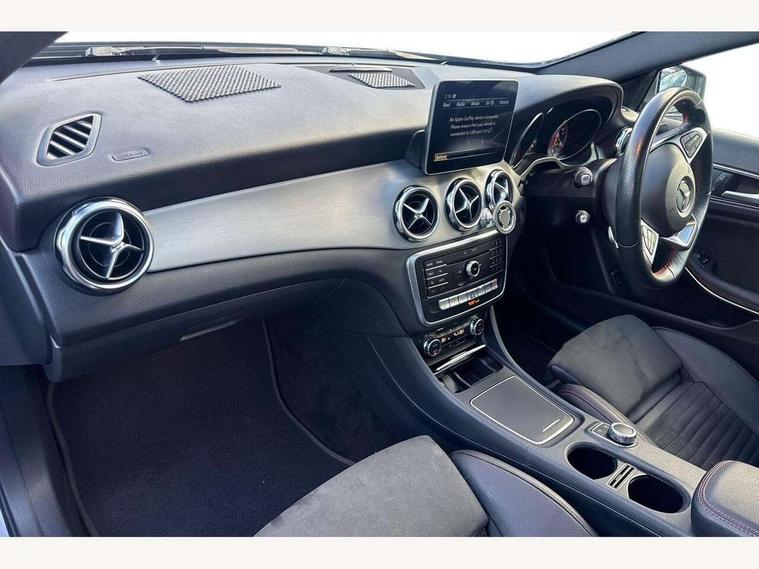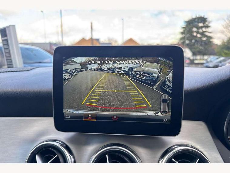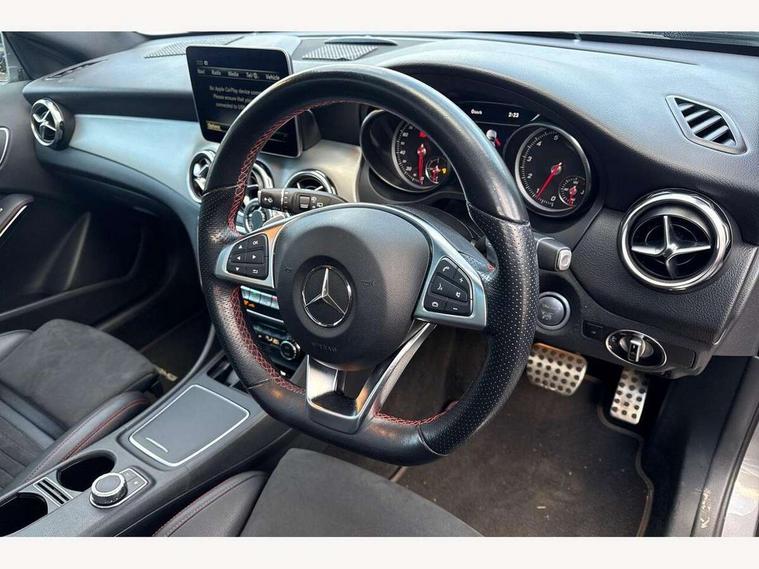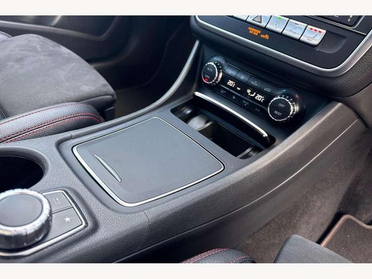 180 degree reversing camera with parking guidelines, 4 analogue dials and needles suspended in six o'clock position, Attention assist, DYNAMIC SELECT with a choice of driving modes (ECO, Comfort, Sport and Individual), Easy-pack tailgate - Powered opening/closing automatically, ECO start/stop function, Fluid level warning indicator for fuel, oil, coolant and washer fluid, Instrument cluster, Mercedes me connect including emergency call system, accident recovery, breakdown and maintenance management, Multi function trip computer, Outside temperature gauge, Parking pilot with front and rear parking sensor and steering assist, Service indicator (ASSYST), Smartphone integration with Apple CarPlay and Android auto, Sports speed sensitive direct steer system with servo assistance, Off road comfort suspension, 8" media display touchpad, Audio 20 radio/single CD/MP3, 6 speakers, telephone keypad, twin radio tuner, Bluetooth, 2 USB ports, SD card slot and Garmin Map pilot nav system, Media interface, Adaptive brake lights, Automatic headlamp activation, Body colour door handles with chrome inserts, Body coloured bumper with front and rear apron trim in matt titanium grey, Chrome beltline strips, Electric front windows, Electrically adjustable and heated door mirrors, Front door sills with Mercedes-Benz lettering, Front fog lights, Full LED tail lamps, Heat insulating dark tinted privacy glass from the B-pillar backwards, Heated glass rear windscreen + timer control, LED High performance headlamps with adaptive highbeam assist, LED third brake light, Panoramic sliding sunroof, Rain sensor windscreen wipers with two sensitivity stages, Rear windscreen intermittent wiper with automatic activation when reversing, Roof mounted radio aerial, Two pipe visible exhaust system with chrome tailpipe tips, 1/3 to 2/3 split folding rear seats, 12 colour Ambient lighting, 12V power socket in centre console, 12V socket in luggage compartment, 3 spoke and 12 button flattened bottom multifunction steering wheel trimmed in nappa leather with perforated leather grip area, Air conditioning - Two zone thermotronic luxury automatic climate control with display, Air vents with chrome surround and cruciform nozzles, Ambient lighting in front headrests, AMG brushed stainless steel sports pedals with rubber studs, AMG floor mats with AMG lettering and stiched edging, Artico man-made leather/Microfibre Dinamica upholstery with red contrast stitching, Auto Mercedes-Benz child seat recognition sensor, Black roof lining, Electrically adjustable front memory seats with four way lumbar support, Front centre armrest with stowage, Front footwell lights, Front seat cushion length adjustment, Gearshift paddles, Heated front seats, Illuminated door sills, Illuminated glove compartment stowage, Interior door handle illumination, Luggage compartment cover, Manually height and reach adjustable steering column, Rear footwell lights, Rear Reading Lamps, Sports seats with integrated head restraints, Stowage compartment beneath load compartment floor, Stowage compartment lighting, Sunvisors with illuminated vanity mirrors, Twin front cup holders, Two outer rear seat isofix and top tether child seat fixing points, White courtesy and red warning lights in front doors and boot lid, Comfort seat pack - GLA Class, Keyless go comfort pack - GLA Class, Mirror pack - GLA Class, 3 rear three point seatbelts, Active bonnet pedestrain safety measure which detects an impact and raises bonnet by 65mm, Active brake assist, Adaptive brake assist with hold function and hill start assist, Anti-lock braking system (ABS), Black seat belts, Childproof locks manually operated for rear doors and electrically operated for rear power windows, Crash responsive emergency lighting, Drivers knee airbag, Dual stage driver and front passenger airbags, Electronic parking brake, Electronic stability programme with acceleration skid control, Front and rear seatbelt reminder, Front passenger seat occupancy sensor, Front side airbags, Tyre pressure monitoring system, Warning triangle and first aid kit, Window airbags, Anti-theft alarm system/interior protection with tow-away protection and interior monitoring systems, Chrome surround in electric key, Remote central locking, Light aluminium with longitudinal grain interior trim, Run flat tyres,