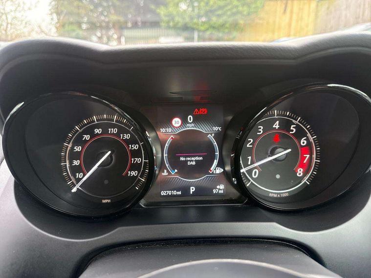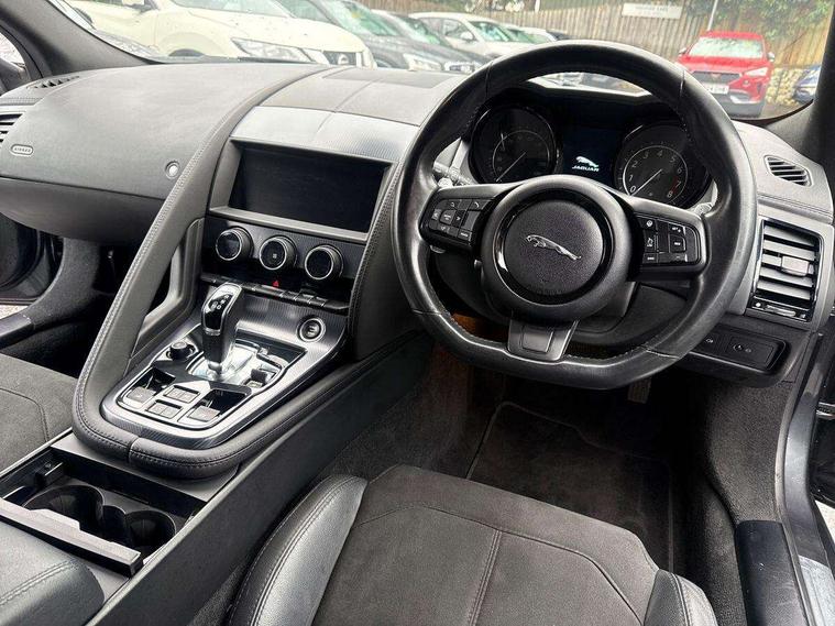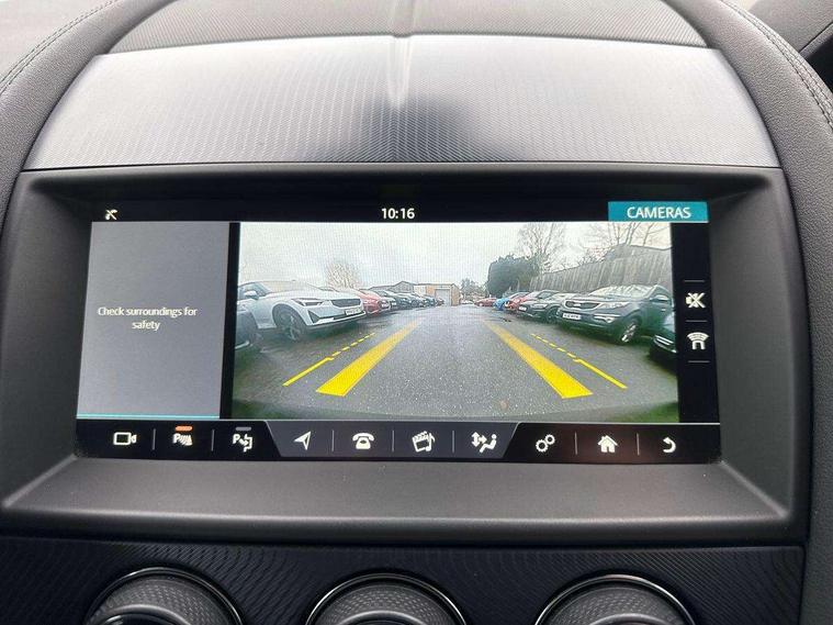 10" touch screen, Bluetooth telephone connectivity, Cruise control + speed limiter, Driver monitoring system, InControl remote premium, Lane departure warning system, Lane keep assist, Navigation system, PAS, Rear parking aid, Trip computer, Sports suspension, Audio remote control, DAB Digital radio, InControl app, InControl protect, USB/aux input socket, Adaptive LED headlights with LED signature daytime running lights, Auto dimming rear view mirror, Automatic headlights, Body colour deployable rear spoiler, Body coloured bumpers, Chrome exhaust tailpipe, Electric front windows, Headlight washers, Infra red reflective glass, LED tail lights, Rain sensor windscreen wipers, Satin black grille, Satin chrome window surround, Switchable active exhaust, Tinted glass, Wind deflector, 12V Accessory socket in centre console, Air vents on dashboard, Cubby box in loadspace, Front centre armrest, Front headrests, Jaguar sense, Lumbar support, Overhead console, Pollen filter, Silver gearshift paddles, Twin front cupholders, ABS + EBD + EBA, Driver/Front Passenger airbags, DSC - Dynamic Stability Control, Dynamic mode, Electronic parking brake, Front/rear seatbelt pre-tensioners, Pass airbag/seat occupancy detector, Passenger airbag off kit, Pedestrian contact sensing and deployable bonnet, Roll over bars in satin chrome, Seatbelt reminder for driver and front passenger, Side airbags, Torque vectoring brake, Tyre pressure monitoring system, Deadlocks, Drive away door locking, Engine immobiliser, Keyless start, Locking wheel nuts, Perimetric and volumetric anti theft alarm, Remote central locking, Two stage unlocking, Valet mode, Graphite interior trim,