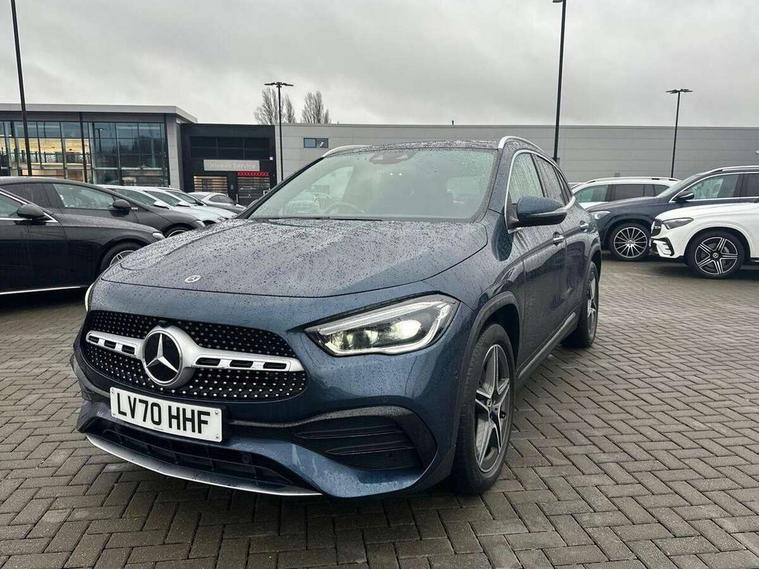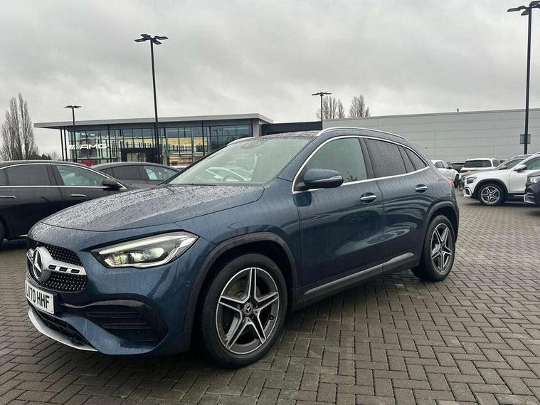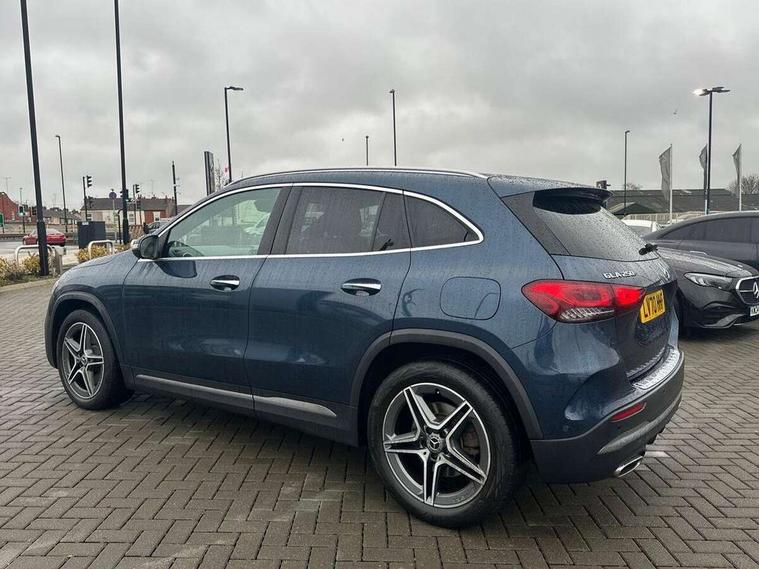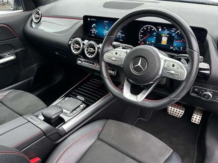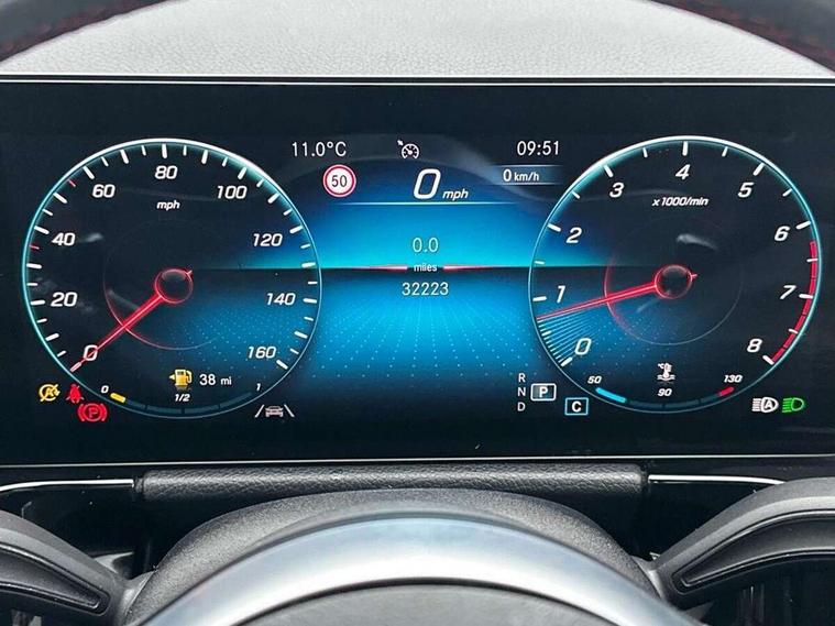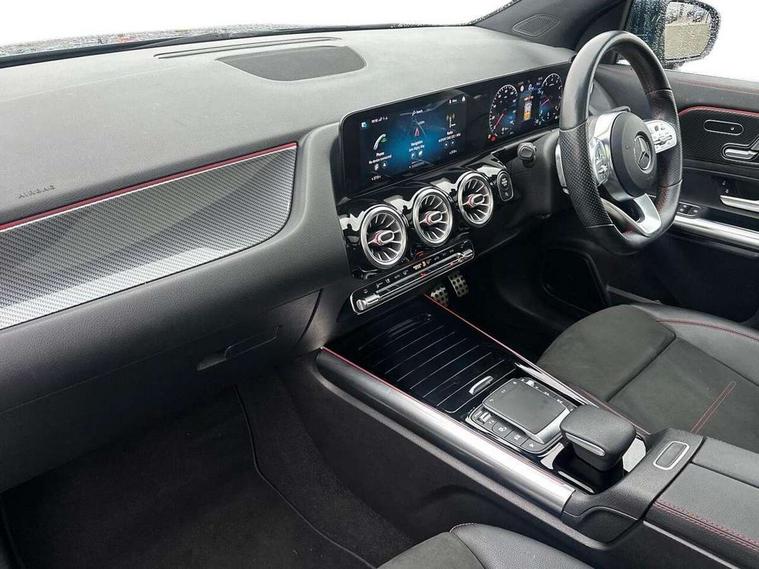 10.25 inch touchscreen central media display, 10.25" Digital instrument cluster display screen, Active lane keeping assist, Attention assist, Augmented reality navigation, Direct steering, DYNAMIC SELECT with a choice of driving modes (ECO, Comfort, Sport, Sport+ and Individual), Easy-pack tailgate, ECO start/stop function, Fluid level warning indicator for fuel, oil, coolant and washer fluid, Hard-disk navigation, Hey Mercedes Voice activation, Lamp failure indicator, Mercedes me connect including emergency call system, accident recovery, breakdown management and maintenance, Multi function trip computer, Outside temperature gauge, Owners manual and service booklet in English, Pre-installation for Vehicle Monitoring, Pre-installation for Vehicle set up, Pre-installation of private car share, Radio aerial integrated into front and rear windshields, Service indicator (ASSYST), Smartphone integration with Apple CarPlay and Android auto, Status display for rear seat belts in instrument cluster, Traffic sign assist, Wireless charging, Lowered comfort suspension, Rear axle multi-link, 2 USB ports (type C) in rear stowage compartment and one in front of center console, Bluetooth connectivity including audio streaming, DAB Digital radio, MBUX multimedia system with DAB digital radio and touchpad including satellite navigation, Media interface, Mercedes-Benz advanced sound system - 225W, Adaptive brake lights, Aerial for GPS, Aluminium roof rails, AMG front and rear apron, AMG specific/dual flow exhaust pipes in chrome (non-functional), Automatic headlamp activation, Beltline strips and weather strip in chrome, Black grained claddings with chrome parts, Body colour bumpers, Body colour door mirrors, Body coloured door handles with chrome insert for keyless entry, Car wash function, Dark privacy glass from B-pillar backwards, Electric front windows, Electric rear windows, Electrically adjustable and heated door mirrors with integrated LED indicators, Heated glass rear windscreen + timer control, Heated windscreen wash system, Interior mirror with black reading lamps and frameless, LED tail lights in two piece design, LED third brake light, Matt titanium grey front and rear apron trim, Multibeam LED headlamps with adaptive highbeam assist plus, Panoramic sunroof, Pre-installation for trailer coupling, Rain sensor windscreen wipers, Rear fog lights, Roof spoiler, Single lamella raditor grille with chrome dotted diamond grille and inlay, 12V power socket in centre console, 3 spoke multifunction sports steering wheel in nappa leather with flattened bottom and perforated grip area, 40:20:40 split folding rear seats with backrest, Adjustable head restraints, Air conditioning - Two zone thermotronic luxury automatic climate control with display, Ambient lighting in front headrests, AMG floor mats with AMG lettering and stiched edging, Artico man-made leather/Microfibre Dinamica upholstery with red contrast stitching, Auto Mercedes-Benz child seat recognition sensor, Black roof lining, Brushed door pulls in silver chrome, Courtesy light in boot, Electrically adjustable front memory seats with four way lumbar support, Front centre armrest with stowage, Galvanished gear shift paddles on steering wheel, Heated front seats, Illuminated door sills, Illuminated glovebox, Interior lighting - 64 colour Ambient lighting, Leather trimmed gearknob, Luggage net on driver/front passenger seat backrest, Manually height and reach adjustable steering column, Multi-gesture touchpad control on center console, Net in front passenger footwell, Seat cushion angle adjustment, Seat cushion depth adjustment for improved seating, Sports pedals in brushed stainless steel with black rubber studs, Sports seats, Stowage compartment in centre console, Stowage compartment with retractable cover, Sunvisors with illuminated vanity mirrors, Twin front cup holders, Two outer rear seat isofix and top tether child seat fixing points, AMG body styling pack - GLA, Interior lighting with light and sight pack - GLA, Load compartment pack - GLA, Mirror pack - GLA Class, Parking pack - GLA, 3 rear 3 point seatbelts, ABS with Brake Assist, Active bonnet pedestrain safety measure which detects an impact and raises bonnet by 65mm, Active brake assist includes forward collision warning system with autonomous braking, Adaptive brake assist with hold function and hill start assist, Bonnet with power domes, Brake pad wear warning indicator, Childproof locks manually operated for rear doors and electrically operated for rear power windows, Crash responsive emergency lighting, Driver and passenger head and side airbags, Drivers knee airbag, Dual stage driver/passenger airbags, Electronic parking brake, ESP curve dynamic assist, ESP with ASR, Front and rear seatbelt reminder, Front brake callipers with Mercedes Benz logo lettering on front, Front passenger seat occupancy sensor, Internally ventilated brakes with perforated brake discs at the front, Tyre pressure monitoring system, Warning triangle and first aid kit, Window airbags, Alarm system with immobiliser and interior protection -Thatcham category 1, Keyless go lock/unlock, Keyless Go starting function, Remote central locking and crash sensor with emergency opening function, Vehicle key with decorative surround in chrome, Carbon structure trim, Chrome air vent surrounds, 19" AMG 5 twin spoke light alloy wheels aerodynamically optimised painted in tantalite grey with a high sheen finish, Summer tyres, Tirefit tyre sealant kit,