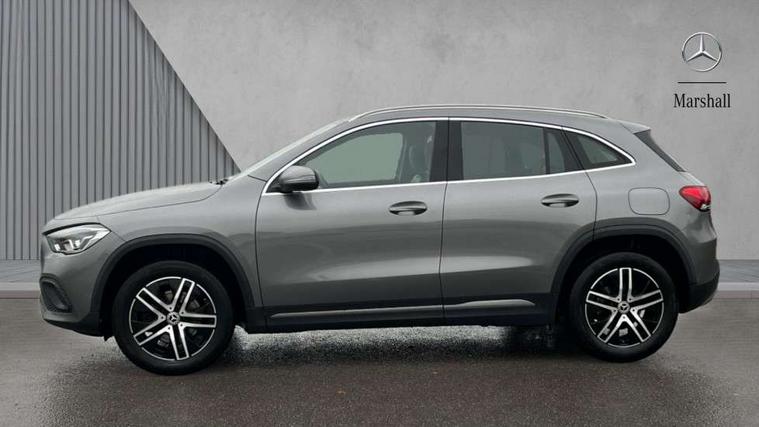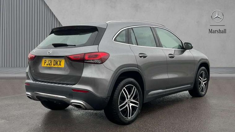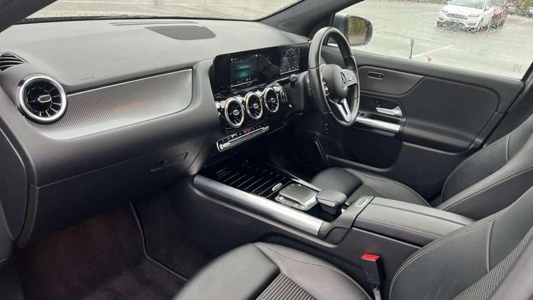 180 degree reversing camera with parking guidelines, 7 inch digital instrument cluster display, 7" touchscreen media display, Active lane keeping assist, Attention assist, Cruise control + speed limiter, DYNAMIC SELECT with a choice of driving modes (ECO, Comfort, Sport and Individual), Easy-pack tailgate, ECO start/stop function, Fluid level warning indicator for fuel, oil, coolant and washer fluid, Hard-disk navigation, Hey Mercedes Voice activation, Lamp failure indicator, Mercedes me connect including emergency call system, accident recovery, breakdown management and maintenance, Mercedes me remote services, Multi function trip computer, Outside temperature gauge, Owners manual and service booklet in English, Pre-installation of private car share, Radio aerial integrated into front and rear windshields, Service indicator (ASSYST), Speed limit assist, Speed sensitive power steering, Status display for rear seat belts in instrument cluster, Comfort suspension, Rear axle multi-link, 2 USB ports (type C) in rear stowage compartment and one in front of center console, Bluetooth connectivity including audio streaming, DAB Digital radio, MBUX multimedia system, Media interface, Mercedes-Benz sound system - 100W, Adaptive brake lights, Aerial for GPS, Aluminium roof rails, Automatic headlamp activation, Beltline strips and weather strip in chrome, Black grained claddings with chrome parts, Body colour bumpers, Body colour door handles, Body colour door mirrors, Car wash function, Dark chrome front and rear apron trim, Electric front windows, Electric rear windows, Electrically adjustable and heated door mirrors with integrated LED indicators, Exhaust system with dual flow exhaust pipes (non-functional), Front bumper with underride guard in high gloss chrome, Front door sills with Mercedes-Benz lettering, Heated glass rear windscreen + timer control, Heated windscreen wash system, Interior mirror with black reading lamps and frameless, LED high performance headlamps with integrated LED daytime running lights, LED tail lights in two piece design, LED third brake light, Rain sensor windscreen wipers, Rear fog lights, Roof spoiler, Simulated body styling underguard in matt chrome, Single lamella radiator grille painted in silver matt with chrome inlay and black dots, 12V power socket in centre console, 3 spoke leather multifunction sports steering wheel, 40:20:40 split folding rear seats with backrest, Adjustable head restraints, Air conditioning - Two zone thermotronic luxury automatic climate control with display, Artico man-made leather/Fleron fabric upholstery, Auto Mercedes-Benz child seat recognition sensor, Black roof lining, Comfort seats, Courtesy light in boot, Floor mats in velour, Front centre armrest with stowage, Gearshift paddles, Heated front seats, Illuminated glovebox, Leather trimmed gearknob, Luggage net on driver/front passenger seat backrest, Manually height and reach adjustable steering column, Multi-gesture touchpad control on center console, Stowage compartment in centre console, Stowage compartment with retractable cover, Sunvisors with illuminated vanity mirrors, Twin front cup holders, Two outer rear seat isofix and top tether child seat fixing points, Comfort seat pack - GLA Class Sport, Interior lighting with light and sight pack - GLA, Load compartment pack - GLA, 3 rear 3 point seatbelts, ABS with Brake Assist, Active bonnet pedestrain safety measure which detects an impact and raises bonnet by 65mm, Active brake assist includes forward collision warning system with autonomous braking, Adaptive brake assist with hold function and hill start assist, Bonnet with power domes, Brake pad wear warning indicator, Childproof locks manually operated for rear doors and electrically operated for rear power windows, Crash responsive emergency lighting, Driver and passenger head and side airbags, Drivers knee airbag, Dual stage driver/passenger airbags, Electronic parking brake, ESP curve dynamic assist, ESP with ASR, Front and rear seatbelt reminder, Front passenger seat occupancy sensor, Tyre pressure monitoring system, Warning triangle and first aid kit, Window airbags, Alarm system with immobiliser and interior protection -Thatcham category 1, Keyless Go starting function, Remote central locking and crash sensor with emergency opening function, Urban guard vehicle protection, Vehicle key with decorative surround in chrome, Chrome air vent surrounds, Spiral look trim, 18" 5 twin spoke light alloy wheels aerodynamically optimised painted in black with a high sheen finish, Summer tyres, Tirefit tyre sealant kit,
