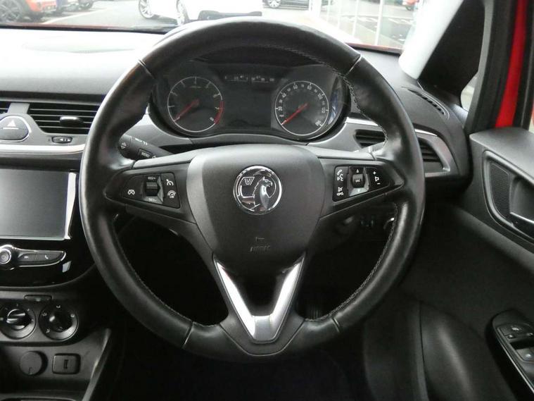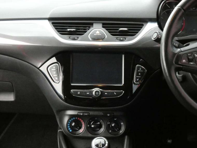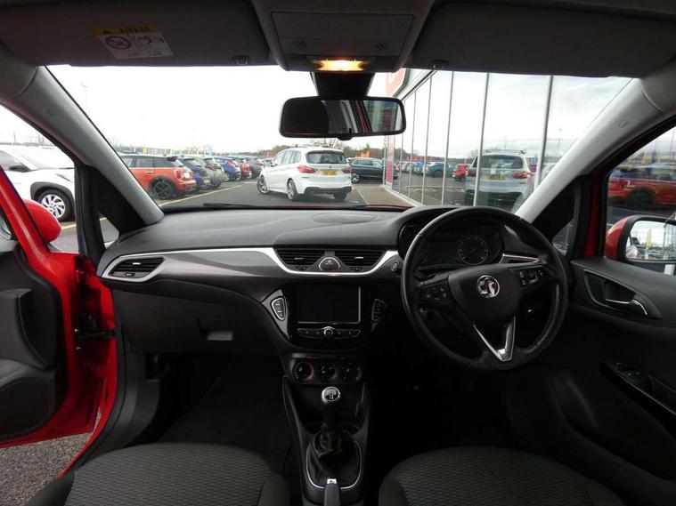 Apple car play/Android Auto, Bluetooth system, Cruise control + speed limiter, Exterior temperature gauge, Lights on warning, Low fuel level warning light, Multi function display, Rev counter, Service indicator, Speed sensitive power steering, Speed warning indicator, Trip computer, 6 speakers, Bluetooth audio streaming, DAB digital radio module, USB connection, Black fog light surrounds, Body colour bumpers, Body colour door handles, Body coloured door mirrors, Chrome front grille, Coming home function, Electric adjustable door mirrors, Electric front windows/one touch facility, Headlamp levelling, Heated door mirrors, Heated rear window, Heated windscreen, Laminated windscreen, LED daytime running lights, Rear wiper, Two speed windscreen wipers, 12V power outlet, 2 height adjustable rear headrests, Air recirculation system, Centre console with cupholders, Chrome gear knob, Chrome interior door handles, Delay courtesy light function, Driver/passenger reading lights, Driver/passenger sunvisors and vanity mirrors, Easy entry reclining front seats with memory, Electric reach + rake adjustable steering column, Front door pockets, Front seat belt pre-tensioners with load limiters, Glovebox, Grab handles, Height adjustable driver's seat, Height adjustable front headrests, Illuminated luggage compartment, ISOFIX on outer rear seats, Load restraining lashing points, Luggage compartment cover, Mora seat cloth upholstery, Multi function steering wheel, Pollen filter, Rear bottle holder, Reclining front seats, Winter pack - Corsa, ABS + EBD + EBA, Brake assist function, Driver/passenger 2 stage auto adaptive airbags, ESP + traction control, Front and rear curtain airbags, Front and rear seatbelt reminder, Front seat side impact airbags, Height adjustable front seatbelts, Hill start assist, Manual passenger airbag deactivation function, Side impact protection beams, Three 3 point rear seatbelts, Tyre pressure monitoring system, Deadlocks, Immobiliser, Key left in ignition audible warning, Locking wheel bolts, Radio frequency remote central locking, Rhutenium facia with chrome effect inserts, 16" Silver alloy wheels - Style 1,