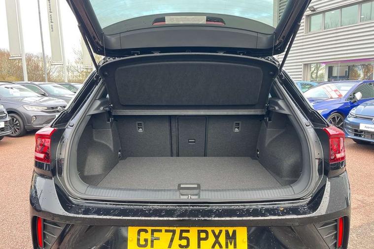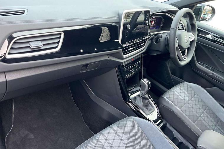 10.25" Digital cockpit pro, Advanced driver attention and drowsiness monitor, Emergency call service, Lane keeping system Lane Assist, Mobile phone interface, Modified key software - reduce switch off time for key status change to Long no motion, Online services, Park assist including front and rear parking sensors, Service interval indicator, Tailgate/trunk lid release from outside, Think blue trainer driver tips and journey analysis, Warning sound and light for front seatbelts unfastened, Wireless app connect, Battery regeneration during braking, Start/stop function with battery regeneration, DAB Digital radio, Diversity antenna for FM reception, Front and rear 6 speakers, Music playback - MP3, WMA and AAC files, Premium USB cable in choice of either Apple or Android smartphone compatibility, SD card slot, Simultaneous pairing of 2 compatible mobile devices, Title and cover art display, We Connect and We Connect Plus functionality, Auto dimming interior rear view mirror, Automatic hazard lights activation under emergency braking, Automatic headlight control with LED separate daytime running lights with coming/leaving home function, Body coloured exterior mirror housings and door handles, Electrically adjustable and heated door mirrors, Extended roof spoiler, Exterior mirrors aspherical on driver side, convex on front passenger side, External USB type C socket and charging sockets, Front windscreen wiper with intermittent wipe and 4 position delay, Heated rear window, LED 3rd brake light, LED rear combination lamps, LED rear number plate lights, Power windows with comfort operation and circuit breaker, Privacy glass for rear side windows and rear window, R-Line design body coloured bumpers, Rain sensor, Rear exhaust tailpipe, Rear fog light on one side and reversing lights on both sides, Rear side wing doors, Rear wash/wipe with intermittent wipe setting, Remote electrically foldable door mirrors, puddle lights and reverse activated passenger's door mirror, 12V power socket in centre console, 3 rear head restraints, 3 seat bench in 2nd row, 4 load lashing points in luggage compartment, Air care climatronic air conditoning system with active combination filter and 2-zone temperature control, Black roof lining, Chrome plated decorative trims, Chrome plated radiator grille inserts, air vent surrounds and light switch surrounds, Door and side trim panel with leatherette insert, Front + rear carpet mats, Front centre armrest, Front cupholders x 2, Front footwell illumination, Front reading light, Front scuff plates with R Line logo, Front seat back storage pockets, Glove compartment door with light, Instrument lighting, white adjustable panel illumination, Interior ambient lighting and surround lighting, Interior light delay, Isofix child seat preparation, Leather gearshift handle, Load-through provision with cup holder when folded down ('Unsplit rear seat bench, split folding backrest, with centre armrest), Luggage compartment lighting, Single front passenger seat, Stainless steel pedals, Storage compartment in left and right luggage area, Storage compartment in rear doors, Storage compartments in driver and front passenger doors, Sunvisors with illuminated vanity mirrors, Variable boot floor, height adjustable and removable, Driver assistance pack without proactive passenger protection - T-Roc, 3 point height adj front seatbelts + pretensioners, 3 point seatbelts in outer rear with ECE label, ABS, Child locks on rear doors, City emergency braking and pedestrian monitoring, Driver and front passenger airbag with front passenger airbag deactivation, Driver and front passenger safety-optimised head restraints, Drivers seatbelt reminder, Electronic parking brake, Electronic Stability Control (ESC) inc EDL (Electronic Differential Lock) and ASR (Traction Control), Front and rear passengers curtain airbag system including front side airbags, Hill start assist, Predictive pedestrian protection, Rear disc brakes, Two tone horn, Tyre pressure loss indicator, Volkswagen roadside assistance, Piano black decorative inserts in dashboard and front door trim panels, Trims for alloy wheels,