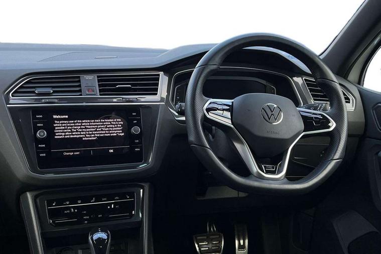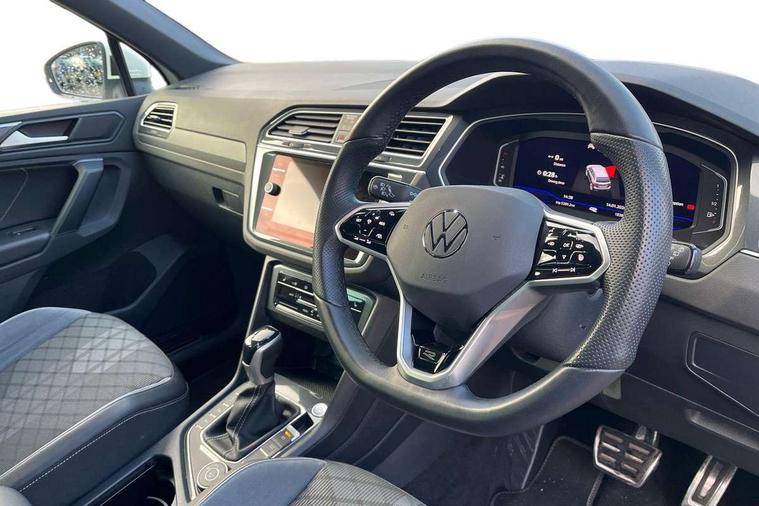 Adaptive cruise control ACC stop and go including speed limiter, App-Connect incl. App-Connect Wireless for Apple CarPlay and Android Auto, Bluetooth phone integration system, Distance control assist, Driver alert system, Driver profile selection, Dynamic road sign display, eCall emergency call system, Electromechanical speed sensitive power steering, Engine start/stop button, Lane keeping system Lane Assist, Lights on warning, Multifunction front facing camera, Outside temperature display, Premium multifunction display with multi colour display, Remote control boot opening, Rev counter, Revision / skills operating concept travel assistant, Service interval indicator, Speed limit display, Start/stop system with regenerative braking, Trip computer, Warning sound and light for doors and tailgate open, All wheel drive - 4Motion, Battery regeneration during braking, XDS electronic differential lock for improved traction and handling, 4 X 20 watt output, 8 Speakers, Diversity antenna for FM reception, Radio, SD card slot, Simultaneous pairing of 2 compatible mobile devices, SMS functionality - read, compose and send SMS messages using touch-screen display, Title and cover art display, USB C ports, Auto dimming interior rear view mirror, Automatic headlight control system, Body colour door handles, Chrome moldings on the side windows, Coming/leaving home lighting function, Dynamic headlight range control, Front and rear electric windows, Heated rear window, High level 3rd brake light, Laminated safety glass windshield, heat and sound insulating, LED headlamps with LED separate daytime running light and dynamic cornering light, LED rear combination lamps, LED rear number plate lights, License plate carrier in front and rear, Poor weather light and cornering light, R Line body kit, R Line side sills, Rain sensor windscreen wipers, Rear exhaust tailpipe, Rear fog lamp, Rear side wing doors, Rear spoiler in R style, Rear windscreen washer and wiper with interval delay, Side and rear windows in heat insulating glass, Trailer Stability Programme, Unique R Line badging, Windscreen wipers/ intermittent wipe + 4 position delay, 12V outlet in center console rear and in luggage compartment, 12V outlet in front and tray, 2 cup holders in front, 2 LED front reading lights, 2 LED rear reading lights, 3 bench rear seats in 2nd row, 3 rear headrests, 4 load lashing points, 40:20:40 split folding rear seats, Air Care Climatronic 3 zone automatic climate control with enhanced air filter and controls in the rear, Backrest release for left front seat, Black headlining, Brushed stainless steel pedals and footrest, Carpet mats in front and rear with decorative stitching in Gray, Climate control unit rear with touch function, Door and side trim panel in foam film, insert in leatherette, Front centre armrest, Front footwell illumination, Front seats head restraints (x-adjustment), Height adjustable front seats, Height/reach adjust steering wheel, Instrument lighting white adjustable panel illumination, Interior light with delay, Isofix Preparation 2 Rear child seats, Leather gear knob, Lockable cooled glovebox, Luggage compartment lighting, Luggage net, Rear bench seat asymetrically split folding, longitudinally movable and folding with load-through hatch and center armrest, Remote unlocking for rear seat backrest, Removable luggage cover, Removable rear headrests, Safety optimised front head restraints, Single front passenger seat, Sliding/reclining rear seats, Standard rear seat release, Storage compartment in driver's door, Storage compartment in passenger's door, Storage compartment in rear doors, Storage compartments in luggage area left and right, Storage tray on dashboard, Sun visors with illuminated vanity mirrors, Top front comfort seats, Variable boot floor, height adjustable and removable, Driver assistance pack plus - Tiguan DSG, 3 point seat belt for centre rear seats, 3 point seat belts with seat belt pretensioners for the outer rear seats, Active bonnet, Curtain airbags for front and rear passengers, Driver/Front Passenger airbags, Drivers knee airbag, Electronic parking brake with auto hold, Electronic Stability Control with driver steering recommendation, ABS, ASR, EDL, EDTC and trailer stabilization, Front assist with autonomous emergency braking (for Adaptive Cruise Control ACC up to 130 mph), Front disc brakes, Front passenger airbag deactivation, Front side airbags, Height adjustable front 3 point seatbelts + pretensioners, Hill hold control, Manual child proof rear door locks, Pedestrian monitoring system, Power assisted brakes, Proactive passenger protection system in combination with front assist, Rear disc brakes, Rigid safety cell with front and rear crumple zones, Two tone horn, Warning sound and light for front seat belts if unfastened, Anti theft alarm system with interior monitoring, backup horn and towing protection, Anti theft wheel bolts, Electronic engine immobiliser, Tool kit,