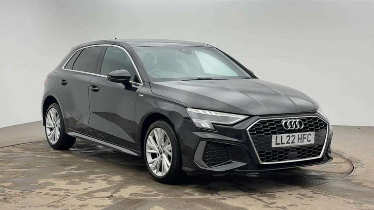Audi drive select (Auto, Comfort, Dynamic, Efficiency and Individual), Audi smartphone interface, Audi Virtual Cockpit - 10.25" digital and colour instrument cluster, Automatic start/stop system with recuperation, Bluetooth interface, Collision avoidance assistant, e-Call (emergency call), Electromechanical power speed sensitive steering, Lane departure warning system, MMI Navigation Plus with high resolution 10.1" colour touch screen display, Service indicator, Trip computer, Voice control system with natural language interaction, 3 pin 10 amp domestic charging cable, 3.6 kw On-board charger, Standard suspension, Type 2 mode 3 32 amp charging cable, Type 2 socket for AC charging, 2xUSB-C connection with data and charging functions, 6 passive loudspeakers, DAB Digital radio, 3rd brake light, Acoustic glass windscreen, Aluminium window trim, Auto dimming frameless rear view mirror, Electrically adjustable/heated/folding/auto dimming door mirrors with integrated LED indications + kerb view function for passenger side, Front electric windows, Illuminated aluminium inserts front door sills with S logo, LED daytime running lights, LED headlights with LED rear lights and dynamic rear indicators, Light and rain sensors, Privacy glass - dark tinted rear window, rear door and side windows, Rear electric windows, Rear side air outlets in grained matt black, Rear side wing doors, Rear wiper, S line bumpers, S roof spoiler, 12V socket and storage compartment in front centre console, 3 seat bench in 2nd row, 40/20/40 split folding rear seat bench with cupholder, Black cloth headlining, Dual zone electronic climate control, Front and rear centre armrest in leather, Front and rear headrests, Front/rear floor mats, Height and reach adjustable steering wheel, Illuminated vanity mirror, Interior lighting - glove compartment light and right hand side, Luggage compartment floor covering, Manual boot compartment lid, Manually adjustable front seats, Seat side bolsters, Single front passenger seat, Stainless steel pedals and front footrest in black, Twin leather upholstery with front sports seats S embossed logo, Aluminium interior elements pack - A3 Sportback, S line styling pack - A3 Sportback, 3x3 point rear seat belts, Audi pre sense front, Driver and front passenger airbag with passenger airbag deactivation, Electronic Stabilisation Control (ESC) including ABS, ASR and EDL, First aid kit with warning triangle and 2 safety vests, Front side airbags with head airbags and interaction airbag, Pre-sense front with pedestrian and cyclist detection, Seatbelt monitoring, Tyre pressure loss indicator, Anti theft alarm, Anti-theft wheel bolts, Immobiliser, Manual child locks, Remote control central locking, Accent surfaces in the dashboard and centre console in platinum grey silk effect paint finish, Dark spectrum aluminium inlays, Tool kit, Tyre repair kit,