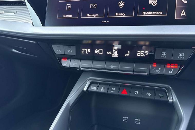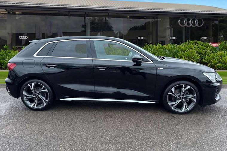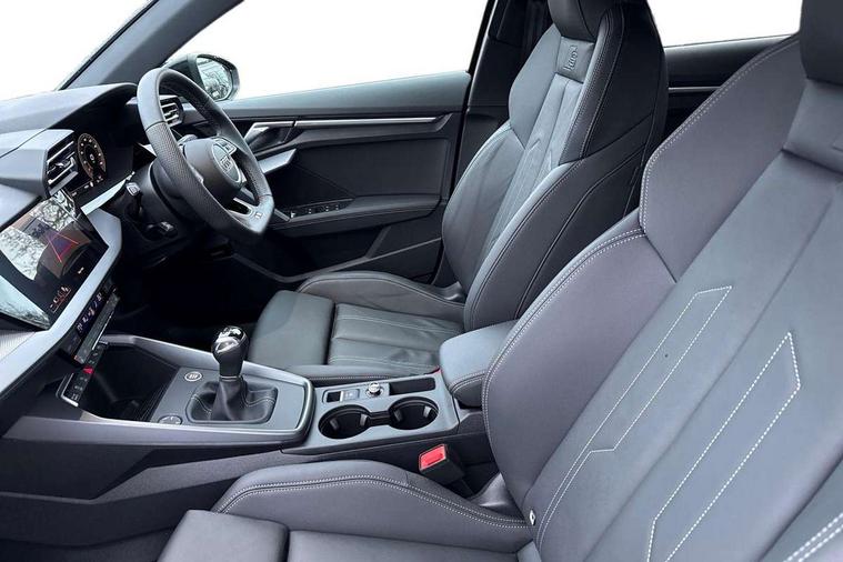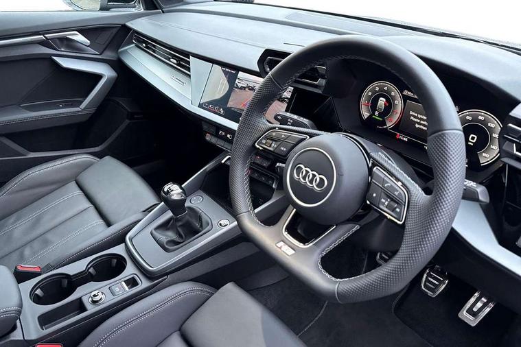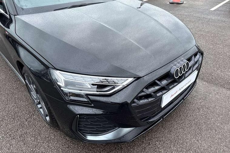 Adaptive cruise control (ACC), Adjustable speed limiter, Audi drive select (Auto, Comfort, Dynamic, Efficiency and Individual), Audi virtual cockpit plus - 12.3" full HD resolution dynamic digital instrument cluster, Automatic start/stop system with recuperation, Bluetooth interface, Camera based traffic sign recognition, Collision avoidance assistant, Driver attention and fatigue detection, e-Call (emergency call), Electromechanical power speed sensitive steering, Intersection assist, Lane departure warning system, MMI Navigation Plus with high resolution 10.1" colour touch screen display, Park Assist with parking system Plus, Reversing camera, Service indicator, Smartphone interface with app store includes wireless Apple carplay, Android auto and Amazon alexa integration, Trip computer, Voice control system with natural language interaction, Sports suspension, Audi Phonebox light with wireless charging, Audi sound system - 10 loudspeakers including centre loudspeaker and subwoofer, DAB Digital radio, USB ports with charging function in the rear, Acoustic glass windscreen, All weather light, Aluminium window trim, Auto dimming frameless rear view mirror, Automatic dynamic range control, Body colour exterior mirrors, Dipped beam, main beam, position light and turning light, Electrically adjustable/heated/folding/auto dimming door mirrors with integrated LED indications + kerb view function for passenger side, Exterior model badging, Front and rear side air inlets in grained matt black with dark liquid chrome frame, Front electric windows, Front radiator grill in high gloss dark chrome, Heat insulating glass windscreen, Illuminated door sills with aluminium inserts at the front with S logo, Intersection light, Invisible tailpipe, LED 3rd brake light, LED brake lights, LED daytime running x3, LED headlights with LED rear lights and dynamic rear indicators, LED rear number plate lights, LED reverse light, LED tail lights, Light and rain sensors, Manoeuvring light, Motorway light, Privacy glass - dark tinted rear window, rear door and side windows, Rear diffuser and grill in grained matt black with inlay in dark liquid chrome, Rear electric windows, Rear side wing doors, Rear wiper, S line bumpers, S roof spoiler, Side S line emblems on front wings, Side sill trim in dark liquid chrome, Static cornering light, 12V socket and storage compartment in front centre console, 3 seat bench in 2nd row, 3 spoke flat bottomed multi-function leather sport steering wheel, 3-zone deluxe automatic air conditioning, 4 way electrically adjustable lumbar support for driver and front passenger, 40/20/40 split folding rear seat bench, Black cloth headlining, Black front and rear floor mats, Front and rear centre armrest in artificial leather with contrasting stitching on armrests and instrument panel, Front and rear headrests, Heated front seats, Height and reach adjustable steering wheel, i-Size child seat mounting on the front passenger side and outer rear seats, i-Size and top tether on the outer rear seats, Manual boot compartment lid, Manually adjustable front seats, Rear centre armrest with cupholder, S badging on the steering wheel, Seat side bolsters, Single front passenger seat, Stainless steel pedals and front footrest in black, Twin leather upholstery with front sports seats S embossed logo, Aluminium interior elements pack - A3, Multi-coloured LED interior lighting package with Multi-coloured contour lighting of instrument panel - A3, 3x3 point rear seat belts, Driver and front passenger airbag with passenger airbag deactivation, Electronic Stabilisation Control (ESC) including ABS, ASR and EDL, First aid kit with warning triangle and 2 safety vests, Front side airbags with head airbags and interaction airbag, Hill hold assist, Pre-sense front with pedestrian and cyclist detection, Seatbelt monitoring, Tyre pressure loss indicator, Anti theft alarm, Anti-theft wheel bolts, Electronically operated child locks, Immobiliser, Black dashboard, Inlay in dark aluminium spectrum,