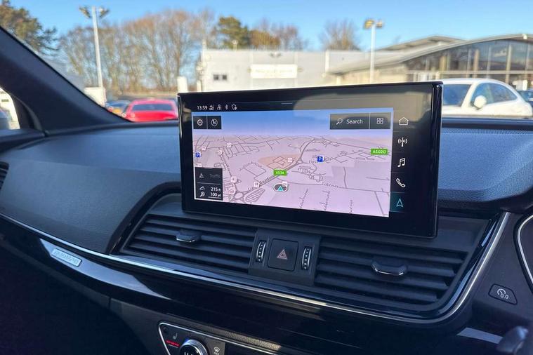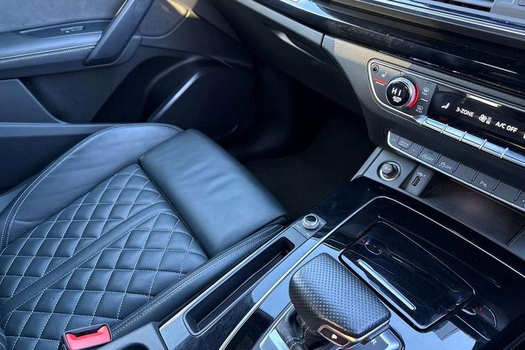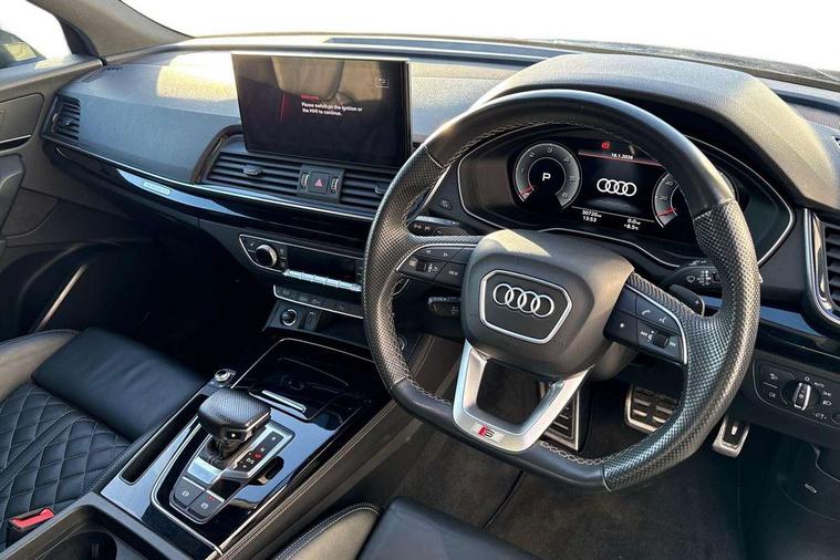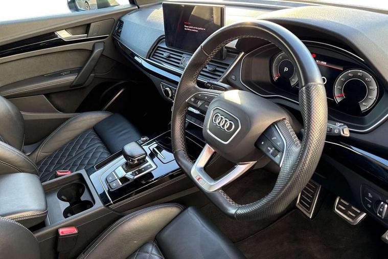 Audi connect safety and service (e-call), Audi connect with Amazon Alexa Integration, Audi drive select, Audi virtual cockpit plus with 12.3" screen and three different layout designs, Audi wireless smartphone interface, Automatic start-stop system with coasting functionality and efficiency programme, Bluetooth interface, Electro - mechanical power assisted steering, MMI navigation plus with 10.1" touch screen, Power tailgate, Reversing camera, Service interval indicator, Voice control system with Audi hotword activation "Hey Audi", Diesel particulate filter, Quattro on demand, S line sports suspension, DAB Digital radio, Acoustic windscreen, Audi beam with Audi rings logo, Audi matrix LED headlights with dynamic front and rear indicators, Audi rings at front and rear in black, Audi rings decal on rear doors, Auto dimming door mirrors, Auto dimming rear view mirror, Automatic headlights and windscreen wipers, Black door mirrors, Black roof rails, Body colour underbody protection, Chrome plated exhaust trims, Daytime running lights, Door sills in Selenite silver, Electric adjustable/heated/folding door mirrors, Front air inlet surrounds in aluminium, Front and rear electric windows, Headlight washers, High gloss black B pillar trims and triangular rear door trim, High level LED brake light, Rear chrome trim strip below lights, Rear privacy glass and rear side windows, Rear side wing doors, Rear spoiler, Rear wiper, Roof bars, Without model and engine badging at rear, 2 x USB charging port with aux input socket, 3 rear headrests, 4 way electric lumbar support for driver and front passenger, 40:20:40 split folding 3 rear bench seat in 2nd row with rear centre armrest, Black cloth headlining, Comfort front centre armrest, Contrast stitching on seats, steering wheel and gear lever gaiter, Deluxe 3 zone electronic climate control, Electrically adjustable front seats, Fine Nappa leather upholstery with diamond pattern contrast stitching + front sport seats with S embossed logo, Front head restraints, Front/rear floor mats, Gear lever in black leather, Heated front seats, Height/reach adjustable steering column, Illuminated door sill trims with S logo, ISOFIX child seat mounting and top tether, Rear seat bench plus, Removable luggage compartment floor, Single front passenger seat, Stainless steel pedals, Sunvisors with vanity mirrors, Trunk roller cover, Artificial leather pack - Q5, Black styling package - Q5 Edition 1, Extended LED Interior multi coloured Lighting Pack - Q5, 3 point seatbelts on all seats, 6 airbags - Driver, front passenger, curtain and side airbags, Electrically operated child locks on rear doors, Electromechanical parking brake, Electronic stabilisation control including ABS, ASR and EDL, Front and rear brake calipers painted in red, Front passenger airbag deactivation, Hill descent control, Hill hold assist, Multi collision brake assist, Pop-up bonnet for pedestrian protection, Pre sense city, Seat belt force limiter, Seatbelt monitoring, Tyre pressure warning, Warning triangle and first aid kit, Anti theft alarm, Anti-theft wheel bolts, Keyless Go access/ignition system, Remote central locking, Piano black finish inlay,