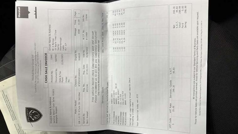 7" Capacitive colour touchscreen, Bluetooth system, Colour Reversing camera, E-call, Electrically assisted power steering, Rev counter, Service indicator, Speed limiter, Start/stop system, Trip computer, 2 speakers + 2 tweeters, 3.5mm jack for external audio device, DAB Digital radio, Steering wheel mounted remote controls, USB socket, 3rd brake light, Automatic headlights, Body colour bumpers, Caldera black roof, Colour coded door handles, Electric front windows, Electric operated/heated door mirrors, LED daytime running lights, Pop-out opening rear side windows, Raven Black door mirrors, Rear side wing doors, Rear wash/wipe, Static fog lights, Tinted rear and side windows, 2 rear head restraints, 2 seat bench in 2nd row, 50/50 split folding rear seat, Auxilliary 12V power socket, Carpet mats, Charcoal grey with gloss black centre console ambiance with charcoal grey dash insert with gloss black detailing around air vents, Driver seat height adjust, Front head restraints, Height adjustable steering wheel, Leather gear knob, Leather trimmed steering wheel, Line Jusa cloth upholstery, Manual air conditioning, Rear seat 3 point ISOFIX location mounts x 2, Single front passenger seat, 2 x 3-point rear seatbelts, ABS+Electronic Brake force Distribution, Driver and Passenger airbag with Passenger airbag deactivation switch, ESP with Hill Assist, Front and rear curtain airbags, Front side airbags, Rear door child safety locks, Tyre pressure sensor, Peugeot open and go system with keyless entry/stop start button, Remote control central locking, Seatbelt alarm (Driver & Passenger), Thatcham Cat 2 engine immobiliser, 15" Thorren alloy wheels,
