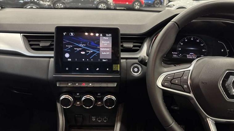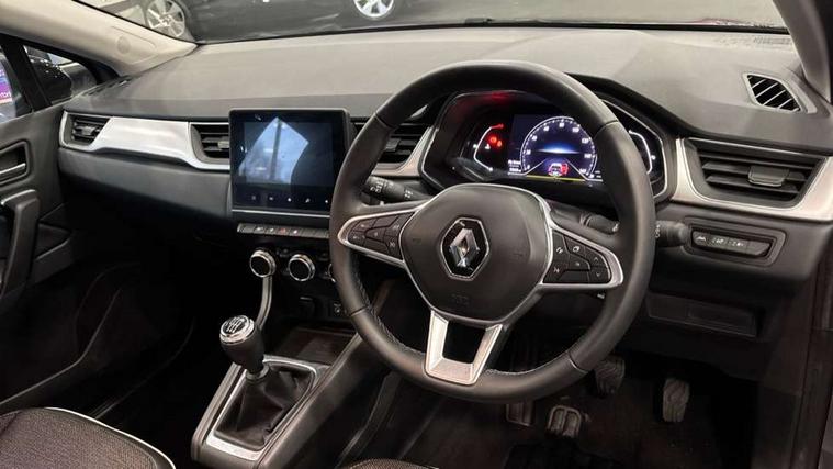 7" TFT Driver information display, Cruise control + speed limiter, EasyLink 7" touchscreen with navigation, google search and traffic information, Eco mode, Front and rear parking sensors with rear view camera, Gear change indicator, Lane departure warning system, Lane keep assist, Multisense with 3 driving modes + 8 ambient lighting colours, Renault automatic emergency assist, Smartphone integration compatible with Apple CarPlay and Android Auto, Traffic sign recognition with over speed prevention, Trip computer, Variable assistance power steering, Wireless phone charger, DAB Radio with Bluetooth and USB, 2 reverse gear LED lamps and 1 rear LED fog lamp in the bumper, Auto dimming rear view mirror, Automatic front wipers with rain sensors, Automatic headlights, Automatic high/low beam, Black side door protection with chrome effect, Body colour door handles, Body coloured bumpers, Body coloured door mirrors, C Shaped LED front and rear lighting signatures with 3D effect on the rear lights, Chrome around front air deflectors, on front wing deco element and window lining, Day time running light, Drivers one touch window with anti-pinch feature, Extra tinted glass in rear windows and tailgate, Front and rear electric windows, Front grille with chrome upper trim, Full LED headlights, Grey front and rear skid plate, LED front fog lights, LED high level brake lights, LED turn indicators on door mirrors, Longitudinal roof bars, Rear side wing doors, Rear wiper, Shark fin antenna, 12V Accessory socket, 3 rear headrests, 60/40 split and fixed base rear seat bench, Automatic climate control with one touch demist function and air quality regulator, Centre console storage tray, Front head restraints, Glovebox, Heating system with pollen filter, Height adjustable driver's seat, Height adjustable passenger seat, Height/reach adjust steering wheel, ISOFIX child seat fixing points on rear outermost seats, LED front roof lights, Middle console with armrest and storage, Modular boot floor, Rear air vents, Single front passenger seat, Sliding rear bench, Synthetic leather steering wheel, Synthetic leather/cloth upholstery, 3 rear seatbelts, ABS+EBA, Distance warning alert, Driver and front passenger, side, head and curtain airbags, Driver height adjustable seat belt, Electric parking brake with auto hold function, Electronic stability control, Front and rear no seatbelt warning sound, Front dash warning indicator in case of heavy braking, Front driver and passenger side airbag deactivation, Hill start assist, Rear door and window child locking function for rear door, Tyre pressure warning light, Anti drill door locks and locking fuel cap, Central door locking, Deadlocking system, Hands free keycard with push button and start/stop function, RAID (Renault Anti-Intruder Device) automatic door locking, Black soft touch dashboard, 18" Pasadena diamond cut alloy wheels with grey inserts,