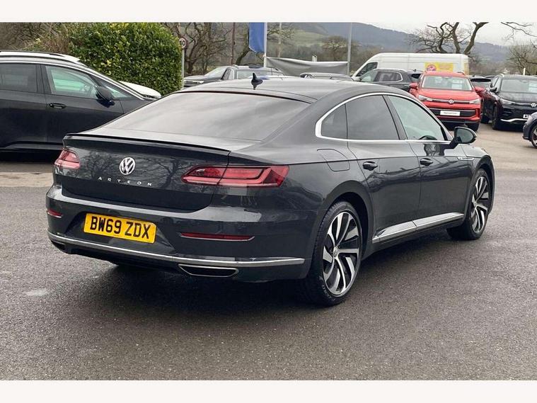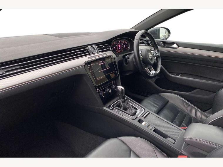 'Lights On' Reminder warning buzzer, 2D/3D map view, Active Info display 12.3" high resolution TFT dash display with customisable menu and information, Adaptive Cruise Control with pedestrian detection and speed limiter, Analogue clock in the dasboard, Bluetooth telephone and audio connection for compatible devices, Car-Net Security and Service, Discover navigation pro with 9.2" touchscreen, integrated voice activation, gesture control, car-net guide and inform plus, Driver alert system with fatigue detection, Driver profile selection, Front Assist with radar sensor controlled distance monitoring system, Lane assist, Low washer fluid warning light, Press and drive key, Progressive steering, Remote boot unlocking, Speedo and rev counter, electronic odometer, trip, service interval display and fuel gauge, Start/Stop function, Streaming and internet, Think blue trainer driver tips and journey analysis, Traffic jam assist, Warning sound and light for doors and boot lid opening, Warning sound and light for front and rear seat belts if unfastened, Battery regeneration during braking, Part galvanised body, CD/MP3/WMA and SD card reader, DAB Digital radio, Driver Personalisation profile selection, MDI with USB/iPod connection cables, Premium USB cable in choice of either Apple or Android smartphone compatibility, SMS functionality - read, compose and send SMS messages using touch-screen display, Title and cover art display, USB interface 3.0 with type C, Auto dimming interior rear view mirror, Automatic coming/leaving home lighting function, Automatic hazard lights activation under emergency braking, Automatic headlights with dusk sensor, Black gloss rear tailgate spoiler, Body colour bumpers, Body colour door handles, Body colour side skirt, Body coloured top and matt black lower door mirrors, Chrome lower door mouldings, Chrome side window surrounds, Chrome trim headlights extending into the radiator grille, Chrome trim on lower bumpers, Chrome trim on radiator grille louvres, Dynamic cornering lights, Dynamic light assist, Electric adjust/heated/foldable with auto dimming on driver side, puddle lights on door mirror and reverse activated kerbview adjust on passenger side, Emergency release function in rear tailgate, Frameless side windows with one touch and convenience opening and closing functions, Front and rear electric windows, Front fog lights, Headlight range control, Headlight washers, Heated rear window, Heated windscreen washer jets, High level 3rd brake light, LED headlights with separate daytime running lights, LED number plate light, LED tinted rear light clusters with dynamic indicators, Left and right chrome effect trapezoid dummy exhaust tailpipe surrounds, R Line bading on front raddiator grille, R Line Design front bumper, R Line lettering on side fender vents, R Line logo on door sill protectors, Rain sensor, Rear tinted glass on rear side windows with 87% and rear windows with 77%, Side skirts with chrome inserts, Windscreen wipers/ intermittent wipe + 4 position delay, 12V socket in centre console storage area, 12V socket in storage compartment with soft touch opening cover, 12V socket on rear of front centre armrest, 2 bag hooks in luggage compartment, 2 reading lights front and rear with interior delay and dimming function, 3 spoke leather multifunction steering wheel including paddle shift with Aluminium inserts and R-Line logo, 3 Zone electronic climate control with automatic air recirculation, 4 load lashing points in luggage compartment, 60/40 split folding rear seat with armrest, Aluminium finish interior door handles, Aluminium trim on upper and lower air vents extending across cockpit, Front + rear carpet mats, Front and rear interior lighting with delay and dimming function, Front centre armrest with storage compartment, longitudinal and height adjustable and two rear air vents, Front cupholders x 2, Front footwell ambient lighting, Front seat and rear pockets, Front seats with R-line logo on seat backrest, Gearshift paddles, Glovebox, Heated front seats, Height adjustable 3 rear head restraints, Height/reach adjust steering wheel, Illuminated vanity mirrors, Isofix child seat preparation easy fit for two outer rear seats, Jack and tool kit, Light strips below trim in front doors and dashboard, Luggage compartment lighting, Nappa leather upholstery, Rear armrest with 2 cupholders, Rear load through provision with 2 cup holders in armrest when folded down, Removable luggage compartment cover, Stainless steel footrest and pedals, Storage compartment in drivers and front passengers door, Storage compartment in rear doors, Storage compartment with soft touch opening cover in centre console, Storage compartments in luggage area left and right, Titan headlining, USB charging point, 3 rear three-point seat belts with tensioners on outer seats, ABS+EBD+Brake assist, Active bonnet, City Emergency Braking in active traffic speeds up to 19mph, Drivers and front passengers airbags with passengers deactivation switch, Drivers and front passengers safety optimised head restraints, Drivers knee airbag, Electronic parking brake with auto hold, Electronic stability control (ESC) includes ASR, EDL, EDTC and trailer stabilisation function, Front and rear curtain airbags, Front seat side impact airbags, Front ventilated disc brakes and rear disc brakes, Height adjustable front 3 point seatbelts + pretensioners, Hill start assist, Outer rear seat side impact airbags, Pedestrian monitor, Proactive passenger protection system, Rigid safety cell with front and rear crumple zones, Two tone horn, Tyre pressure loss indicator, Warning triangle, Alarm with interior protection, Electronic engine immobiliser, Remote central locking with 2 remote folding keys, Piano black centre console, Silver Rise decorative inserts in dash and door panels, Full size alloy spare wheel,