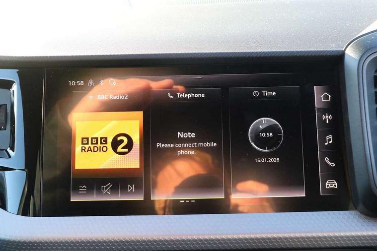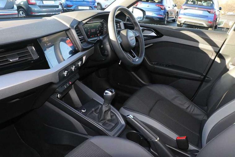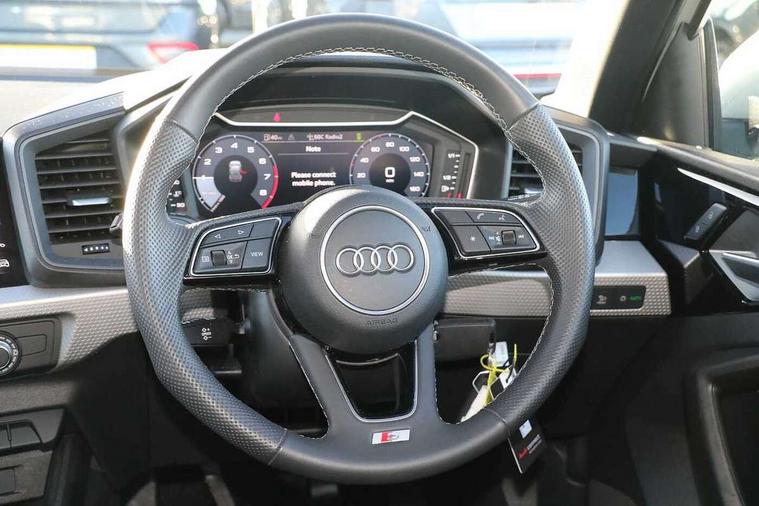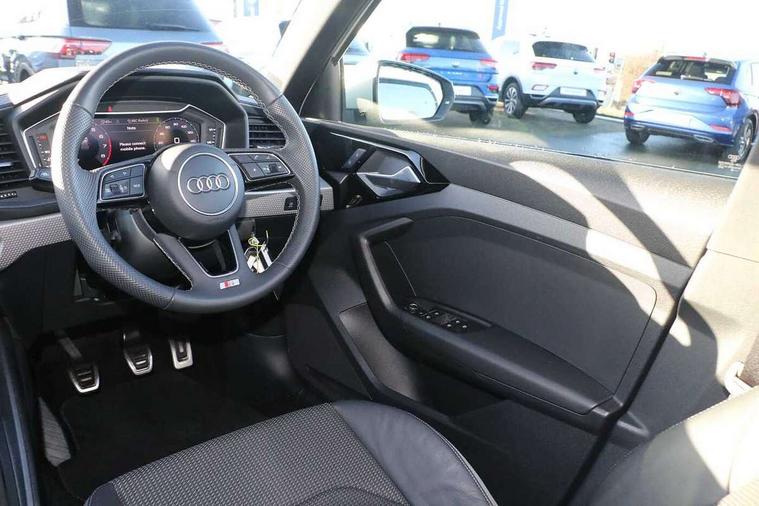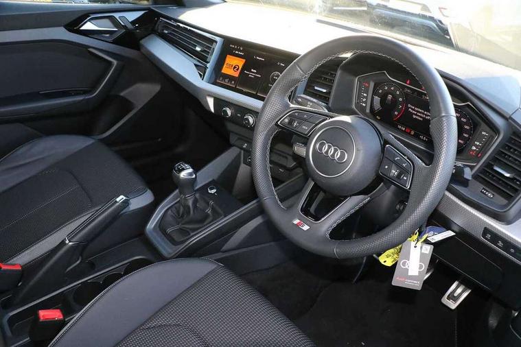 10.25" Digital instrument cluster display classis style instrument dials + speed, odometer, time, outside temperature, telephone menu + fuel level warning, Advanced driver attention and drowsiness monitor, Audi connect emergency call and service, Audi remote connect and control, Audi smartphone interface, Bluetooth interface, Camera based traffic sign recognition, Cruise control, Driver's information system, Electromechanical power steering, Lane departure warning system, Rear parking sensor, Service interval indicator, Speed limiter, Start stop system with recuperation, Voice control system, Washer fluid level indicator, Sports suspension, 2 x USB type C connection points, 6 loudspeakers, DAB Digital radio, MMI radio plus with 10.1" colour MMI display screen and MMI touch, Auto dimming rear view mirror, Body coloured door mirrors, Door sill trims with aluminium inlays and S line logo in front, Electric front and rear windows, Electrically adjustable, heated, folding door mirrors with integrated LED side indicator, Front side air inlets in grained matt black and C frame in anthracite black, Headlight cleaning system, Heat insulating glass windscreen and side windows, Heated rear windscreen, High level LED brake light, LED daytime running lights, LED headlights with range control LED rear lights + dynamic rear indicators, Privacy glass, Radiator grille and rear diffuser in matt anthracite black, Radiator protective grille frame in matt aluminium silver, Rain and light sensors, Rear fog lights, Rear side wing doors, Rear wiper, S line badges on front wings, Side front spoiler lips in grained matt black, 12V socket in centre console with two cup holders, 3 rear seats with headrests, 3 seat bench in 2nd row, 3 spoke leather multi-function plus steering wheel features S badging and grips in perforated leather with contrast stitching, 40:60 Split folding rear seat or fully collapsed, Black cloth headlining, Front and rear velour black floor mats with contrast stitching in fine silver, Front head restraints, Front passenger seat, Height and reach adjustable steering wheel, Interior lighting includes roof module, front and rear reading lights and right luggage compartment lighting, ISOFIX child seat mounting for front passenger and outer rear seats including top tether attachment point of outer rear seats, Leather gear knob with aluminium trim, Leather handbrake grip, Manual air conditioning, Manual height adjustable for driver and front passenger seat, Manually adjustable lumbar support in front seats, Stainless steel pedals, Ambient lighting package - A1, Luggage compartment pack - A1, S line exterior styling pack - A1 Sportback, 3x3 point rear seatbelts, Audi pre-sense front with pedestrain and cyclist recognition, Brake assist function, Driver and front passenger airbag with front side and head airbags, Electronic Stability Control including ABS, EBD, ASR and EDL, Front passenger airbag deactivation switch, Hill hold assist, Manual rear child locks, Seatbelt height adjustment for front seats, Seatbelt monitoring, Tyre pressure loss indicator, Warning triangle and first aid kit, Anti theft alarm, Anti theft wheel bolts, Immobiliser, Remote control key with safelock, Aluminium trim for control switches, air vents and digital instrument cluster, Black dashboard, Silver grey inlays polygon structure in diamond paint finish, Structured grey accent surfaces insert of air vents, interior door handle recesses and centre console in quartz paint finish,