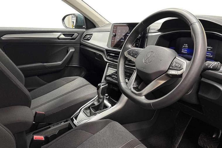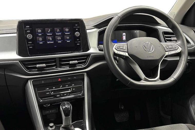 Advanced driver attention and drowsiness monitor, Dynamic road sign display, Emergency call service, Lane keeping system Lane Assist, Mobile phone interface, Modified key software - reduce switch off time for key status change to Long no motion, Online services, Park assist including front and rear parking sensors, Power assisted speed sensitive steering, Service interval indicator, Tailgate/trunk lid release from outside, Think blue trainer driver tips and journey analysis, Warning sound and light for front seatbelts unfastened, Wireless app connect, Battery regeneration during braking, Front shock absorption, Rear shock absorption chassis with increased ride height, Start/stop function with battery regeneration, DAB Digital radio, Diversity antenna for FM reception, Front and rear 6 speakers, Music playback - MP3, WMA and AAC files, Premium USB cable in choice of either Apple or Android smartphone compatibility, SD card slot, Simultaneous pairing of 2 compatible mobile devices, Title and cover art display, We Connect and We Connect Plus functionality, Auto dimming interior rear view mirror, Automatic hazard lights activation under emergency braking, Automatic headlight control with LED separate daytime running lights with coming/leaving home function, Black roof rails, Body coloured bumpers and radiator grille with chrome trim and front fog lamps with chrome bezel, Body coloured exterior mirror housings and door handles, Electrically adjustable and heated door mirrors, Extended roof spoiler, Exterior mirrors aspherical on driver side, convex on front passenger side, External USB type C socket and charging sockets, Front windscreen wiper with intermittent wipe and 4 position delay, Heated rear window, LED 3rd brake light, LED rear combination lamps, LED rear number plate lights, Power windows with comfort operation and circuit breaker, Rain sensor, Rear exhaust tailpipe, Rear fog light on one side and reversing lights on both sides, Rear side wing doors, Rear wash/wipe with intermittent wipe setting, Remote electrically foldable door mirrors, puddle lights and reverse activated passenger's door mirror, 12V power socket in centre console, 3 rear head restraints, 3 seat bench in 2nd row, 4 load lashing points in luggage compartment, Air care climatronic air conditoning system with active combination filter and 2-zone temperature control, Ambient lighting with mirror logo projection, Cloth upholstery, Door and side trim panel in cloth, Drawer under drivers seat, Driver/front passenger seat height adjustment, Front centre armrest, Front comfort sports seats, Front cupholders x 2, Front reading light, Front seat back storage pockets, Glove compartment door with light, Instrument lighting, white adjustable panel illumination, Interior light delay, Isofix child seat preparation, Leather gearshift handle, Load-through provision with cup holder when folded down ('Unsplit rear seat bench, split folding backrest, with centre armrest), Luggage compartment lighting, Lumbar support for driver's and front passengers seat, Non-folding front passenger seat backrest, Single front passenger seat, Storage compartment in left and right luggage area, Storage compartment in rear doors, Storage compartments in driver and front passenger doors, Sunvisors with illuminated vanity mirrors, Variable boot floor, height adjustable and removable, Driver assistance pack without proactive passenger protection - T-Roc Life/Match, 3 point height adj front seatbelts + pretensioners, 3 point seatbelts in outer rear with ECE label, ABS, Child locks on rear doors, City emergency braking and pedestrian monitoring, Driver and front passenger airbag with front passenger airbag deactivation, Driver and front passenger safety-optimised head restraints, Drivers seatbelt reminder, Electronic parking brake, Electronic Stability Control (ESC) inc EDL (Electronic Differential Lock) and ASR (Traction Control), Front and rear passengers curtain airbag system including front side airbags, Front disc brakes, Hill start assist, Predictive pedestrian protection, Rear disc brakes, Two tone horn, Tyre pressure loss indicator, Volkswagen roadside assistance, Alarm with interior protection, Pewter matt decorative inserts for intrument panel, centre console and door panels at the front, Trims for alloy wheels,