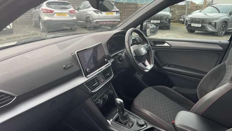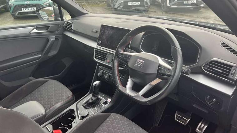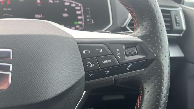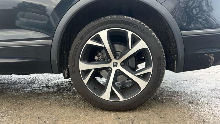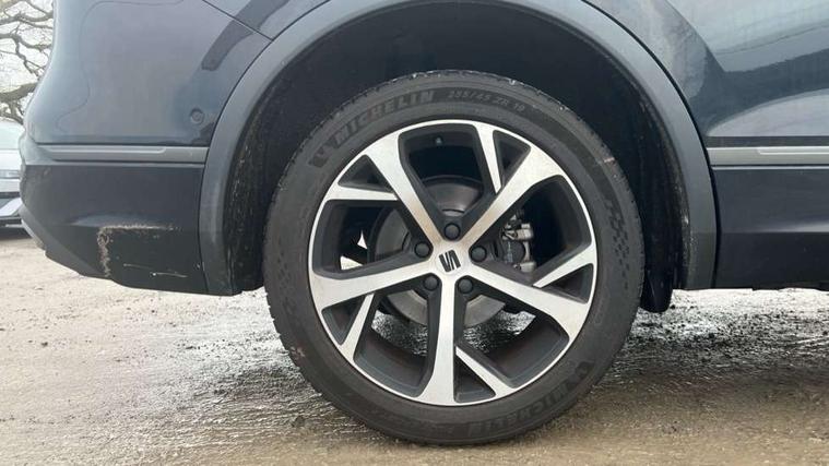 'Lights On' Reminder warning buzzer, 10.25" digital cockpit, Adaptive cruise control with speed limiter, Bluetooth audio streaming with handsfree system, Digital clock, Digital cockpit, e-Call (emergency call), Front assist city emergency braking and pedestrian protection, Full Link Wireless Smartphone Integration with Mirror Link, Apple Car Play, Lane assist, Low fuel warning light, Outside temperature gauge, PAS, RPM counter, Seat connect with safety, service, remote and online, SEAT Drive profile-4 different modes, progressive steering, 4Drive versions with off-road/snow, steering response, throttle response, gear shifts mode, Self parking functionality (includes front and rear parking sensors), Trip computer, Wash water level indicator, Comfort suspension, Sports rear shock absorption, XDS electronic differential lock, Navigation system with 9.2" colour touchscreen with proximity sensor, 3D Map display, DAB, AM/FM Radio, 3 USB (type C), Aux-in, 8 speakers, SD card, Steering wheel mounted audio/telephone controls, USB (type C) cable for Apple and Android compatibility, Auto dimming rear view mirror, Auto headlights with automatic coming and leaving home function, Automatic headlight adjustment, Black bumpers, Black door mirrors, Black roof rails, Black window trims, Body coloured side skirts, Dark tinted rear windows, Dynamic rear indicators, Electric adjustable/heated/folding door mirrors with memory, Electric front/rear windows, Exterior black mouldings, Front grille frame in black, Front halogen fog lights with cornering function, Fuel door linked to central locking, Full LED headlights with LED rear lights, Illuminated aluminium front door sill with trim logo, LED daytime running lights, LED licence plate lighting, Rain sensing wipers, Rear fog lights, Rear spoiler, Rear wash/wipe, Sports bumpers, Twin exhaust pipes, Welcome lighting, 3 zone climate control, Ambient spot lighting and front footwell illumination, Black interior roof, Centre armrest in front with air outlet in rear, Cloth/alcantara upholstery, Driver and passenger sunvisor with covered and illuminated mirror, Driver's electric lumbar adjustment, Easy fold rear seat system - second and third row, Electric driver's seat with memory, Forward and backward adjustable seats 2nd row, Four cargo rings in the boot, Front bucket seats, Front cupholders, Front passenger seat lumbar adjustment, Front seat back storage pockets, Gear shift indicator, Height adjustable front headrests, Height adjustable passenger seat, Illuminated boot, Illuminated glovebox, Instrument lighting with brightness control, ISOFIX points in outer 2nd row seats and front passenger seat with top tether anchorage points, Leather gear knob, Leather wrapped multifunction steering wheel, Luggage compartment floor with split function, Rear armrest and easy back seat release mechanism from boot, Rear headrests, Sliding boot cover, Sports steering wheel, Storage draw under front passenger seat, Three 12V sockets, White ambient lighting in front and rear door panels + LED lights in interior door handles, 3x3 point rear seatbelts, ABS, Active front head restraints, Driver/front passenger airbag, Drivers knee airbag, Electronic parking brake with auto hold, Electronic stability control, Front passenger airbag deactivation, Front side airbags, Hill hold control, Seatbelt reminders for all seats, Tiredness recognition system, Traction control, Two curtain airbags, Tyre pressure monitoring system, Alarm, Keyless enter and go with electric tailgate with virtual pedal, Locking wheel bolts, Power locking and remote control with two foldable keys and opening boot selector, Remote control central locking, Chrome interior detailing - door and dashboard decorative inserts, 19" Alloy wheels, Tool kit,