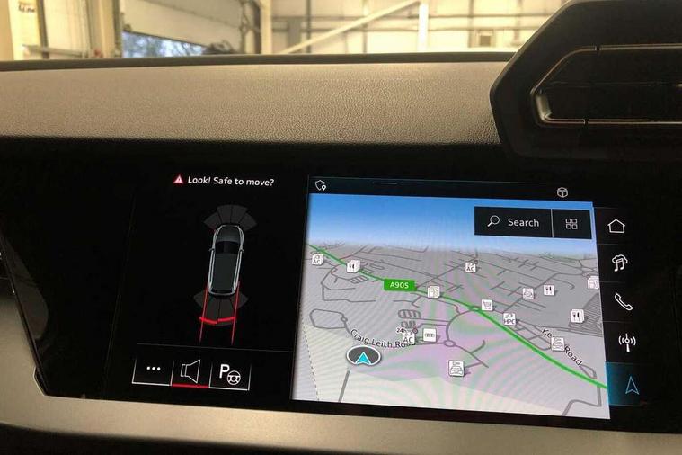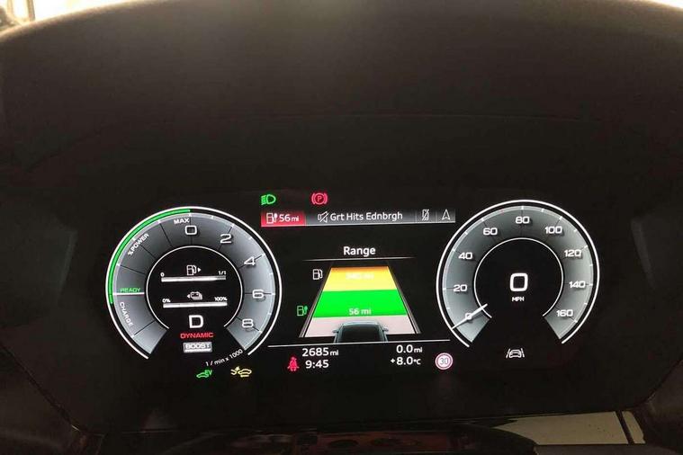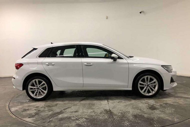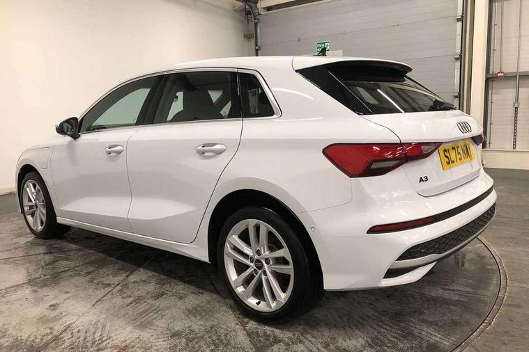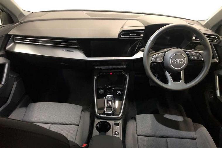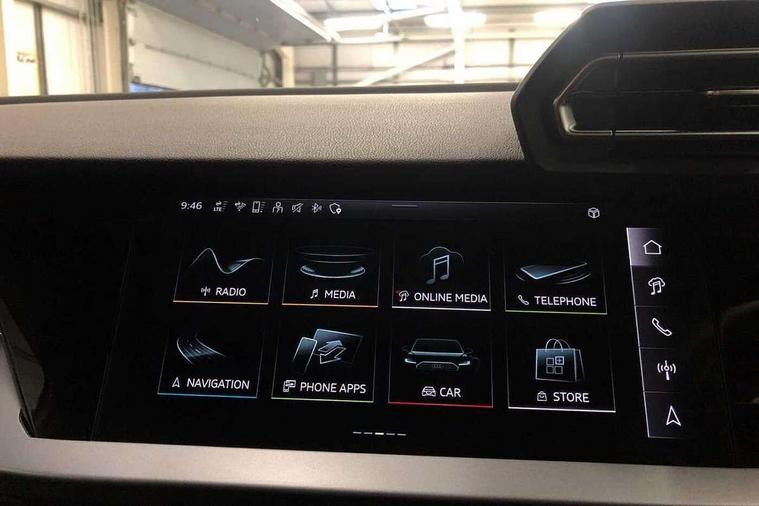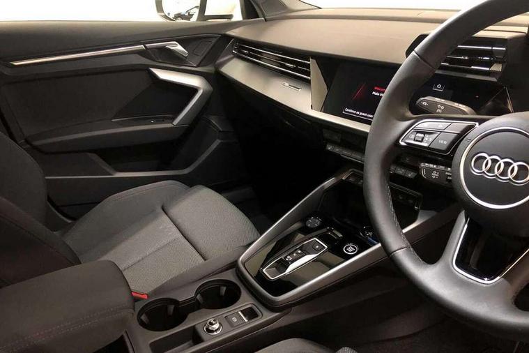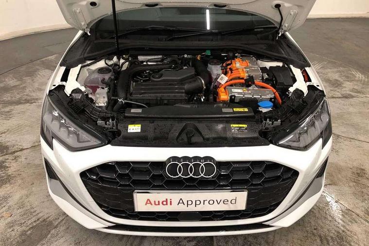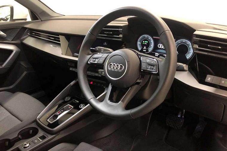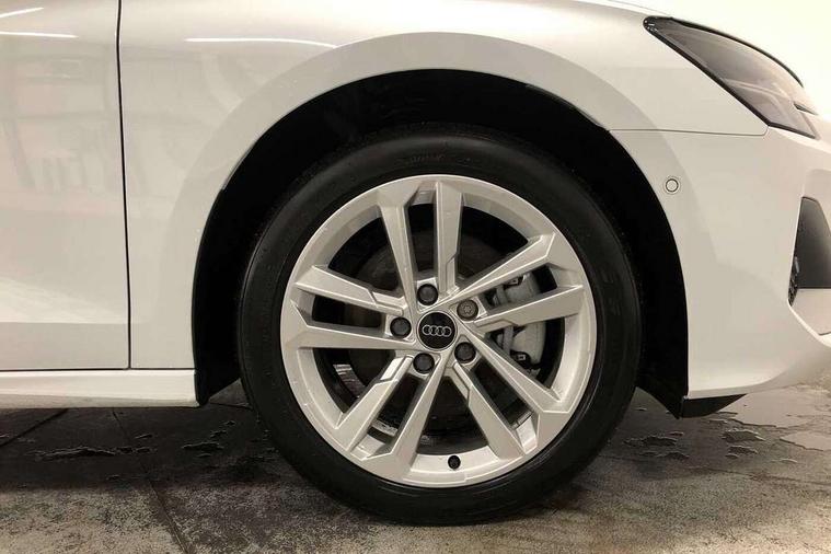 Adjustable speed limiter, Audi drive select, Audi smartphone interface with app store includes wireless Apple carplay, Android auto and Amazon alexa integration, Audi virtual cockpit plus - 12.3" full HD resolution dynamic digital instrument cluster, Automatic start/stop system with recuperation, Bluetooth interface, Camera based traffic sign recognition, Collision avoidance assistant, Cruise control, Distraction and Fatigue warning, e-Call (emergency call), Electromechanical power speed sensitive steering, Emergency assist, Lane departure warning system, MMI Navigation Plus with high resolution 10.1" colour touch screen display, Park Assist with parking system Plus, Service indicator, Trip computer, Voice control system with natural language interaction, 3 pin 10 amp domestic charging cable, CCS socket for DC charging, Charging cable for public charging, mode 3 (type 2), 32 A, Compact charging system, Industrial connector CEE 32 A, 230 V, length 1.6 m, Standard suspension, Type 2 socket for AC charging, Audi Phonebox light with wireless charging, Audi sound system - 10 loudspeakers including centre loudspeaker and subwoofer, DAB Digital radio, USB ports with charging function in the rear, 3rd brake light, Acoustic glass windscreen, Aluminium window trim, Auto dimming frameless rear view mirror, Body colour exterior mirrors, Body colour roof spoiler, Dipped beam, main beam, position light and turning light, Electrically adjustable/heated/folding/auto dimming door mirrors with integrated LED indications + kerb view function for passenger side, Exterior model badging, Front electric windows, Front radiator grill in high gloss dark chrome, Front side air inlets in grained matt black with silver frame, Heat insulating glass windscreen, LED daytime running lights, LED headlights and halogen rear lights, Light and rain sensors, Rear diffuser and grill in grained matt black with silver frame, Rear electric windows, Rear side wing doors, Rear window, rear door windows and rear side windows in clear glass, Rear wiper, 12V socket and storage compartment in front centre console, 3 seat bench in 2nd row, 3 spoke leather multifunction steering wheel with gear shift paddles, 3-zone deluxe automatic air conditioning, 4 way electrically adjustable lumbar support for driver and front passenger, 60/40 split folding rear seat bench, Black front and rear floor mats, Convenience auxiliary air conditioning, Front and rear headrests, Front centre armrest, Front door sill trims with aluminium inlay, Heated front seats, Height and reach adjustable steering wheel, Manual boot compartment lid, Manually adjustable front seats, Routine cloth upholstery with front sports seats, Seat side bolsters, Single front passenger seat, Steel grey cloth headlining, Aluminium interior elements pack - A3, LED interior lighting pack -A3, 3x3 point rear seat belts, Acoustic vehicle alerting system, Driver and front passenger airbag with passenger airbag deactivation, Electronic Stabilisation Control (ESC) including ABS, ASR and EDL, First aid kit with warning triangle and 2 safety vests, Front side airbags with head airbags and interaction airbag, Hill hold assist, Pre-sense front with pedestrian and cyclist detection, Seatbelt monitoring, Tyre pressure loss indicator, Anti theft alarm, Anti-theft wheel bolts, Electronically operated child locks, Immobiliser, Remote central locking with safelock, Black dashboard, Inlays in volcano grey fine paint finish, Tyre repair kit,