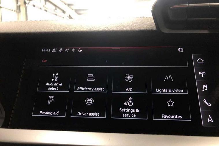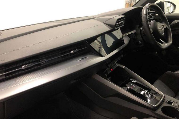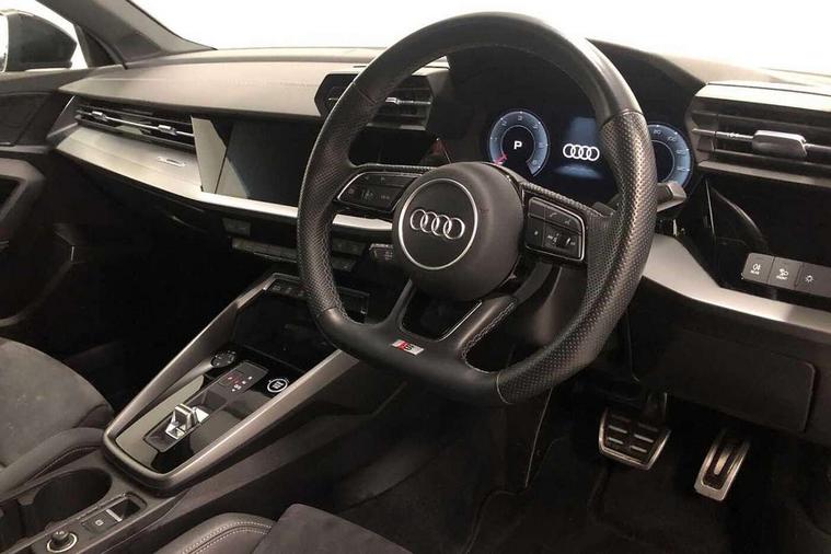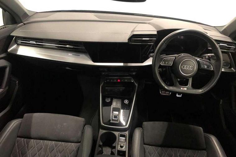Audi connect emergency call and service, Audi drive select (Auto, Comfort, Dynamic, Efficiency and Individual), Audi smartphone interface, Audi virtual cockpit plus - 12.3" dynamic digital instrument cluster, Automatic start/stop system with recuperation, Bluetooth interface, Collision avoidance assistant, Electromechanical power speed sensitive steering, Lane departure warning system, MMI Navigation Plus with high resolution 10.1" colour touch screen display, Service indicator, Voice control system with natural language interaction, Diesel particulate filter, Sports suspension, 2x USB Type C ports (for charging and data transfer), 6 passive loudspeakers, CD player, DAB Digital radio, 3rd brake light, Acoustic glass windscreen, Audi matrix LED headlights, LED rear lights, dynamic front and rear indicators and headlight cleaning system, Auto dimming frameless rear view mirror, Electrically adj heated/folding + automatically dimming exterior mirrors with memory + automatic kerb side function for passenger side exterior mirror, Front electric windows, Illuminated door sills with aluminium inserts at the front with S logo, Integrated LED indicators in door mirrors, LED daytime running lights, Light and rain sensors, Model and engine designation badges at rear, Privacy glass - dark tinted rear window, rear door and side windows, Rear boot, Rear electric windows, Rear side wing doors, S roof spoiler, 12V socket and storage compartment in front centre console, 3 seat bench in 2nd row, 4 way electrically adjustable lumbar support for driver and front passenger, 40/20/40 split folding rear seat bench with cupholder, Black cloth headlining, Dual zone electronic climate control, Electrically adjustable front seats with memory function for driver's side and exterior mirrors, Front and rear centre armrest in leather, Front and rear headrests, Front/rear floor mats, Heated front seats, Height and reach adjustable steering wheel, Illuminated vanity mirror, Interior lighting - glove compartment light and right hand side, Luggage compartment floor covering, Single front passenger seat, Stainless steel pedals and front footrest in black, Aluminium interior elements pack - A3 Saloon, Dinamica microfibre/mono.pur 550 artificial leather pack - A3 Saloon, Extended ambient lighting pack - A3/S3 Saloon, LED interior lighting pack - A3 Saloon, 3x3 point rear seat belts, Driver and front passenger airbag with passenger airbag deactivation, Electronic Stabilisation Control (ESC) including ABS, ASR and EDL, First aid kit with warning triangle and 2 safety vests, Front side airbags with head airbags and interaction airbag, Hill hold assist, Pre-sense front with pedestrian and cyclist detection, Seatbelt monitoring, Tyre pressure loss indicator, Anti theft alarm, Anti-theft wheel bolts, Electronically operated child locks, Immobiliser, Remote control central locking, Aluminium air vent surrounds, Aluminium trim elements, Dark spectrum aluminium inlays, accent surfaces in the dashboard and centre console in platinum grey silk effect paint finish, 19" 5 arm trapezoid design alloy wheels in titanium matt grey with diamond cut finish,