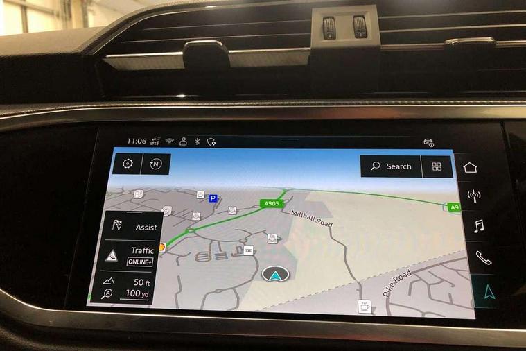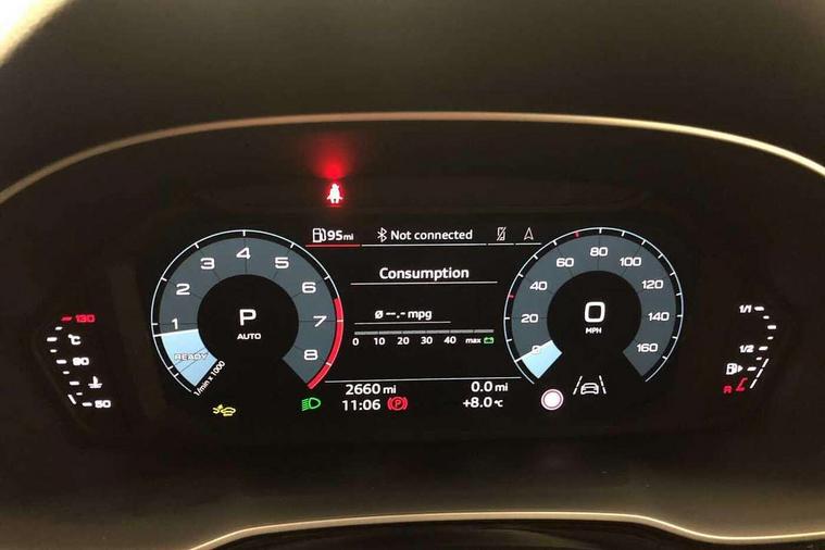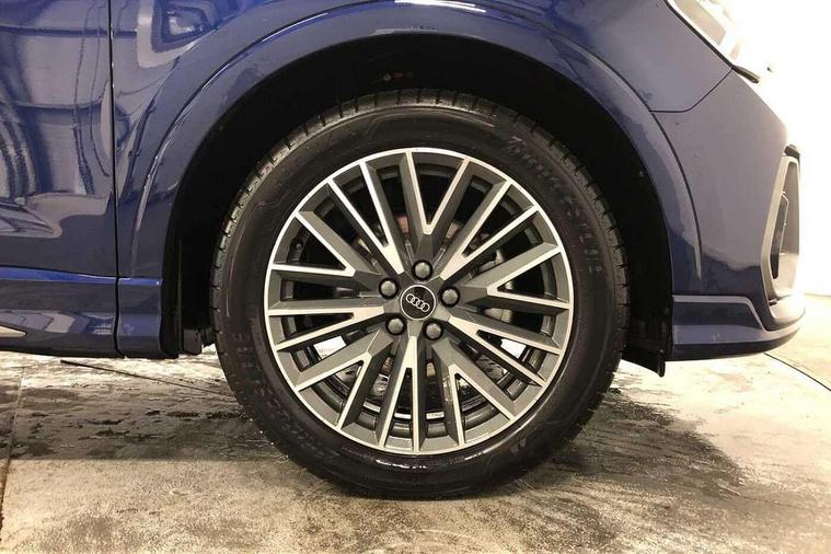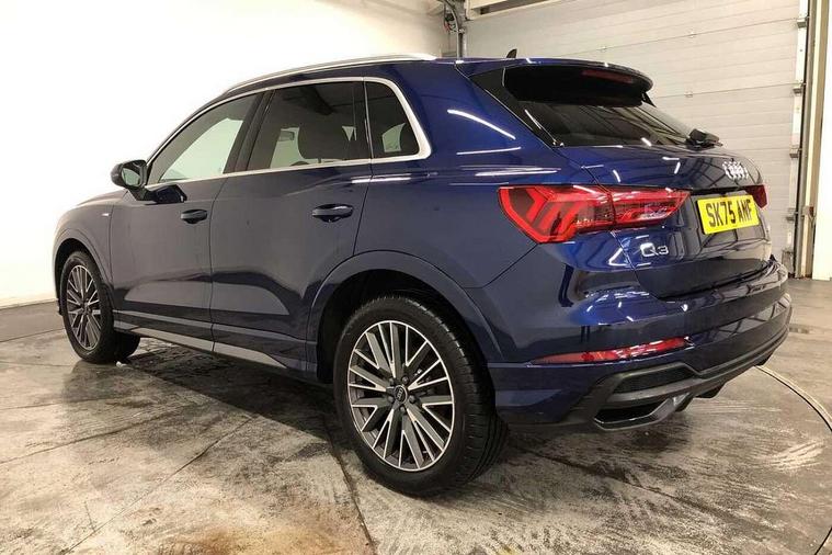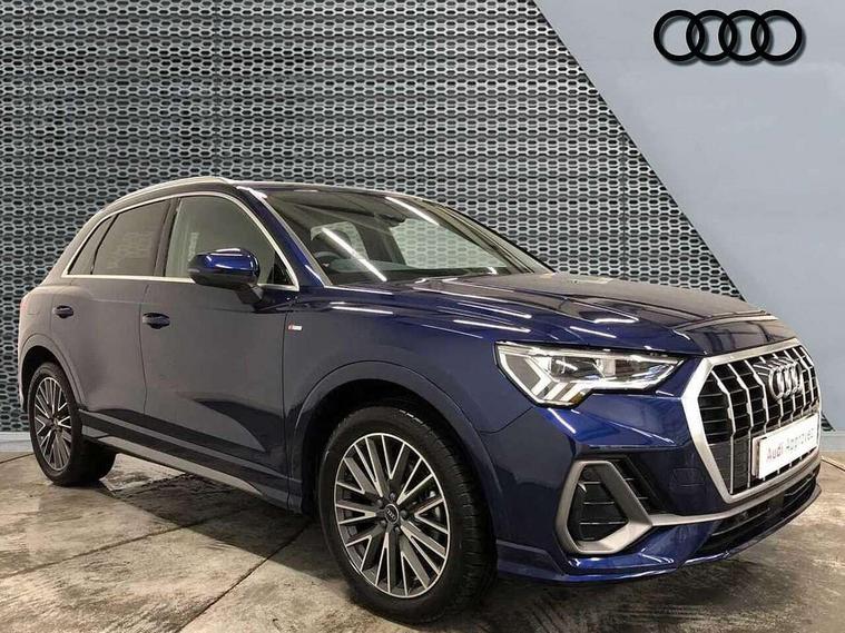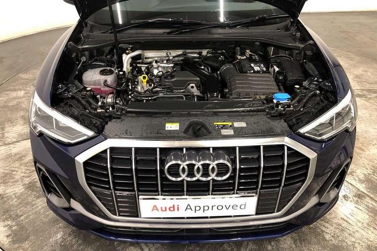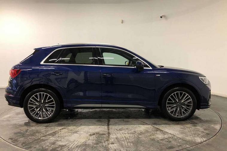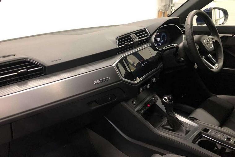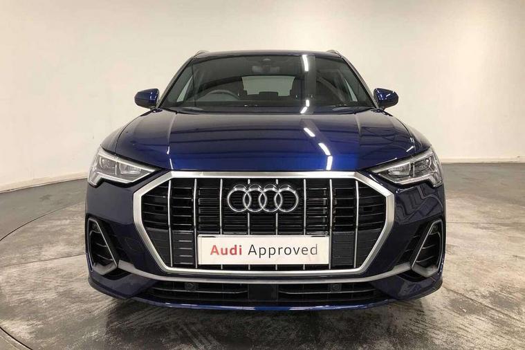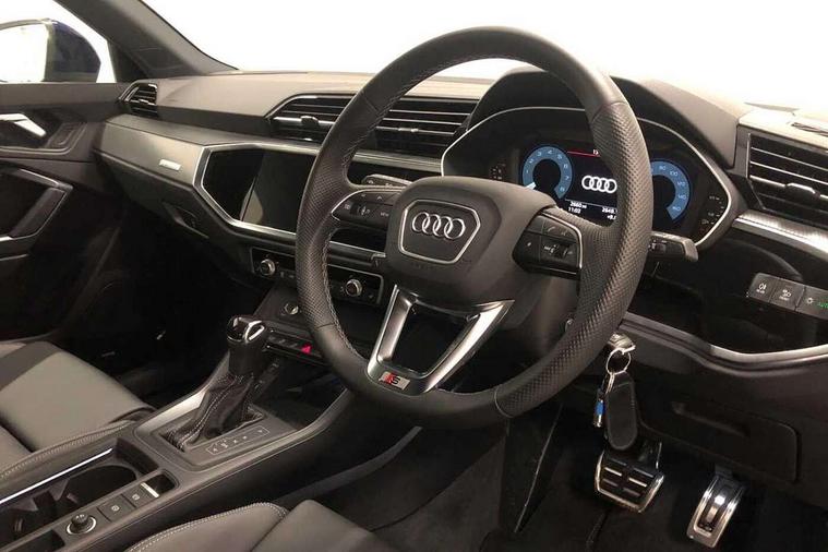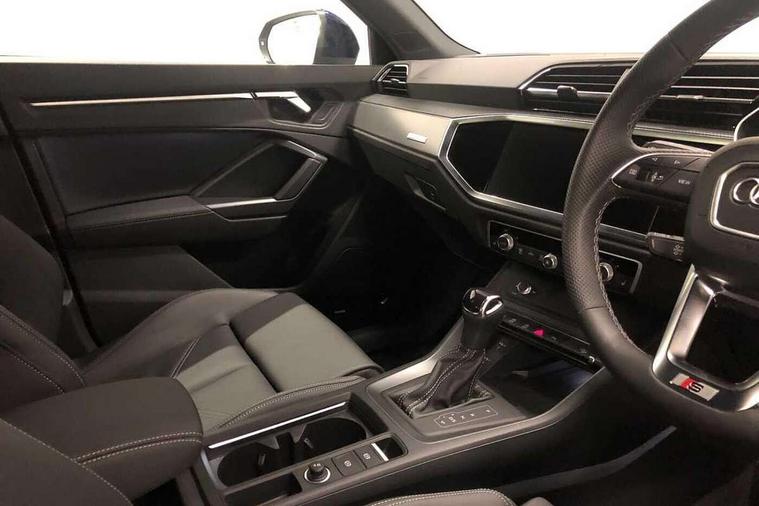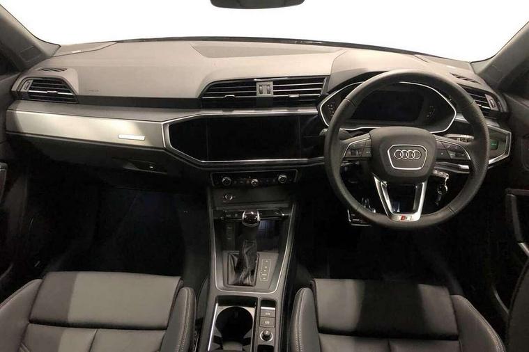 Amazon alexa Integration, Audi connect safety and service, Audi drive select, Audi lane departure warning, Audi Virtual Cockpit - 10.25" display, Bluetooth interface, Camera based traffic sign recognition, Distraction and Fatigue warning, Legal emergency call, MMI Navigation Plus with high resolution 10.1 inch touchscreen colour display, Power operated tailgate, Progressive steering, Service interval indicator, Smartphone interface includes wireless Apple carplay/Android Auto, Start stop system with recuperation, Voice control system with natural language interaction, Sports suspension, 2 USB-C ports with charge and data functions, 6 passive loudspeakers, DAB digital radio module, Acoustic windscreen, Aluminium roof rails, Aluminium window trim, Anthracite black radiator grille, Auto dimming door mirrors, Auto dimming frameless rear view mirror, Body colour front spoiler blade, Electrically folding, adjustable and heated door mirrors with integrated LED side indicators and kerb view function for passenger side, Front and rear electric windows, Front fog lights, Front side air inlets in matt platinum grey, Grille vertical bars in aluminium silver/Matt, High gloss black finish B and C pillars, LED Dynamic rear indicators, LED headlights with LED daytime running lights, LED rear lights, LED third brake light, Privacy glass dark tinted rear and rear-side windows (from B-pillar backwards), Rain and light sensors, Rear diffuser grille in grained matt black, Rear diffuser strip in matt anthracite black, Rear side wing doors, Rear wiper, S line badges on front wings, S Line front and rear bumpers and side skirts, Side skirt insert in matt Platinium grey, Variable front intermittent wipers, 12V socket in rear centre console, 3 seat bench in 2nd row, 3 spoke leather multifunction steering wheel features S badging and grips in perforated leather with contrast stitching, 40:20:40 folding with manual adjustment for 60:40 forwards/backwards position and backrest angle, Adjustable rear seat bench/backrest with centre armrest and cupholder, Black carpet mats, Black cloth headlining, Dual zone electronic climate control, Electric lumbar support, Front and rear black floor mats with contrast stitching in rock grey, Front and rear headrests, Front centre armrest, Height and reach adjustable steering wheel, Horizontal trim strip in matt platinum grey, Illuminated door sill trims with S logo, ISOFIX child seat mounting for front passenger with airbag deactivation and outer rear seat including top tether attachment point for outer rear seats, Luggage compartment sill protection in stainless steel, Manual front seats with height adjustment, Perforated leather gearknob, Single front passenger seat, Stainless steel pedals, Twin leather upholstery with front sport seats + S embossing, Non smoking pack - Q3, 3x3 point rear seatbelts, 6 airbags - Driver, front passenger, curtain and side windows, Audi pre-sense front with pedestrain and cyclist recognition, Electrically operated child locks on rear doors, Electromechanical parking brake, Electronic stabilisation control including ABS, ASR and EDL, Front seatbelt reminder, Hill descent control, Hill hold assist, Pre sense basic, Seatbelt monitoring, Tyre pressure warning, Warning triangle and first aid kit, Anti theft wheel bolts, Immobiliser, Remote central locking, Thatcham approved category 1 anti theft alarm, Aluminium look interior elements, Dark matt brushed aluminium inlay, Detail dashboard around MMI touch colour display in glass look, black with surround in aluminium look, Leatherette door armrest,