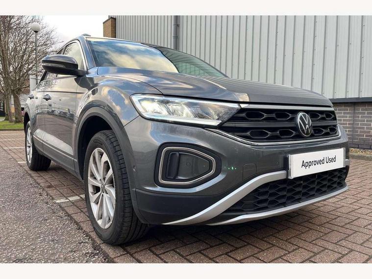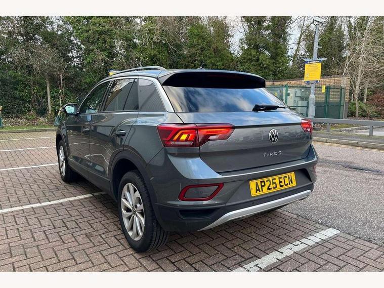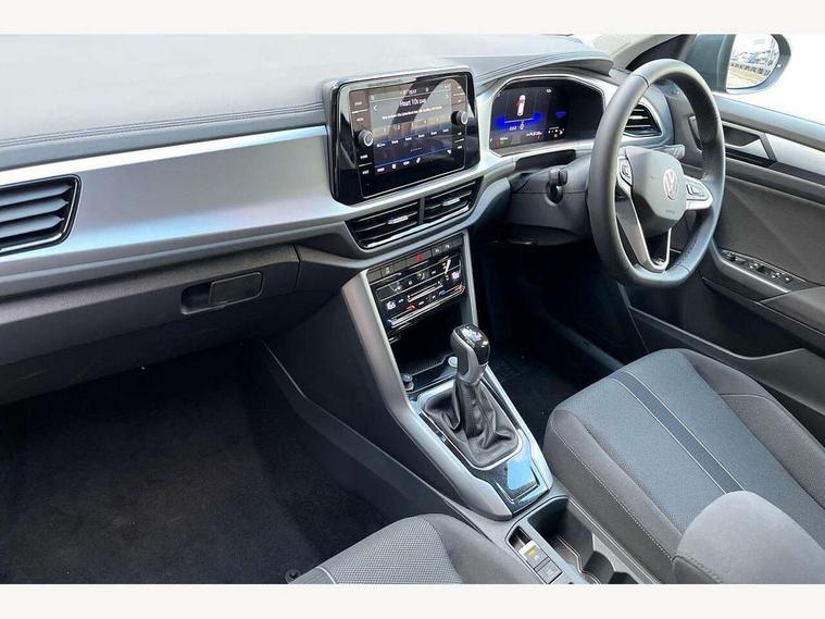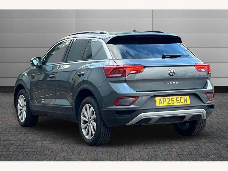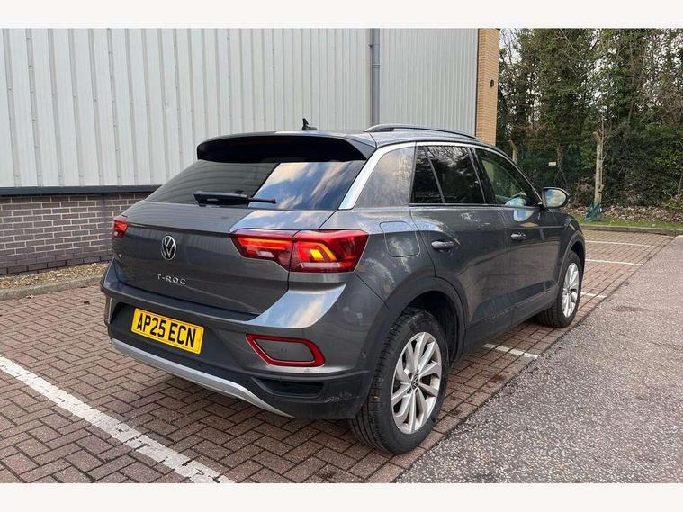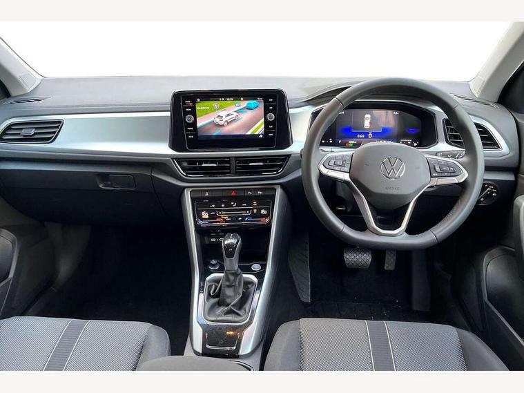 Advanced driver attention and drowsiness monitor, Dynamic road sign display, Emergency call service, Lane keeping system Lane Assist, Mobile phone interface, Modified key software - reduce switch off time for key status change to Long no motion, Online services, Park assist including front and rear parking sensors, Power assisted speed sensitive steering, Rear view camera, Service interval indicator, Tailgate/trunk lid release from outside, Think blue trainer driver tips and journey analysis, Warning sound and light for front seatbelts unfastened, Wireless app connect, Battery regeneration during braking, Front shock absorption, Rear shock absorption chassis with increased ride height, Start/stop function with battery regeneration, DAB Digital radio, Diversity antenna for FM reception, Music playback - MP3, WMA and AAC files, SD card slot, Simultaneous pairing of 2 compatible mobile devices, Title and cover art display, We Connect and We Connect Plus functionality, Auto dimming interior rear view mirror, Automatic hazard lights activation under emergency braking, Automatic headlight control with LED separate daytime running lights with coming/leaving home function, Black roof rails, Body coloured bumpers and radiator grille with chrome trim and front fog lamps with chrome bezel, Body coloured exterior mirror housings and door handles, Electrically adjustable and heated door mirrors, Extended roof spoiler, Exterior mirrors aspherical on driver side, convex on front passenger side, External USB type C socket and charging sockets, Front windscreen wiper with intermittent wipe and 4 position delay, Heated rear window, LED 3rd brake light, LED rear combination lamps, LED rear number plate lights, Power windows with comfort operation and circuit breaker, Privacy glass for rear side windows and rear window, Rain sensor, Rear exhaust tailpipe, Rear fog light on one side and reversing lights on both sides, Rear side wing doors, Rear wash/wipe with intermittent wipe setting, Remote electrically foldable door mirrors, puddle lights and reverse activated passenger's door mirror, 12V power socket in centre console, 3 rear head restraints, 3 seat bench in 2nd row, 4 load lashing points in luggage compartment, Air care climatronic air conditoning system with active combination filter and 2-zone temperature control, Black stitching for floor mats, Ceramique roof liner, Cloth upholstery, Door and side trim panel in cloth, Drawer under drivers seat, Driver/front passenger seat height adjustment, Front centre armrest, Front comfort sports seats, Front cupholders x 2, Front reading light, Front seat back storage pockets, Glove compartment door with light, Instrument lighting, white adjustable panel illumination, Interior ambient lighting and surround lighting, Interior light delay, Isofix child seat preparation, Leather gearshift handle, Load-through provision with cup holder when folded down ('Unsplit rear seat bench, split folding backrest, with centre armrest), Luggage compartment lighting, Lumbar support for driver's and front passengers seat, Non-folding front passenger seat backrest, Single front passenger seat, Storage compartment in left and right luggage area, Storage compartment in rear doors, Storage compartments in driver and front passenger doors, Sunvisors with illuminated vanity mirrors, Variable boot floor, height adjustable and removable, Driver assistance pack without proactive passenger protection - T-Roc Life/Match, 3 point height adj front seatbelts + pretensioners, 3 point seatbelts in outer rear with ECE label, ABS, Child locks on rear doors, City emergency braking and pedestrian monitoring, Driver and front passenger airbag with front passenger airbag deactivation, Driver and front passenger safety-optimised head restraints, Drivers seatbelt reminder, Electronic parking brake, Electronic Stability Control (ESC) inc EDL (Electronic Differential Lock) and ASR (Traction Control), Front and rear passengers curtain airbag system including front side airbags, Front disc brakes, Hill start assist, Predictive pedestrian protection, Rear disc brakes, Two tone horn, Tyre pressure loss indicator, Volkswagen roadside assistance, Alarm with interior protection, Keyless locking and starting system keyless access with safelock, Pewter matt decorative inserts for intrument panel, centre console and door panels at the front, Trims for alloy wheels,