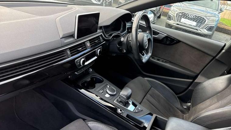 7" Colour driver information system, Audi connect, Audi drive select, Audi parking system plus with front and rear sensors, Audi smartphone interface, Automatic start-stop system with coasting functionality and efficiency programme, Bluetooth interface, Electro-mechanical power steering, MMI Navigation, Power tailgate, Service interval indicator, Voice control system, CD player, DAB Digital radio, Two SDXC card slots, Air inlets in titanium black with matt aluminium inlay, Auto dimming rear view mirror, Body colour bumpers, Chrome plated exhaust pipe, Electric adjustable heated door mirrors, Electric front windows, Front fog lights, High beam assistant, High gloss black door mirrors, Rain and light sensors, Rear diffuser in Twilight grey matt with honeycomb grille, S Line body styling, S line sill plates, S style high gloss black rear spoiler, Side and rear windows privacy glass, Titanium black frame and radiator grille, Titanium black front and rear air intakes, Titanium black window surround, Windscreen with acoustic glazing, 2 x USB charging port with aux input socket, 3 spoke flat bottom high multi-function leather steering wheel, 40/20/40 split folding 3 seater rear bench seat, Adjustable steering column, Black headlining, Black perforated leather gearknob, Centre console with cupholders, Contrast stitching on seats, steering wheel and gear lever gaiter, Deluxe 3 zone electronic climate control, Front centre armrest, Front head restraints, Front/rear floor mats, Gearshift paddles, Illuminated door sills, ISOFIX child seat mounting and top tether, Jack and tool kit, Luggage compartment mat, Rear headrests, S embossed logo on front sport seats, Stainless steel pedals and foot rest, Non Smokers pack, 3x3 point rear seatbelts, 6 airbags - Driver, front passenger, curtain and side airbags, Electromechanical parking brake, Electronic Stabilisation Control (ESC) including ABS, ASR and EDL, Front passenger airbag deactivation, Height adjustable front seatbelts, Hill hold function, Multi-Collision braking, Pop-up bonnet for pedestrian protection, Pre sense city, Seatbelt monitoring, Tyre pressure warning, Variable restraint system, Warning triangle and first aid kit, Anti theft alarm system, Anti theft wheel bolts, Immobiliser, Keyless Go, Remote central locking, Piano black finish inlay, 20" 5 arm rotor alloy design wheels with matt titanium finish, Tyre repair kit,