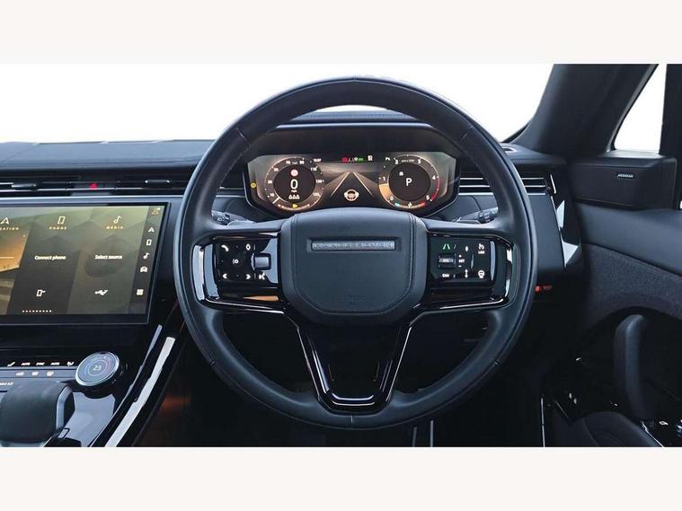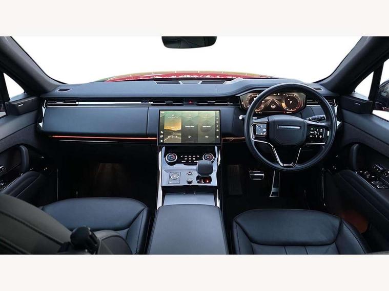 13.1" Touchscreen, 3D 360 degree surround camera with wade sensing, Adaptive cruise control with steering assist, Android Auto, Apple car play, Blind spot assist, Bluetooth connectivity streaming, Driver condition response, Eco mode, Electric power assisted steering (EPAS), Interactive Driver display instrument cluster, Lane departure warning system, Lane keep assist, Push button start, Rear collision monitor, Rear traffic monitor, Remote, Traffic sign recognition with adaptive speed limiter, Trip computer, Wireless device charging, 8 speed automatic transmission, Adaptive dynamics, All wheel drive system, Automatic access height, Dynamic air suspension, Terrain Response 2, DAB Radio (Digital Audio Broadcasting), Incontrol protect - SOS emergency call with automatic collision detection, optimised assistance call and Incontrol remote app essential, Pivi pro connected, USB/aux input socket, Adaptive brake lights, Automatic headlight levelling, Automatic headlights, Centre high mounted stop light, Electric heated/power fold memory door mirrors with approach lights and auto dimming driver side, Electric windows with one touch open/close and anti trap, Flush deployable exterior door handles, Follow me home lighting, Front and rear recovery eyes, Headlight power wash, Heated rear window, Heated washer jets, Heated windscreen, LED tail lights, Metal load space scuff plates, No badges, Rain sensing windscreen wipers, Rear animated directional indicators, Rear fog lights, Rear side wing doors, Rear wash/wipe, Remote window closing, Side repeater indicators in mirror, Trailer stability assist, Winter wiper park position, 3 seat bench in 2nd row, 60:40 seats with power recline and loadthrough, Air quality sensor, Auto air recirculation, Bright metal foot pedals, Centre console with armrest, Customer configurable single point entry, Driver's footrest, Easy boot loading, Ebony console door armrests and seatbelts, Electric adjustable steering column, Extended leather upgrade, Front and rear cupholders, Front door storage space, Front head restraints, Front map lights, Front seat back map pockets, Front stowage pocket, Front/rear passenger grab handles, Gearshift paddles, Heated steering wheel, Isofix child seat preparation, Loadspace cover, Loadspace Hook, Loadspace light, Loadspace mounting provisions, Lockable glovebox, Luggage tie-downs in loadspace, Multifunction steering wheel, Pollen filter, Power socket, Rear centre armrest, Rear head restraints, Rear ISOFIX, Single front passenger seat, Three 12V accessory power outlets, Upper secondary glovebox, Online pack with data plan - Range Rover Sport, 3 point seatbelts on all seats, Anti-lock braking system (ABS), Brake pre-fill technology, Configurable autolock, Cornering brake control (CBC), DSC - Dynamic Stability Control, EBD - Electronic brakeforce distribution, Electric parking brake, Electronic traction control, Emergency braking, Front seatbelt pretensioners, Front side airbags, Height adjustable front seatbelts, Hill descent control, Hill launch assist, Low traction launch, Occupant protection assist, Passenger seat occupant detector with front airbags, Power operated child locks, Roll stability control, Seatbelt warning, TPMS (Tyre pressure monitoring system), Immobiliser, Intrusion sensor, Keyless entry, Locking wheel nuts, Perimetric and volumetric anti theft alarm, Remote locking, Moonlight noble chrome interior finishers,