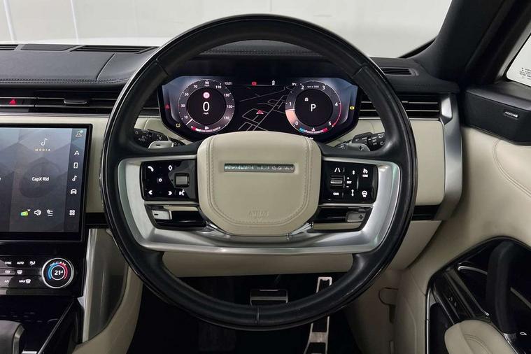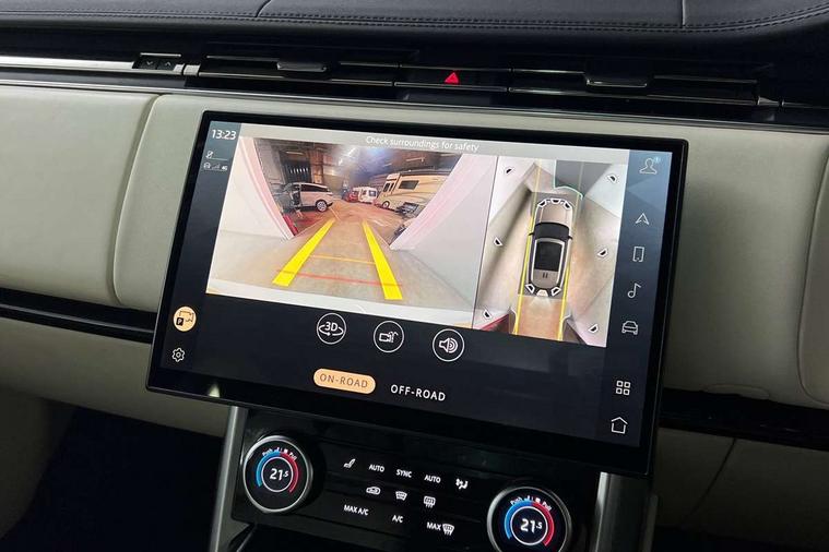 13.1" Touchscreen, 3D surround camera inc frwd traffic detection, vehicle clearance guidance, 3D view, clearsight ground view, manoevure light, 360 parking aid, wade sensing, Adaptive cruise control with steering assist, All Terrain Info Centre, All wheel steering, Android Auto, Apple car play, Blind spot assist, Bluetooth connectivity streaming, Driver condition response, Eco mode, Electric power assisted steering (EPAS), Emergency call service, Front and rear parking aid, Interactive driver display, Lane keep assist, Powered gesture tailgate/boot lid, Rear collision monitor, Rear traffic monitor, Remote, Traffic sign recognition with adaptive speed limiter, Wi-Fi Enabled with data plan, Wireless device charging with phone signal booster, 8 speed automatic transmission, Active damper technology system, Adaptive dynamics, All terrain progress control, All Wheel Drive (AWD), Automatic access height, Electronic active differential with torque vectoring by braking, Electronic air suspension with dynamic response, Terrain Response 2 Auto, Twin speed transfer box, Digital Audio Broadcast radio-DAB, Pivi pro including smart settings, Connected navigation pro, nuance speech, USB socket, Acoustic laminated windscreen, Animated directional indicators, Automatic headlights, Automatic levelling headlights, Centre high mounted stop light, Electric windows with one touch open/close and anti trap, Flush deployable exterior door handles, Front and rear recovery eyes, Front fog lights, Headlamp power wash, Heated rear window, Heated washer jets, LED tail lights, Power fold, auto-dimming, heated door mirrors with approach lights, Rain sensing windscreen wipers, Range rover badge, Rear boot, Rear fog lights, Rear side wing doors, Rear wash/wipe, Side repeater indicators in mirror, Trailer stability assist, Winter wiper park position, 12V power sockets, 3 seat bench in 2nd row, Air quality sensor, Bright metal pedals, Cabin lighting, Customer configurable single point entry, Driver and passenger front seat armrests, Easy boot loading, Ebony Carpet, Front and rear cupholders, Front and rear grab handles, Front head restraints, Gearshift paddles, Heated steering wheel, Hook in load space, Loadspace light, Luggage tie down in loadspace, Multifunction steering wheel, Rear centre armrest, Rear head restraints, Rear ISOFIX, Single front passenger seat, Soft close doors, Twin blade sunvisors with Illuminated vanity mirrors, Upper and lower glovebox, Online pack with data plan - Range Rover, 3x3 point rear seat belts, Anti-lock braking system (ABS), Brake hold function, Cornering brake control (CBC), Customer configurable autolock, DSC - Dynamic Stability Control, Electronic brake force distribution, Electronic parking brake, Electronic traction control, Emergency brake assist, Emergency braking, Front airbags with passenger seat occupant detector, Front side airbags, Hill descent control, Hill launch assist, Low traction launch, Occupant protection assist, Power operated child locks, Roll stability control, Tyre pressure monitoring system (TPMS), Immobiliser, Intrusion sensor and alarm, Keyless entry, Locking wheel nuts, Remote central locking, Noble chrome controls,