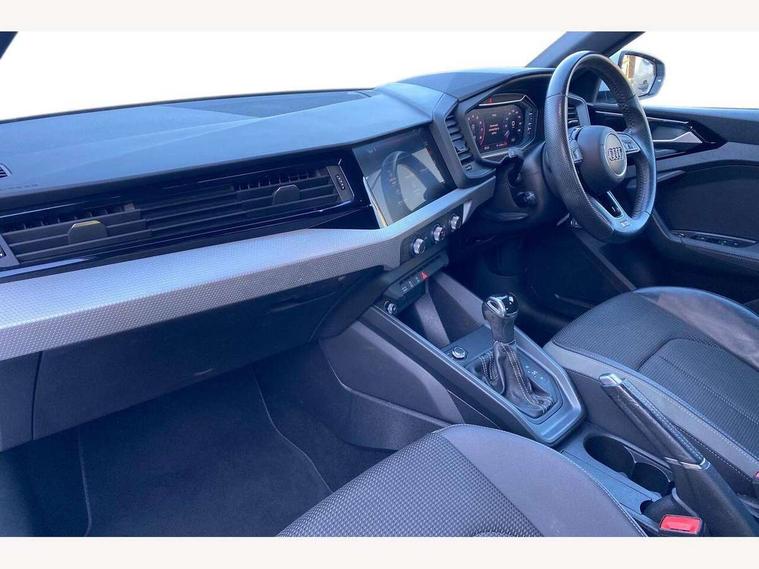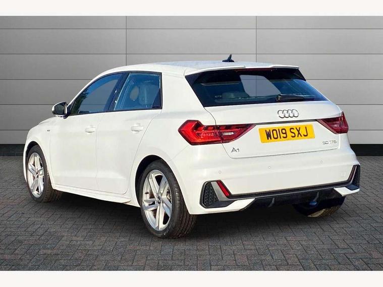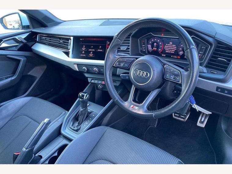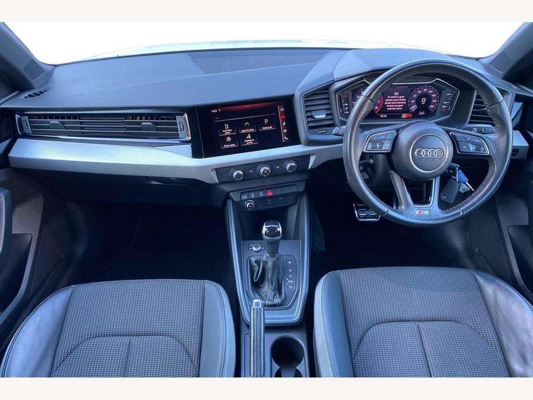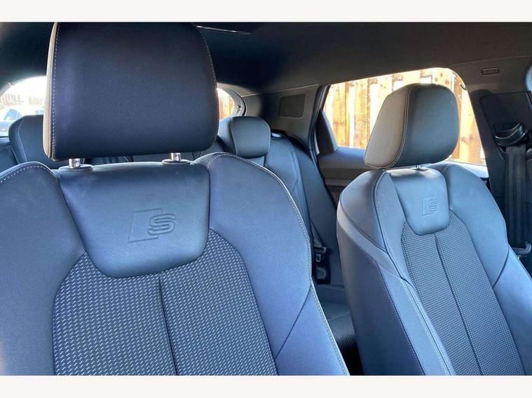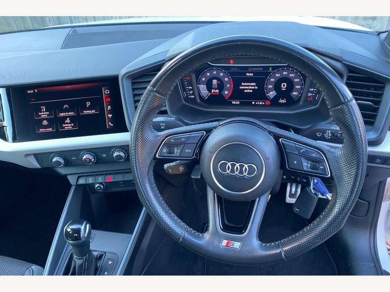 10.25" Digital instrument cluster display screen, Audi connect safety emergency and service including E-call, Audi drive select, Audi smartphone interface, Automatic start/stop system, Bluetooth interface, Driver's information system, Electromechanical power steering, Lane departure warning system, Service interval indicator, Speed limiter, Voice control system, Washer fluid level indicator, Sports suspension, 1 x SDXC card reader, 1 x USB type C and 1 USB type A charging points, Audi music interface, Bluetooth audio streaming, DAB Digital radio, MMI radio plus with 8.8" colour MMI display screen and MMI touch, Auto dimming rear view mirror, Body colour side sill mouldings, Body coloured bumpers, Body coloured door mirrors, Door sills with aluminium inlays and S Line logo, Electric front and rear windows, Front side air inlets in grained matt black and C frame in titanium black, Heat insulating glass windscreen and side windows, Heated rear windscreen, LED headlights with LED rear lights + dynamic rear indicators, Matt aluminium silver tailpipe trim, Matt black radiator grille frame, Matt platinum grey in front spoiler clip and rear diffuser clip, Rain and light sensors, Rear fog lights, Rear wiper, S line badges on front wings, S line exterior bumpers, S line roof spoiler, Side air inlet frames titanium black, Side front spoiler lips in grained matt black, 12V socket in centre console with two cup holders, 3 rear seats, Black cloth headlining, Driver and passenger seat with manual height adjust with forward and backwards adjustment, Front and rear black floor mats with contrast stitching in fine silver, Front head restraints, Height and reach adjustable steering wheel, ISOFIX child seat mounting in front passenger and rear outer seats, Leather gear knob with aluminium trim, Leatherette handbrake grip, Luggage compartment light with front and rear reading lights, Lumbar adjustment for front seats, Rear head restraints, Split folding rear seats, Stainless steel pedals, 3x3 point rear seatbelts, Audi pre-sense front with pedestrain and cyclist recognition, Brake assist function, Driver and front passenger airbag with front side and head airbags, Electronic Stability Control including ABS, EBD, ASR and EDL, Front and rear seatbelt reminder, Front passenger airbag deactivation switch, Hill hold assist, Seatbelt height adjustment for front seats, Seatbelt monitoring, Tyre pressure warning light, Warning triangle and first aid kit, Anti theft alarm, Anti theft wheel bolts and loose wheel warning, Immobiliser, Remote central locking with 2 remote folding keys, Aluminium trim for control switches, air vents and digital instrument cluster, Silver grey inlays polygon structure in diamond paint finish, Structured grey accent areas including air vents, door handle recesses and centre console in quartz paint finish,