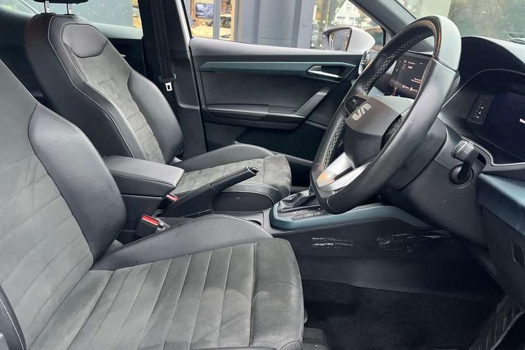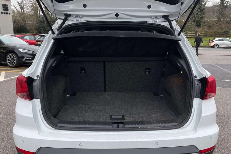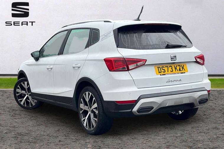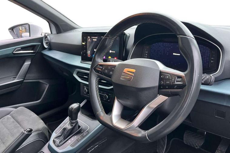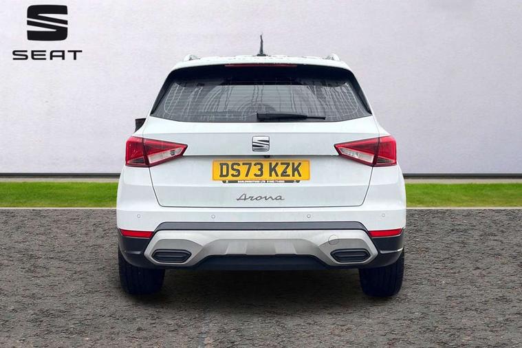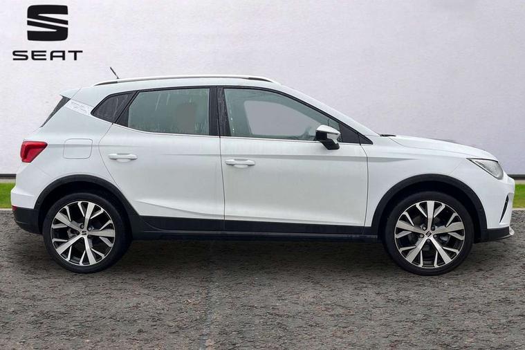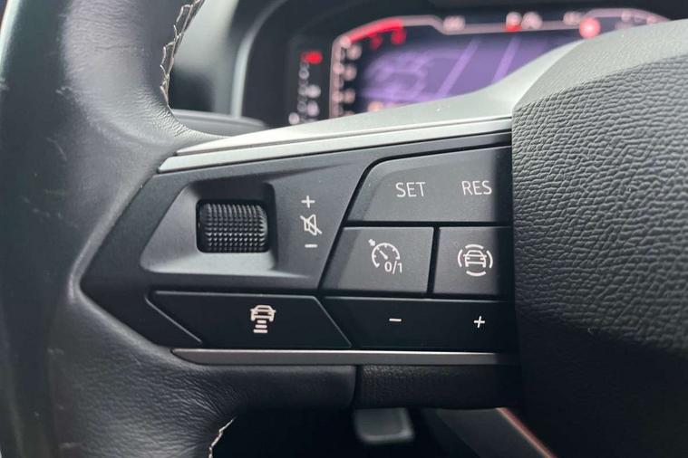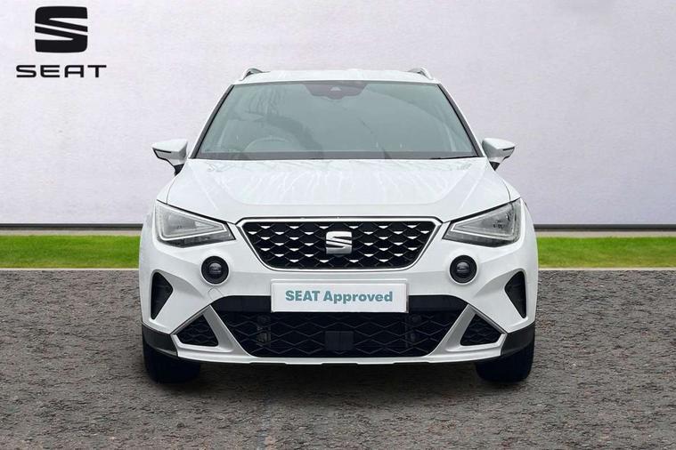 'Lights On' Reminder warning buzzer, 10" Digital cockpit, Digital clock, E-call, Electric speed sensitive power steering, Front parking sensor, Full Link Smartphone Integration with Mirror Link, Apple Car Play, Google Android Auto with USB Type C cable for Apple and Android compatibility, Lane keeping system, Low fuel warning light, Outside temperature display, Park assist system, Rear parking sensor, Rear view camera, RPM counter, Seat connect with safety, service, remote and online, Trip computer, Wireless phone charger, 9.2" colour touchscreen with navigation system, voice control and USB port (type c), Bluetooth interface for hands free and audio streaming, DAB digital radio and AM/FM radio, Steering wheel mounted audio controls, Anti theft roof antenna, Auto dimming interior rear view mirror, Automatic activation of hazard warning lights, Body coloured bumpers, Body coloured door handle inserts, Chrome roof rails and window surrounds, Electric front/rear windows, Electrically adjustable, heated and folding door mirrors, Front fog lights with cornering function and rear fog light, FULL LED automatic headlights with dynamic headlight range control, coming and leaving home, LED daytime running lights, Hidden exhaust pipe, LED rear tail lights and licence plate lights, Protective side mouldings, Rain sensing wipers, Rear side wing doors, Rear spoiler, Rear window wash/wipe, Roof colour door mirrors, Third brake light, Visible VIN plate, Windshield wiper with intermittent control and potentiometer, 2 cupholders, 3 seat bench in 2nd row, 60/40 split folding rear seat, Aircare filter, Black interior roof, Double boot floor, Driver sunvisor with covered mirror + card holder, Dual zone climate control, Flat bottomed leather steering wheel/gear knob/handbrake, Front comfort seats, Front courtesy light with front reading lights, Front seat back storage pockets, Gear shift indicator, Heated front seats, Height adjustable front seats, Height/reach adjustable steering column, Illuminated boot, Instrument lighting with brightness control, Interior ambient lighting, Interior light in footwell, central console and door panel, ISOFIX points in outer rear seats with top tether anchorage points, Leather steering wheel/gear knob/handbrake, Microsuede cloth upholstery, Passenger sunvisor with vanity mirror, Single front passenger seat, Storage net on centre console, Two front and three rear height adjustable headrests, Interior chrome pack - Arona, Safety and driving pack (M) - Arona, Storage pack - Arona, 3 point seatbelts on all rear seats, ABS, Active front headrests, Child locks on rear doors, Driver and front passenger airbags with front passenger airbag de activation, front side and curtain airbags, Electronic stability control, Emergency Brake Assist (EBA) and front assist, Front and rear seatbelt reminder, Hill hold control, Multi-Collision braking, Tiredness recognition system, Traction control, Tyre pressure monitoring system, Alarm with back-up horn, Electronic engine immobiliser, KESSY Keyless entry and go, Locking wheel bolts, Remote central locking + deadlocks, Tow away protection, Titan black dashboard, 18" Performance Nuclear grey alloy wheels,