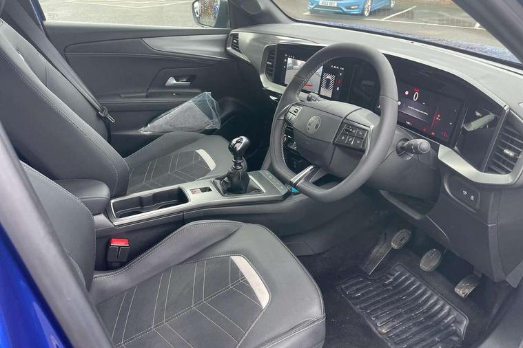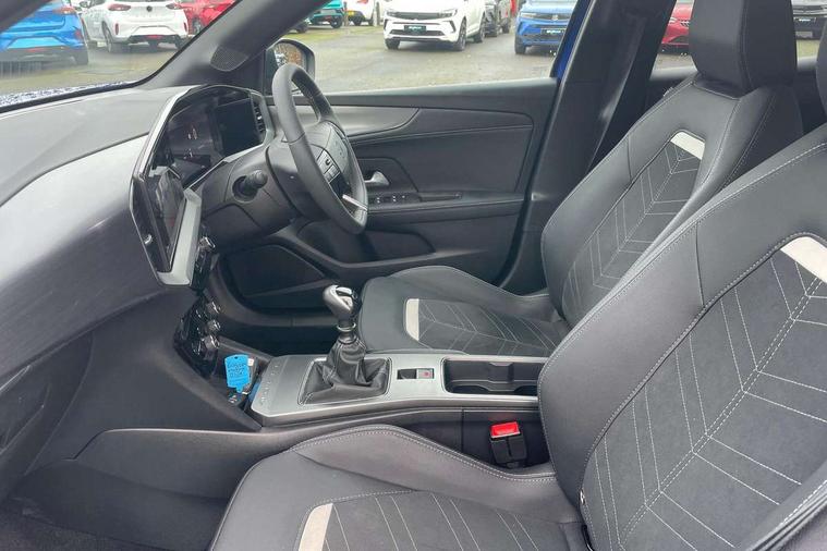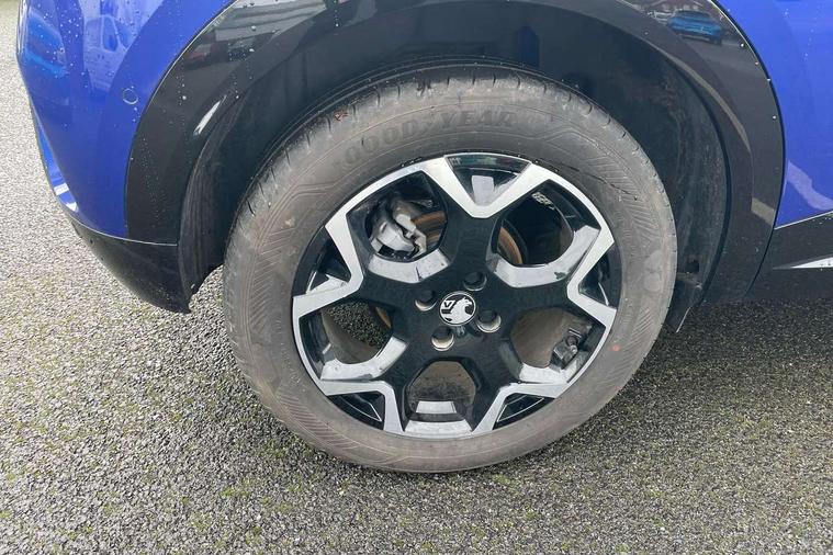 10" digital instrument cluster, Active drive assist, Adaptive cruise control, Digital instrumentation with digital speedometer, rev counter, fuel and water temperature gauge, Driver attention alert, Driver drowsiness alert system, Driver information display with multi function trip computer, audio info, digital clock and outside air temperature with ice warning function, Front and rear parking distance sensors, Lane keep assist system (LAS) with Lane departure warning system (LDWS), Lights on audible warning, Panoramic rear view camera, Power assisted speed sensitive steering, RDS with traffic programme, Side blind spot alert and flank guard, Speech recognition, Start/stop system, Vauxhall connect with e-Call, WiFi connectivity, Wireless phone projection with Apple CarPlay and Android Auto, Sports chassis, 2 rear USB connection, 6 speakers, AM/FM stereo radio with 36 station presets, DAB Digital radio, Front USB connection, Mobile phone portal - bluetooth connect, vehicle microphone, handsfree calls, SMS read out and reply, phone book access, Multimedia pure panel navigation system with 10" colour touchscreen and 15W wireless charger, Steering wheel mounted controls, Adaptive brake lights, Automatic headlamp levelling, Automatic lighting control with tunnel detection, Black DLO, Black door mirror housings, Black Griffin logo and vizor frame, Black lettering and emblems, Black upper window moulding, Body colour door handles, Body colour front and rear bumpers, Body colour skid plates, Dark tinted rear side windows, Electrically adjustable and heated door mirrors, Electrically foldable door mirrors, Electrically operated front and rear windows with safety auto reverse and one touch up/down facility, Electrochromatic frameless auto dimming rear view mirror, Hazard warning lights, Heated rear window+rear wash/wipe, High gloss black front and rear bumper inserts, High gloss black painted claddings, lower grille and front lateral inserts, High gloss black painted lateral moulding, Integrated black tailgate spoiler, IntelliLux matrix headlights with advanced forward lightning and anti glare beam, LED 3rd brake light, LED daytime running lights, LED side repeat indicators, Rain sensitive windscreen wipers, Rear side wing doors, Reversing light, Shark fin antenna, Solar heat absorbing windscreen and windows, Windscreen and side window demist vents, 12V Accessory socket, 3 seat bench in 2nd row, 4 speed fan with illuminated controls, 4 way electrical driver lumbar adjustment, 6 way adjustable front passenger seat including height adjustment, 60/40 split folding rear seat, Air recirculation system, Ambient lighting, Black headliner, Cabin particulate filter - removes dust, airborne particles and pollen, Chrome effect interior door handles, Door pockets with two litre capacity, Driver and passenger heated seats, Driver and passenger sun visors with vanity mirror, Driver seat massage function, Electronic climate control (ECC), Four adjustable facia vents, Four load restraint lashing eyes, Front centre armrest with storage, Front driver and co-driver side articulated grab handles, Front head restraints, Front map reading lights, Front seat back storage pockets, Fully carpeted load area, Heated steering wheel, Interior courtesy light, Interior tailgate handle, Luggage compartment cover, Luggage compartment lighting, Moveable boot floor, Reach + rake adjustable steering column, Rear Reading Lamps, ReNewKnit fabric/leather upholstery, Single front passenger seat, Three height adjustable rear seat head restraints, Twin gas assisted tailgate struts, 2x Isofix child seat fitting on outer rear seats, 3x3 point rear seat belts, Anti-lock braking system (ABS), Child proof locks on rear doors, Cornering brake control, Deactivation switch for front passenger front and side impact airbags, Drag torque control, Driver and front passenger airbags, front seat side impact airbags, full size curtain airbags, Electronic brake force distribution, Electronic Stability Programme (ESP), Emergency brake assist, Enhanced automatic emergency braking with pedestrian and bicycle detection, Forward brake assist, Forward collision alert at all speed, Hill start assist, Inertia reel lap and diagonal seatbelts for all seats, Manual parking brake, Seatbelt unfastened audible warning and warning light, Straight line stability control, Traction control, Tyre pressure monitoring system, Electronically protected audio equipment, Engine deadlock immobiliser, Freewheeling door locks, Key left in ignition audible warning, Keyless entry and start, Locking wheel nuts, Remote control central locking, Remote control ultrasonic security alarm system, Visible vehicle identification number, Black facia with silver trim insert, Light grey trim inserts on front doors, Vegan door inserts, 18" Black diamond cut alloy wheels,