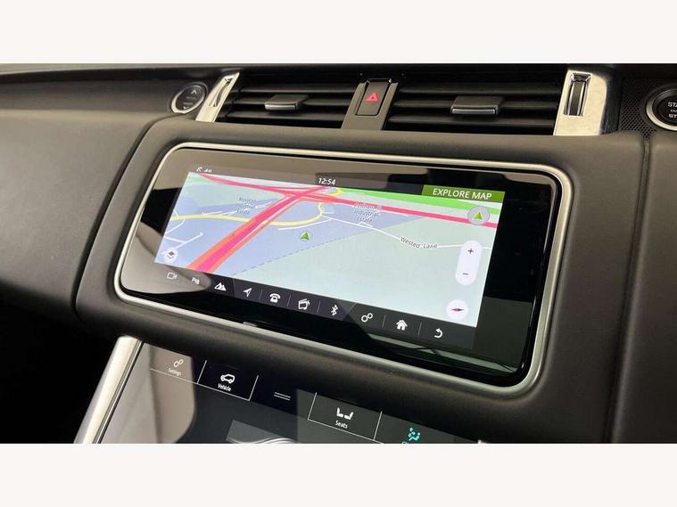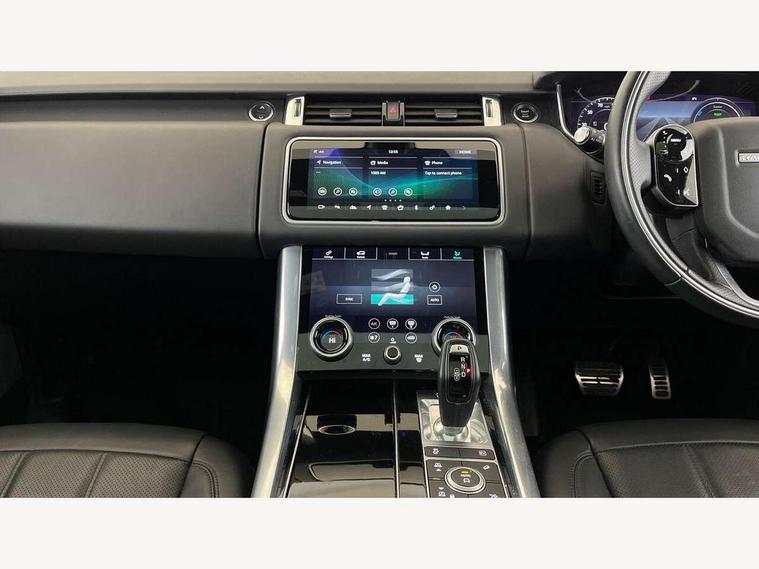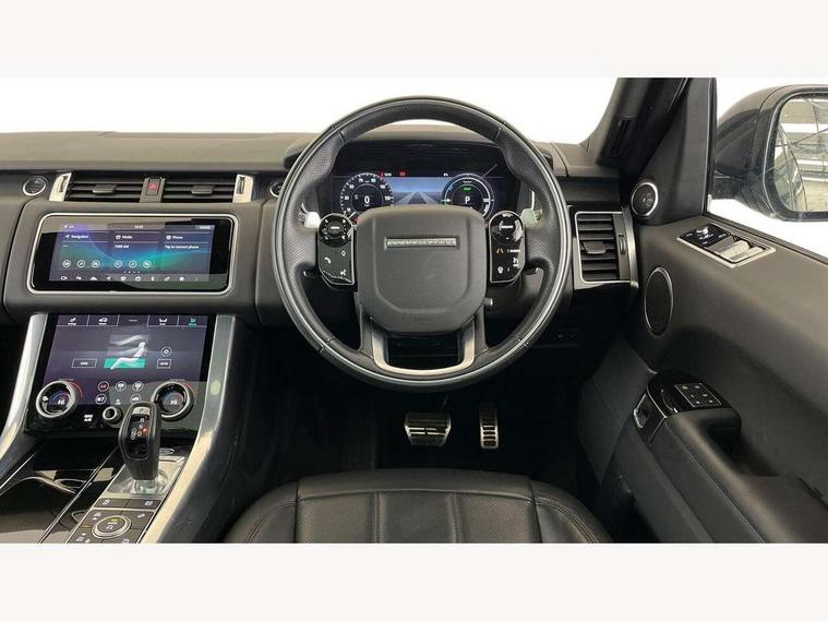 All Terrain Info Centre, Android Auto, Apple car play, Bluetooth connectivity, Electric power assisted steering (EPAS), Incontrol apps in vehicle touchscreen, Interactive Driver display instrument cluster, Mist sensor, Navigation pro system with 10" touch screen, app interface and media storage, Pro services and wifi hotspot, Push button start, Remote premium - Upgraded Incontrol remote app including remote climate control (engine dependent), remote lock + Unlock and remote beep + flash, TFT Virtual Instrument Panel, Touch pro duo system, Trip computer, 7 kW onboard charger, Adaptive dynamics, Electronic active differential with brake torque vectoring, Electronic air suspension, Gradient release control (GRC), Public charging cable, Terrain Response 2 with dynamic program, Twin speed transfer box, Bluetooth audio streaming, DAB Radio (Digital Audio Broadcasting), Incontrol protect - SOS emergency call with automatic collision detection, optimised assistance call and Incontrol remote app essential, USB/aux input socket, Acoustic front and toughened rear side glass, Acoustic laminated front windows, Adaptive brake lights, Auto dimming interior rear view mirror, Automatic headlights, Body coloured side sills and bumpers corners, Centre high mounted stop light, Electric windows with one touch open/close and anti trap, Electrical towing preparation, Engine cover, Follow me home lighting, Front and rear recovery eyes, Front fog lights, Headlight power wash, Heated rear window, Heated windscreen includes heated washer jets, Illuminated metal treadplates with brand name script, LED rear lamps, Privacy glass (Tinted glass rear of B pillar), Rain sensing windscreen wipers, Rear fog lights, Rear side wing doors, Rear wash/wipe, Remote window closing, Side repeater indicators in mirror, Sport Badge in black, Standard bonnet, Trailer stability assist, Twin bright tailpipes, 2 way active front head restraints, 2 way rear head restraints, 3 seat bench in 2nd row, Auto air recirculation, Bright metal foot pedals, Centre console with armrest, Climate control memory, Customer configurable single point entry, Driver's footrest, Extended leather upgrade includes door top rolls and leather instrument panel mid section, Front and rear cupholders, Front door storage space, Front map lights, Front seat back map pockets, Front stowage pocket, Front/rear passenger grab handles, Heated steering wheel, Isofix child seat preparation, Leather steering wheel with Atlas inserts, Loadspace light, Loadspace mounting provisions, Lockable glovebox, Multifunction steering wheel, Perforated Windsor leather upholstery, Pollen filter, Power socket, Reach/rake electric adjustable steering column + entry/exit tilt away, Rear centre armrest, Rear ISOFIX, Roller blind loadspace cover, Satin chrome gearshift paddles, Single front passenger seat, Sports pedals, Three 12V accessory power outlets, Black Exterior pack - Range Rover Sport Dynamic, Smartphone pack - Range Rover Sport, 3 point seatbelts on all seats, Anti-lock braking system (ABS), Brake pre-fill technology, Cornering brake control (CBC), Curtain airbags, Customer configurable autolock, DSC - Dynamic Stability Control, Dual stage driver/passenger airbags, EBD - Electronic brakeforce distribution, Electric parking brake, Electronic traction control, Emergency braking includes city, urban AEB and pedestrian, Front seatbelt pretensioners, Gradient acceleration control, Height adjustable front seatbelts, Hill descent control, Hill launch assist, Low traction launch, Passenger seat occupant detector with front airbags, Power operated child locks, Roll stability control, Seatbelt warning, TPMS (Tyre pressure monitoring system), Immobiliser, Intrusion sensor, Keyless entry, Locking wheel nuts, Perimetric and volumetric anti theft alarm, Remote locking, Grand black veneer, 21" 9 spoke gloss black alloy wheels - style 9001, Tyre repair system,